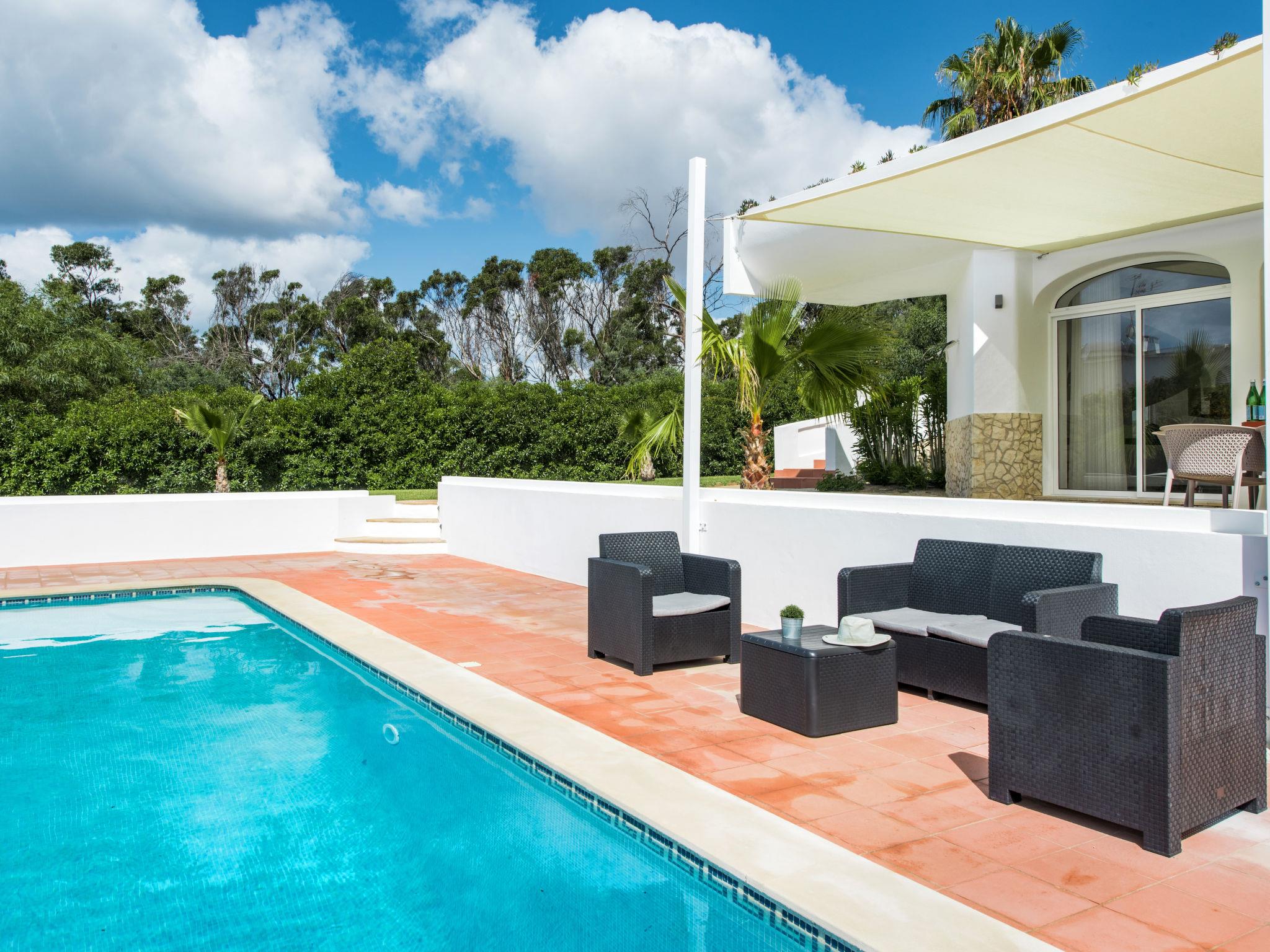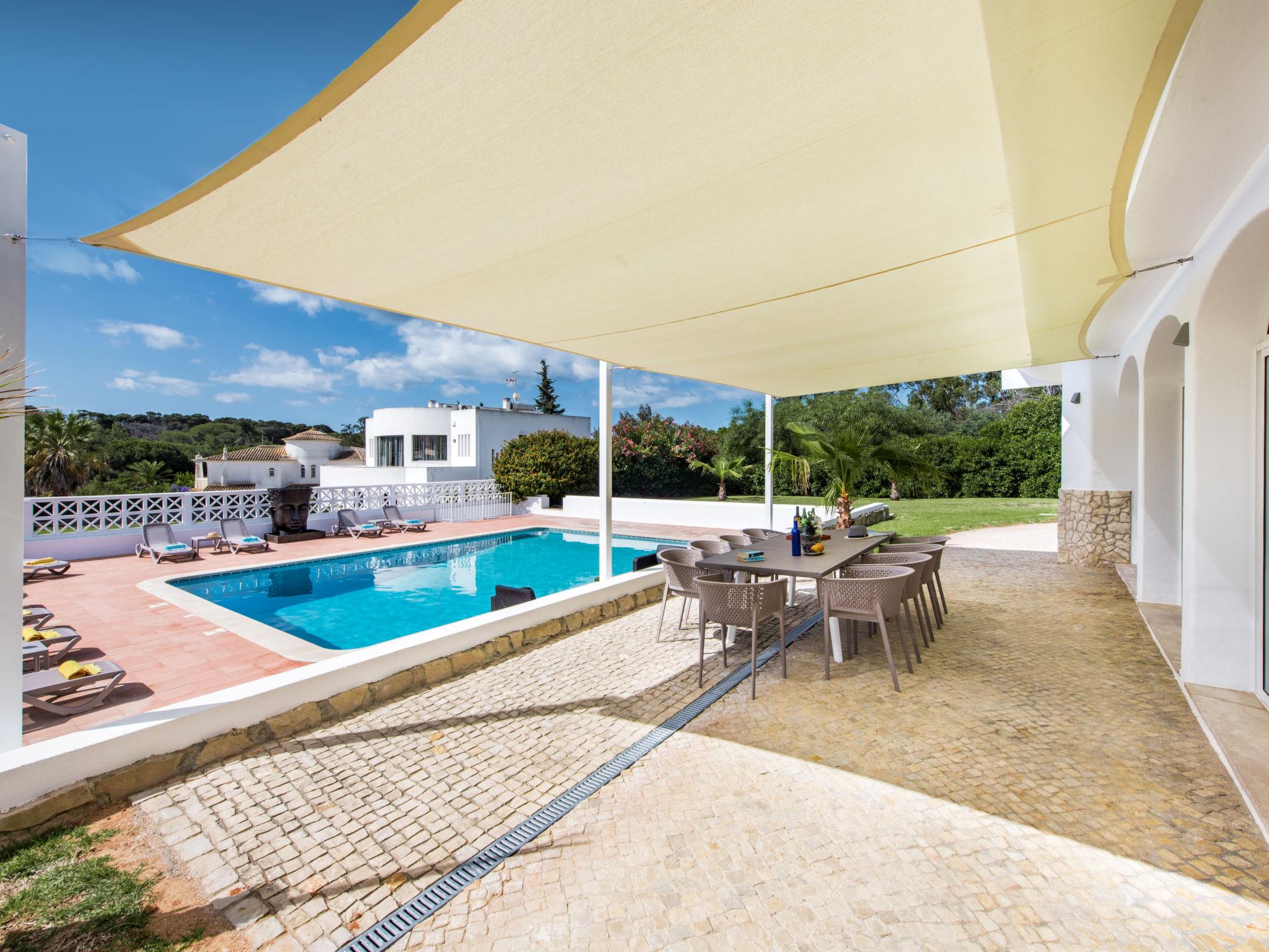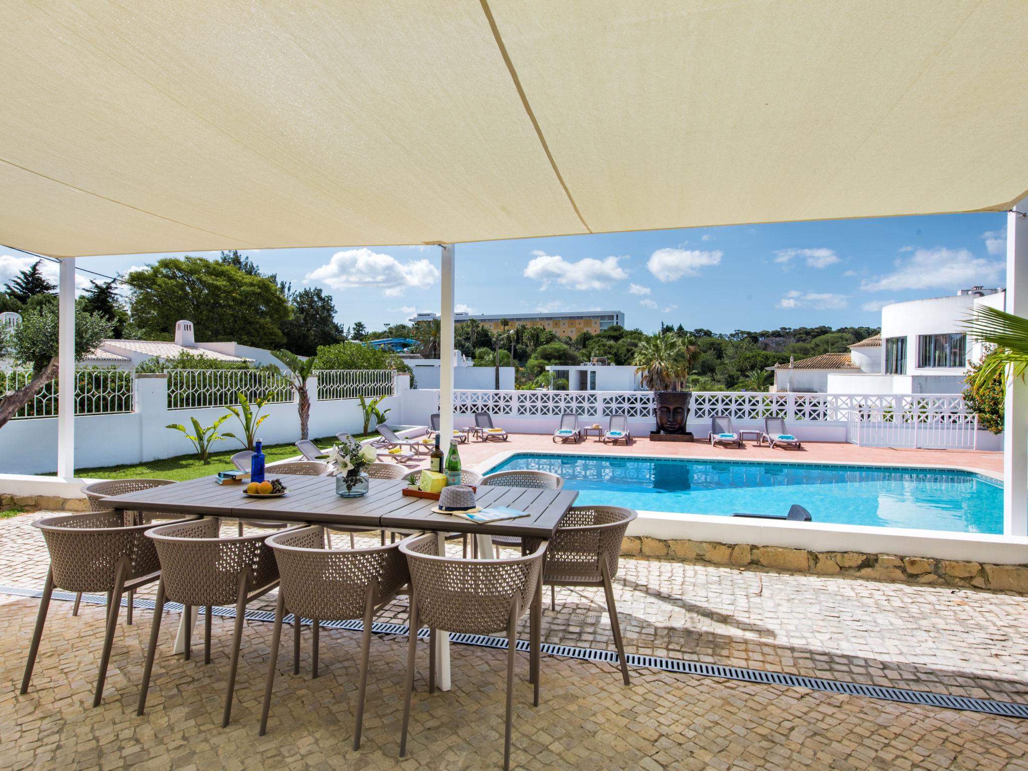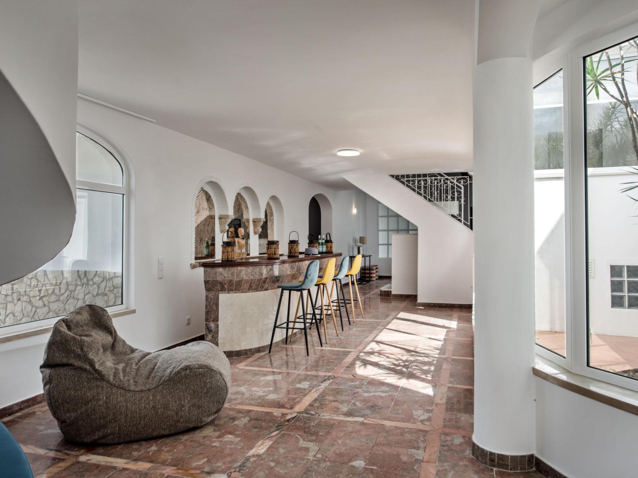 Very modern, cosy villa "Aladdin - VIP Properties", 2 storeys, detached. Outside the resort, 4 km from the centre of Albufeira, residential area (villas), 1.8 km from the sea. Private: beautiful garden to relax, swimming pool angular (5 x 10 m, depth 90 - 180 cm, seasonal availability: 01.Jan. - 31.Dec.). Outdoor shower, garden furniture, barbecue. In the house: WiFi, hot tub, air conditioning, washing machine. Parking at the house. Shop 2.5 km, grocery 2.7 km, supermarket 2.5 km, shopping centre 3.7 km, restaurant 1.1 km, bar 1.9 km, bakery 2.5 km, café 1.9 km, bicycle rental 5.2 km, bus stop 1.2 km, sandy beach "Praia Maria Luísa" 1.8 km, diving center 7.6 km. Marina 8.2 km, golf course (18 hole) 700 m, surf school 11.7 km, tennis 6.3 km, riding stable 3.3 km. Nearby attractions: Zomarine 13 km, Aqualand 19 km, Krazy World 17 km, Sand City 22 km, Faro Airport 40 km, Reserva Natural Caminho da Baleeira 10 km. Well-known lakes can easily be reached: Lagoa dos Salgados 16 km. Please note: car recommended, no lift. Suitable for families. Loading and unloading of baggage is possible at the holiday house. This house has a separate studio with kitchen and bathr and a small living room with Wi-Fi and TV channels is already mentioned in the description.Young groups under 25 y.o. will be charged an extra deposit per person on spot .