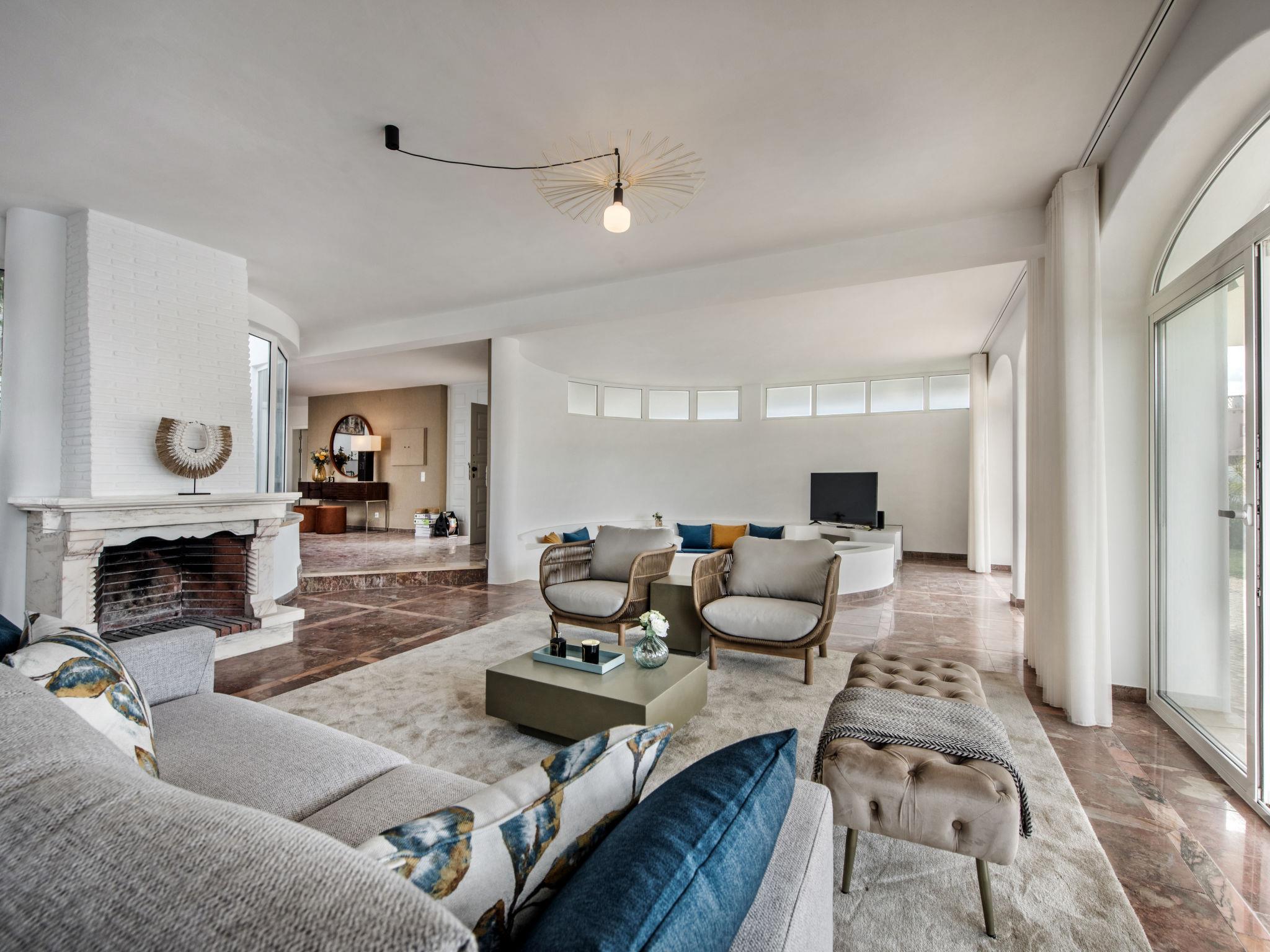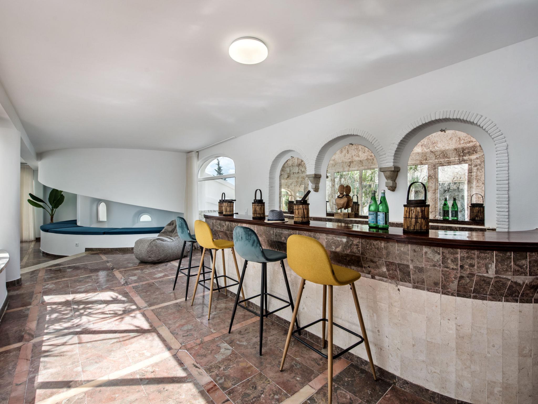 "Aladdin - VIP Properties", 6-room villa 523 m2 on 2 levels. Very modern and cosy furnishings: living room with dining table and cable TV (flat screen), air conditioning and forced-air heating. Exit to the terrace. Studio, window onto the living room with 2 beds (90 cm, length 200 cm), shower/WC and cable TV (flat screen), air conditioning and forced-air heating. Exit to the terrace, to the patio. Kitchen (dishwasher, 4 ceramic glass hob hotplates, toaster, kettle, microwave, freezer, electric coffee machine). Sep. WC. Upper floor: 1 room with 2 beds (90 cm, length 200 cm), shower/WC, air conditioning and forced-air heating. 1 room with 3 beds (90 cm, length 200 cm), shower/WC, air conditioning and forced-air heating. 1 room with 1 french bed (180 cm, length 200 cm), shower/WC, air conditioning and forced-air heating. 1 room with 1 french bed (180 cm, length 200 cm), shower/WC, air conditioning and forced-air heating. Large garden, lawn, porch. Deck chairs (8), sitting area. View of the swimming pool and the garden. Facilities: washing machine, iron, children's high chair, baby cot for up to 2 year olds (extra), hair dryer. Internet (WiFi, free). Please note: suitable for families. Non-smoking house. Fire extinguisher, no lift. 150782/AL