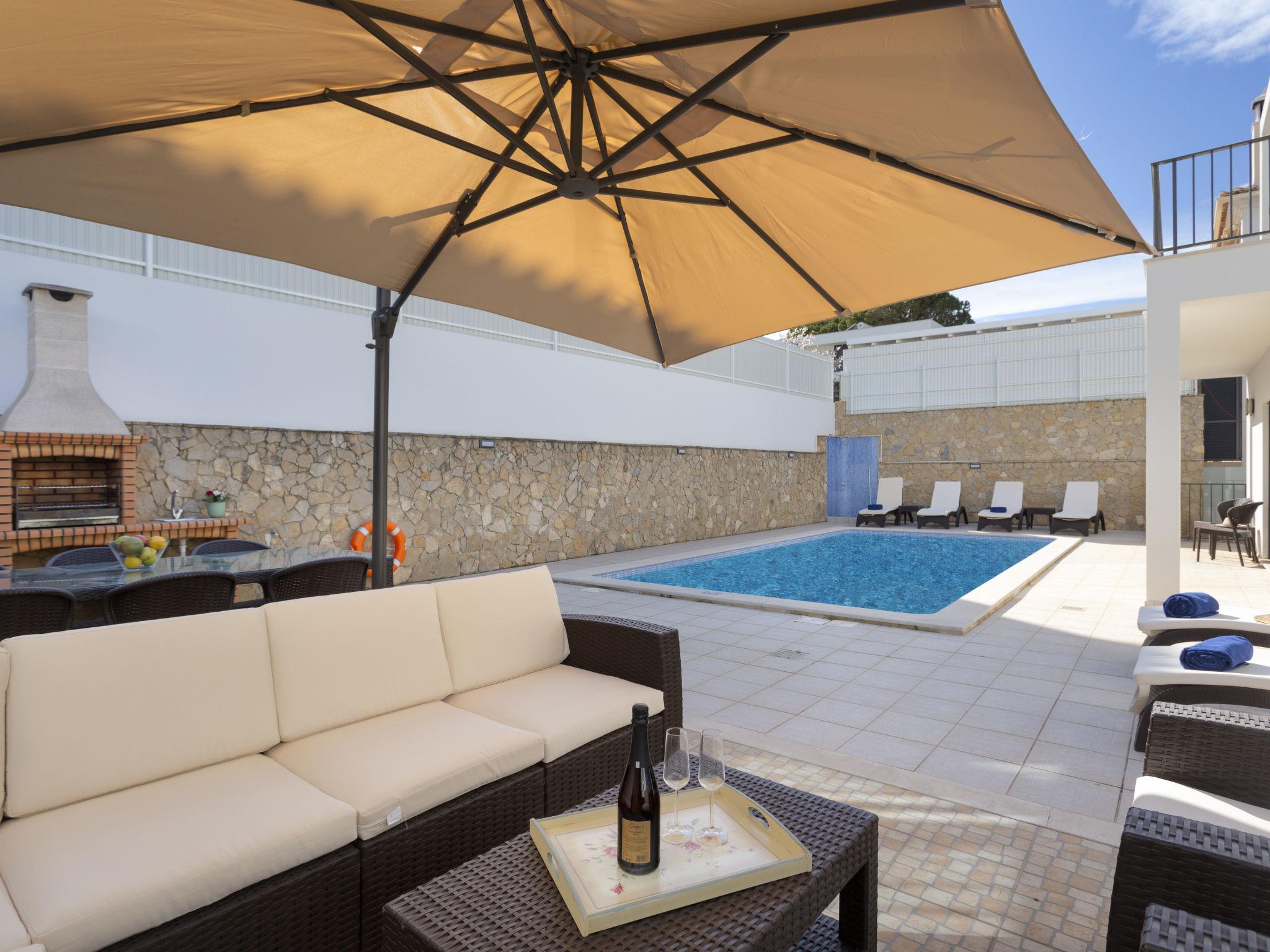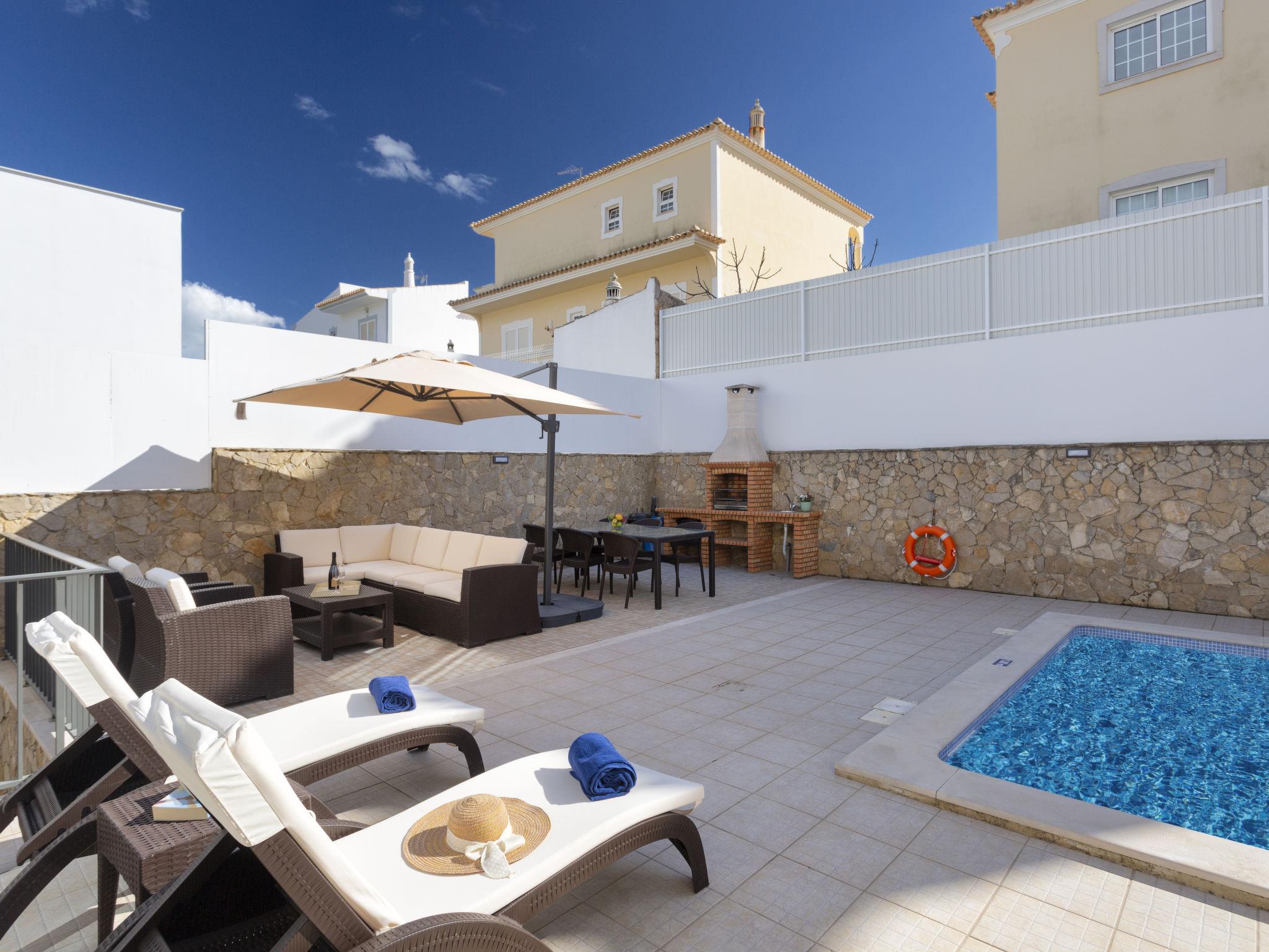 Very modern, cosy villa "Mathilda". Outside the resort, 5.3 km from the centre of Albufeira, in a quiet position residential area (villas), 2.3 km from the sea. Private: property (fenced), swimming pool angular (4 x 8 m, depth 100 - 180 cm, seasonal availability: 01.Jan. - 31.Dec.). Outdoor shower, terrace. In the house: WiFi, air conditioning, washing machine. Parking at the house. Shop 2.1 km, grocery 1.3 km, supermarket 1.3 km, shopping centre 5.1 km, restaurant 750 m, bar 270 m, bakery 1.3 km, café 270 m, bicycle rental 3.9 km, bus stop 270 m, railway station 8.8 km, sandy beach "Praia de São Rafael" 1.9 km, rocky beach "Praia da Ponta Pequena" 1.8 km, diving center 2.3 km. Marina 2.3 km, golf course (18 hole) 4.6 km, surf school 3.4 km, tennis 6 km, minigolf 5.8 km, riding stable 4.9 km, children's playground 3.8 km. Nearby attractions: Zoomarine Algarve 7.9 km, Krazy World 14.6 km, Fiesa Sand Sculptures 16.2 km, Aqualand Algarve 12 km, Marina de Albufeira 2.3 km, Reserva Natural Caminho da Baleeira 2.3 km. Well-known lakes can easily be reached: Lagoa dos Salgados 7.7 km. Please note: car recommended. Suitable for families. Object suitable for. The owner does not accept any youth groups.