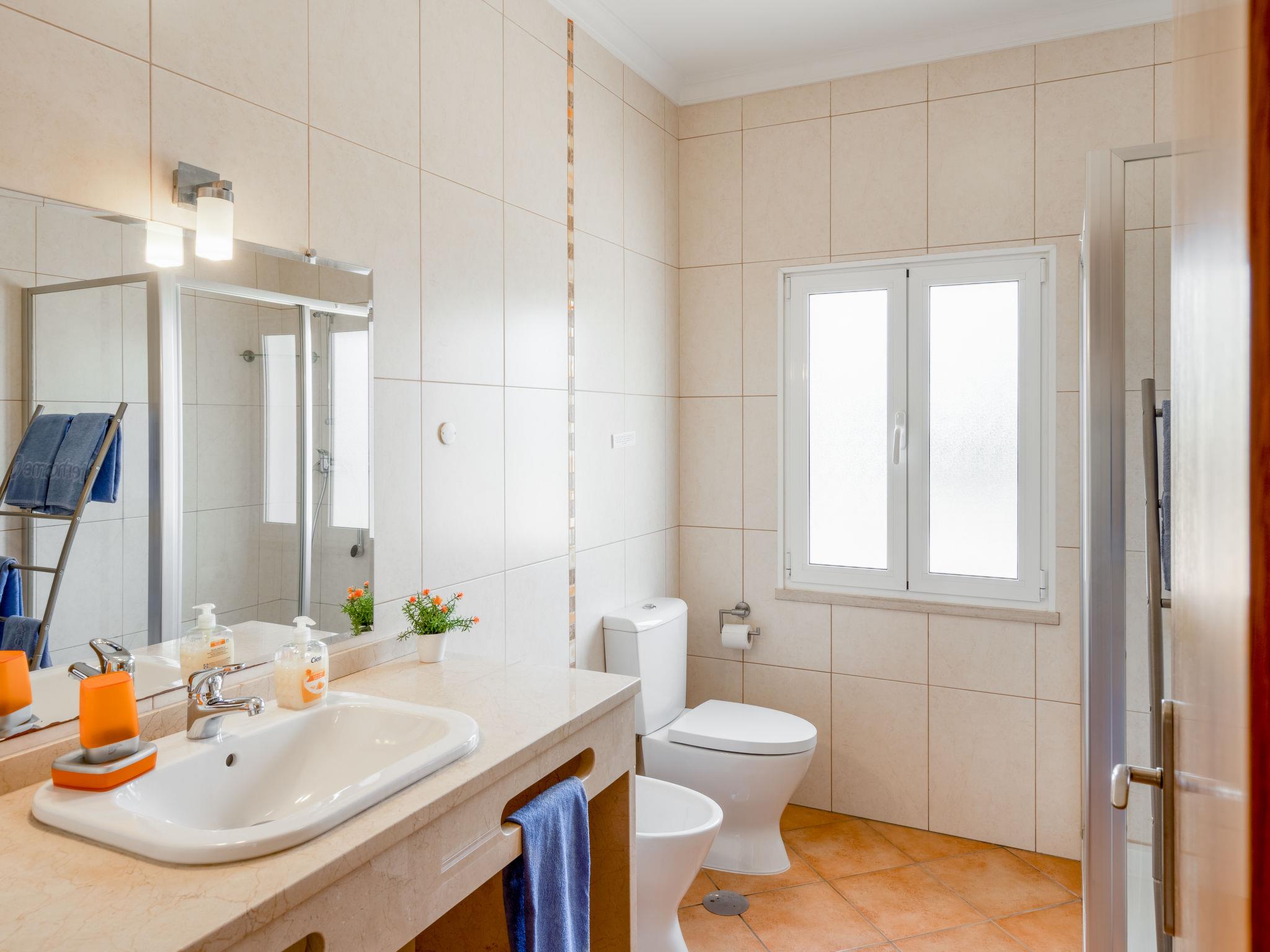 " Villa Pescada", 4-room villa 150 m2. Object suitable for 6 adults. Spacious and bright, very practical and cosy furnishings: lounge with dining table, TV, international TV channels, flat screen, air conditioning and forced-air heating. 1 room with 2 beds (90 cm, length 200 cm), air conditioning and forced-air heating. Exit to the patio. 1 room with 2 beds (90 cm, length 200 cm), air conditioning and forced-air heating. 1 room with 1 french bed (140 cm, length 190 cm), air conditioning and forced-air heating. Kitchen (oven, dishwasher, 1 ceramic glass hob hotplate, toaster, kettle, microwave, freezer, electric coffee machine, Capsules for coffee machine (Delta) free) with dining table, TV. Exit to the patio. 2 showers/WC. Comfortable furnishings in the country house style. Terrace furniture, barbecue, deck chairs (6). Very beautiful view of the countryside. Facilities: washing machine, iron, children's high chair, baby cot for up to 2 year olds, hair dryer. Internet (WiFi). Parking. Suitable for families. The TV in the kitchen has only Portuguese channels. Free pool towels are available for the client. 63488/AL