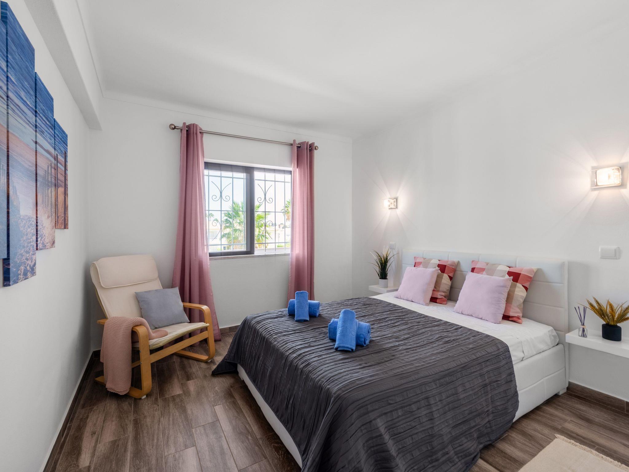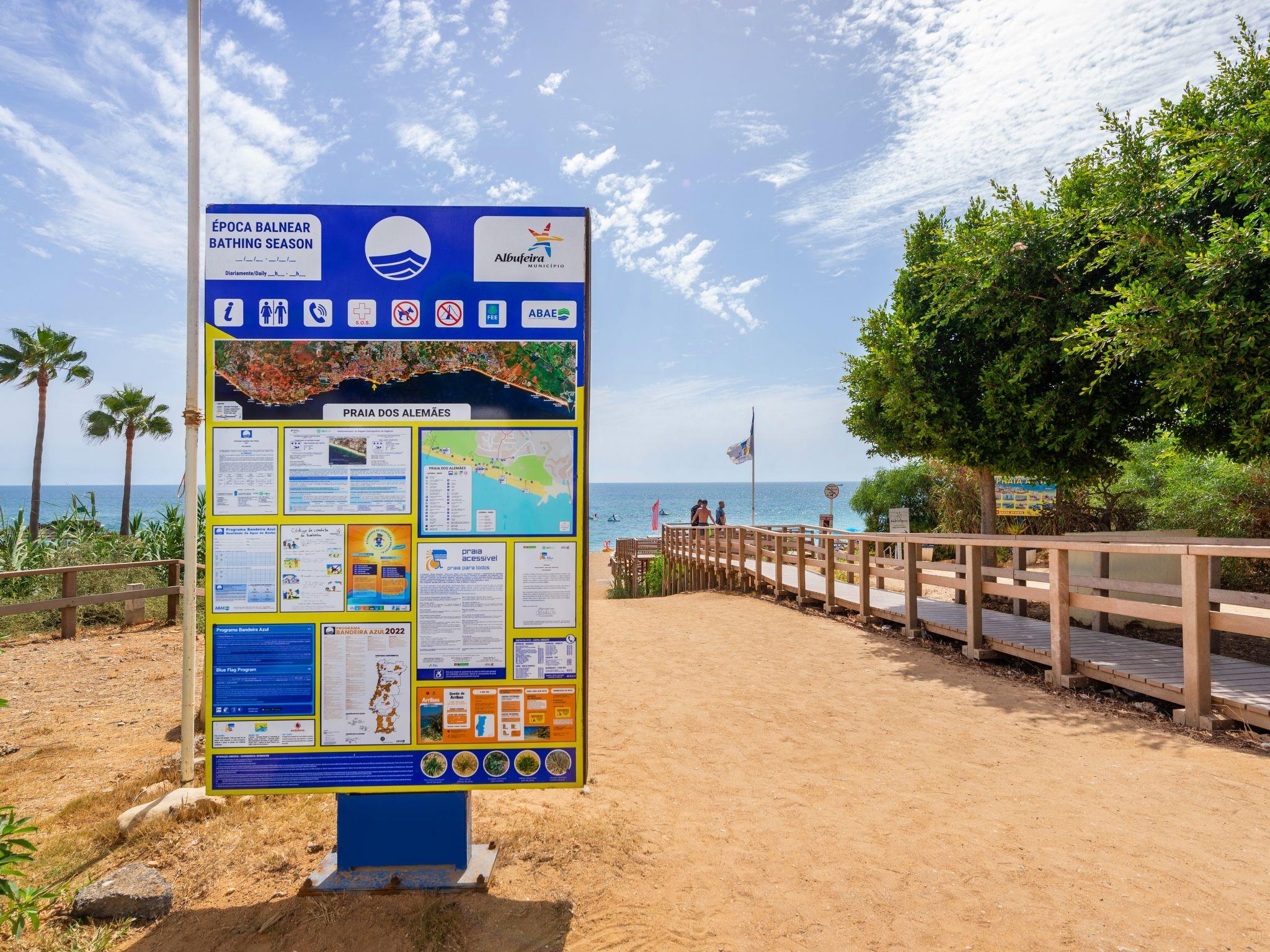 Very modern, cosy apartment block "Happy Moments" in 2021. In the district Albufeira, in a busy position, 300 m from the sea. For shared use: natural garden, swimming pool angular (5 x 12 m, depth 90 - 190 cm, seasonal availability: 01.Jan. - 31.Dec.). Outdoor shower. In the house: lift. Parking at the house. Shop 1.4 km, grocery 1.1 km, supermarket 1.5 km, shopping centre 1.4 km, restaurant 450 m, bar 70 m, bakery 750 m, café 400 m, bicycle rental 2.9 km, bus stop "Terminal Rodoviário de Albufeira" 3.1 km, railway station "Ferreias" 6.3 km, sandy beach "Alemães Beach" 300 m, rocky beach "Praia dos paradinhas, Albufeira" 1.2 km, diving center 2.1 km. Marina 6.4 km, golf course (18 hole) 6 km, surf school 9.6 km, sailing school 17.4 km, tennis 7.5 km, minigolf 600 m, riding stable 11.6 km. Nearby attractions: Parque Temático Zoomarine 1.1 km, Krazy World 16.4 km, Parque Aventura Albufeira 2.3 km, Aqualand Algarve 16.6 km, Ermida de Nossa Senhora da Orada 4.8 km, The Strip Albufeira 1.1 km. Well-known lakes can easily be reached: Lagoa dos Salgados 13.5 km. Please note: car recommended. Suitable for families. Groups of teenagers on request only. Loading and unloading of baggage is possible at the holiday house.