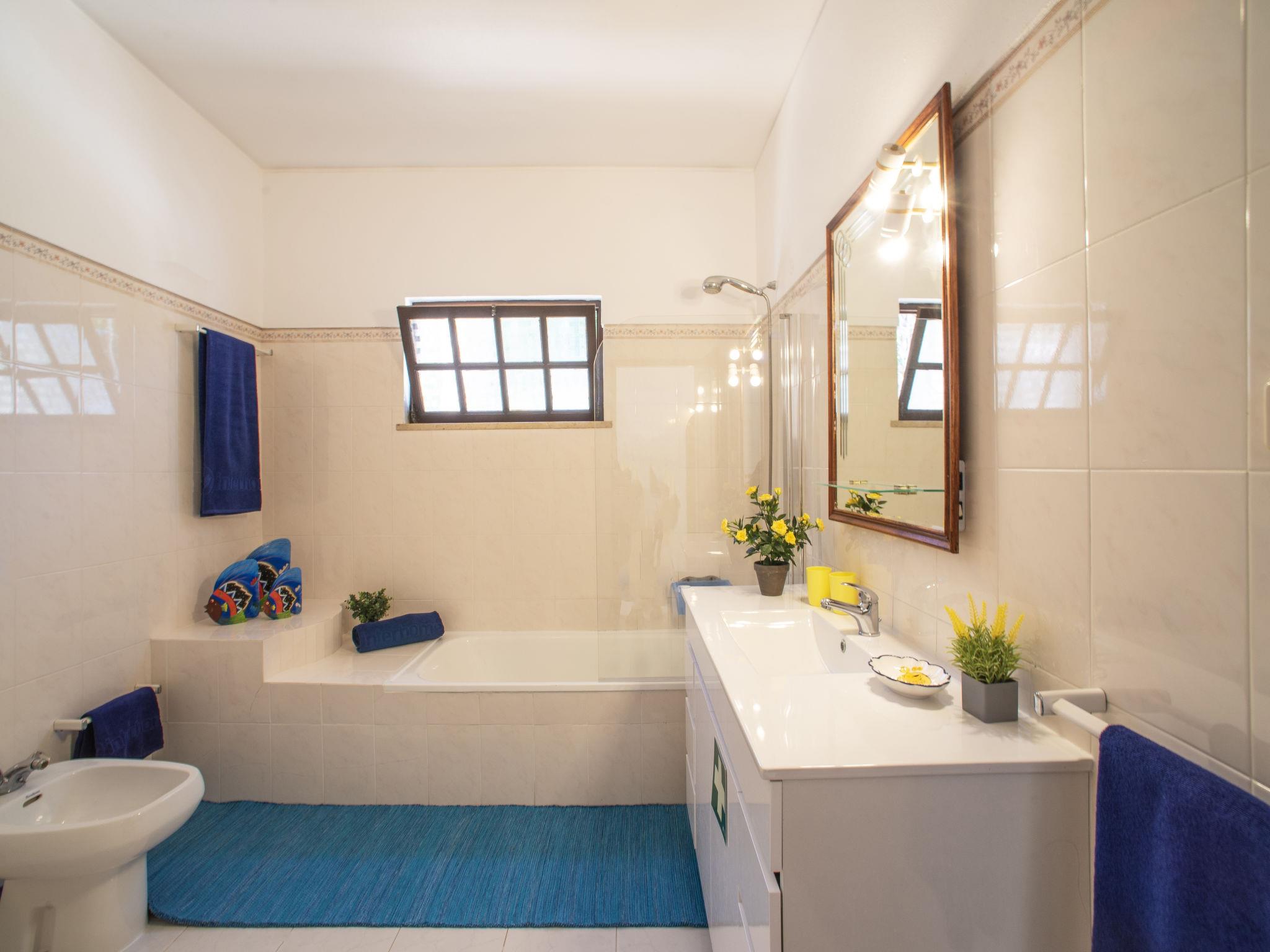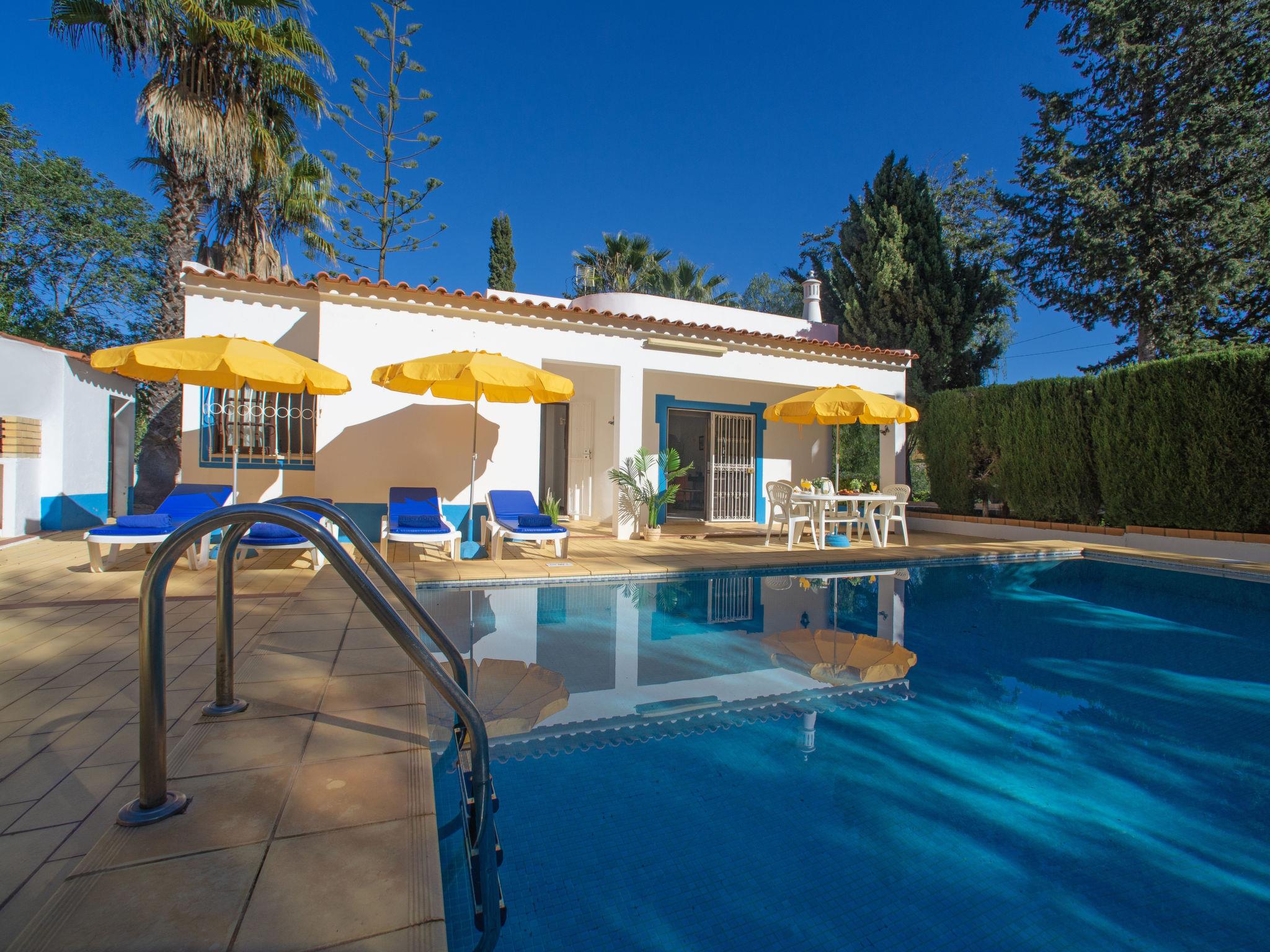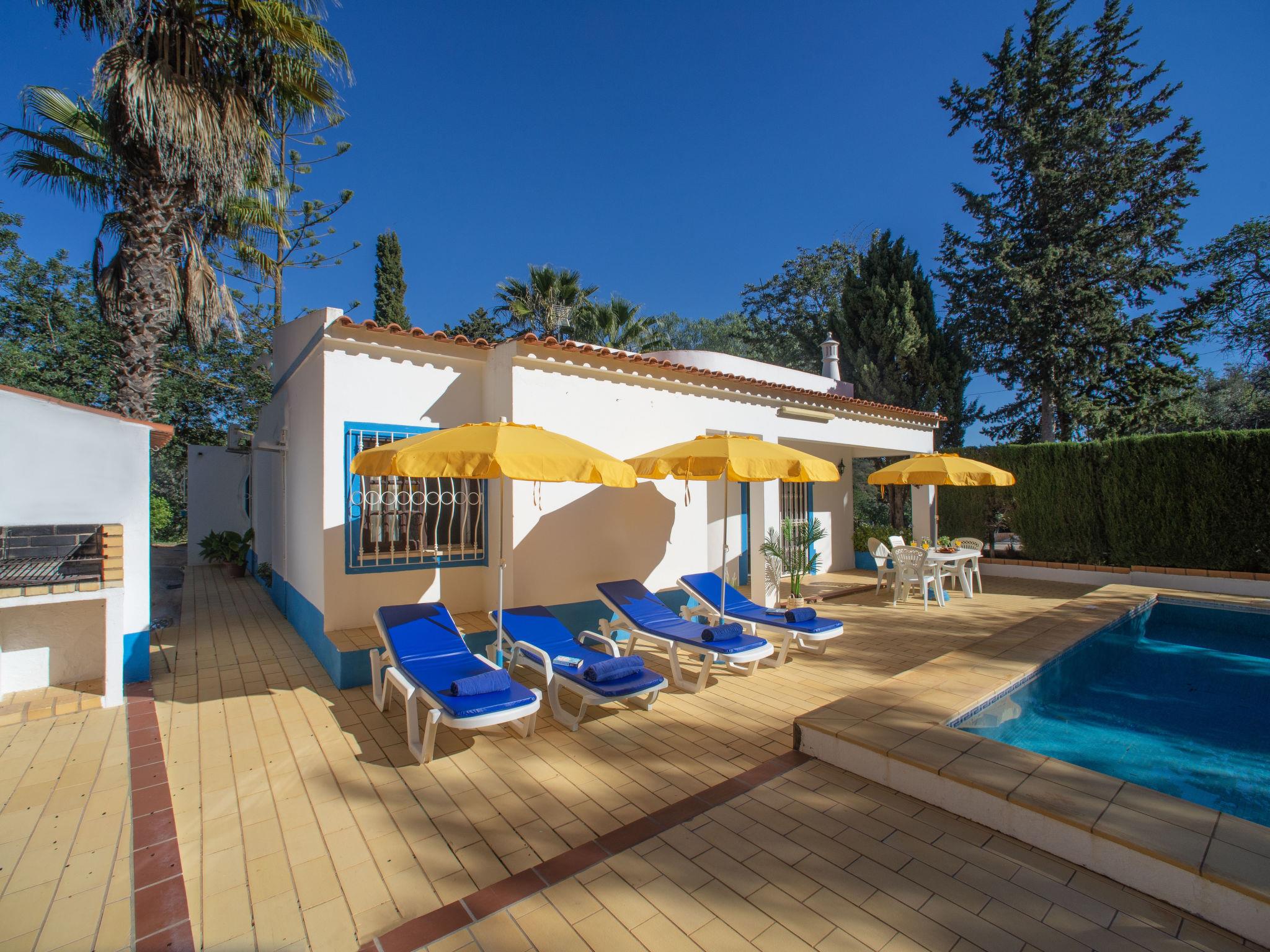 Very cosy, comfortable villa "Maria", surrounded by trees and fields. Outside the resort, in the district Albufeira, in a quiet position, 3.4 km from the sea. Private: property 1'000 m2 (fenced), swimming pool angular (9 x 4 m, depth 90 - 200 cm, seasonal availability: 01.Jan. - 31.Dec.). Outdoor shower, garden furniture, barbecue. In the house: WiFi, table tennis, air conditioning, washing machine. Parking on the premises. Shop 4.1 km, grocery 2.3 km, supermarket 1.6 km, restaurant 2.3 km, bar 4.1 km, bakery 1.6 km, café 1.2 km, internet café 4.1 km, pedestrian zone 4.1 km, pub garden 4.1 km, bus stop 1 km, sandy beach "Praia do Peneco" 3.4 km. Marina 4.8 km, golf course (18 hole) 7.7 km. Nearby attractions: Zoomarine 11.6 km, Marina de Albufeira 4.8 km, Aqualand 12.6 km, Fiesa 10 km, Algarve Shopping 3.2 km, Krazy World 13.9 km. Well-known lakes can easily be reached: Lagoa dos Salgados 11.2 km. Hiking paths: Monchique 53 km. Please note: car recommended. Suitable for families. Groups of teenagers on request only. Loading and unloading of baggage is possible at the holiday house.
