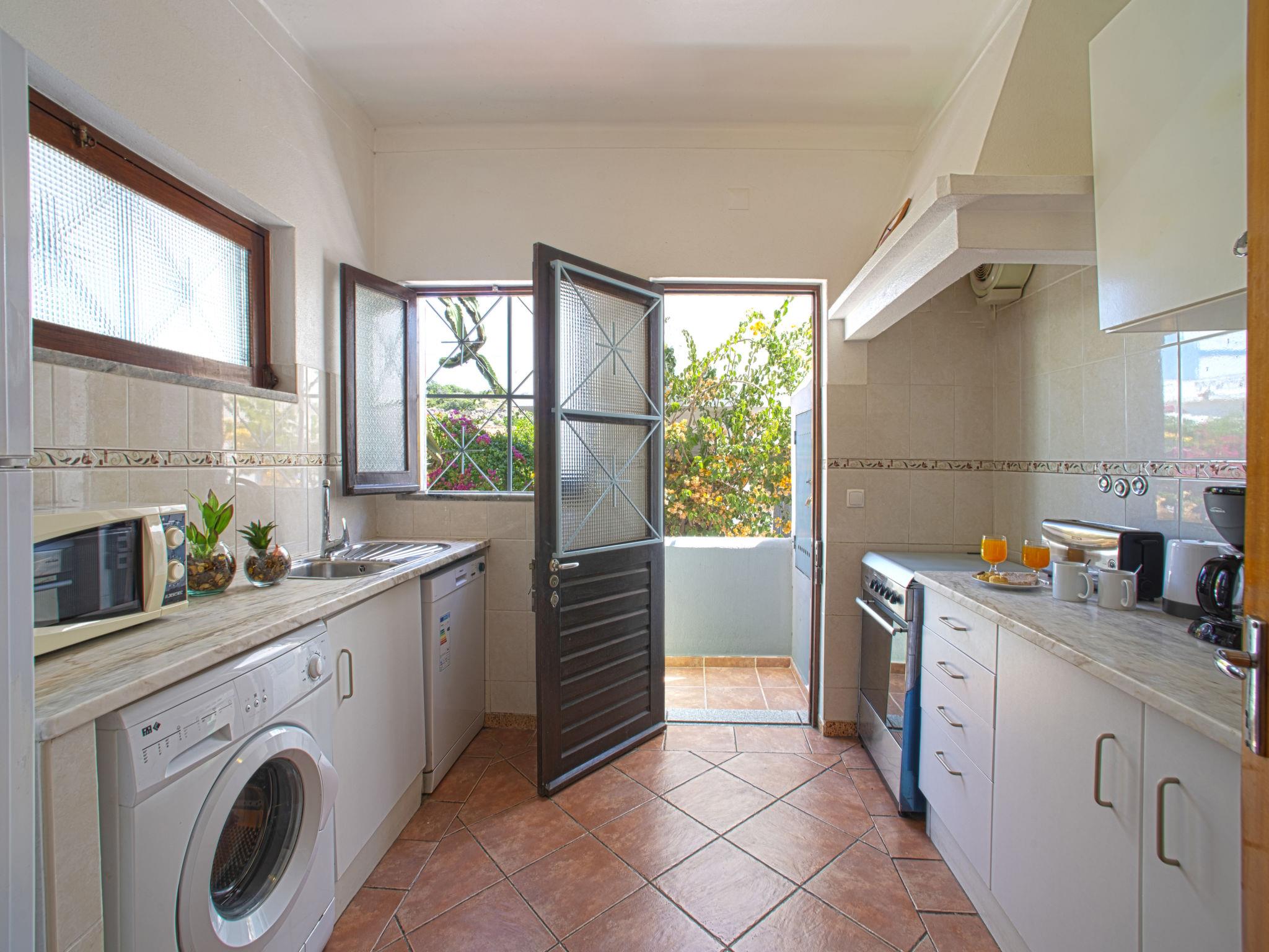 Rustic semi-detached house "Azul". 500 m from the centre of Albufeira, 500 m from the sea, from the beach. Private: property 450 m2 (fenced) with lawn and wildlife garden. Table tennis. In the house: roof terrace. Parking at the house, public parking on the road. Shop 100 m, supermarket 1.2 km, bus stop 50 m, sandy beach "São Rafael" 4 km. Marina 1.3 km, golf course (18 hole) 7.5 km.