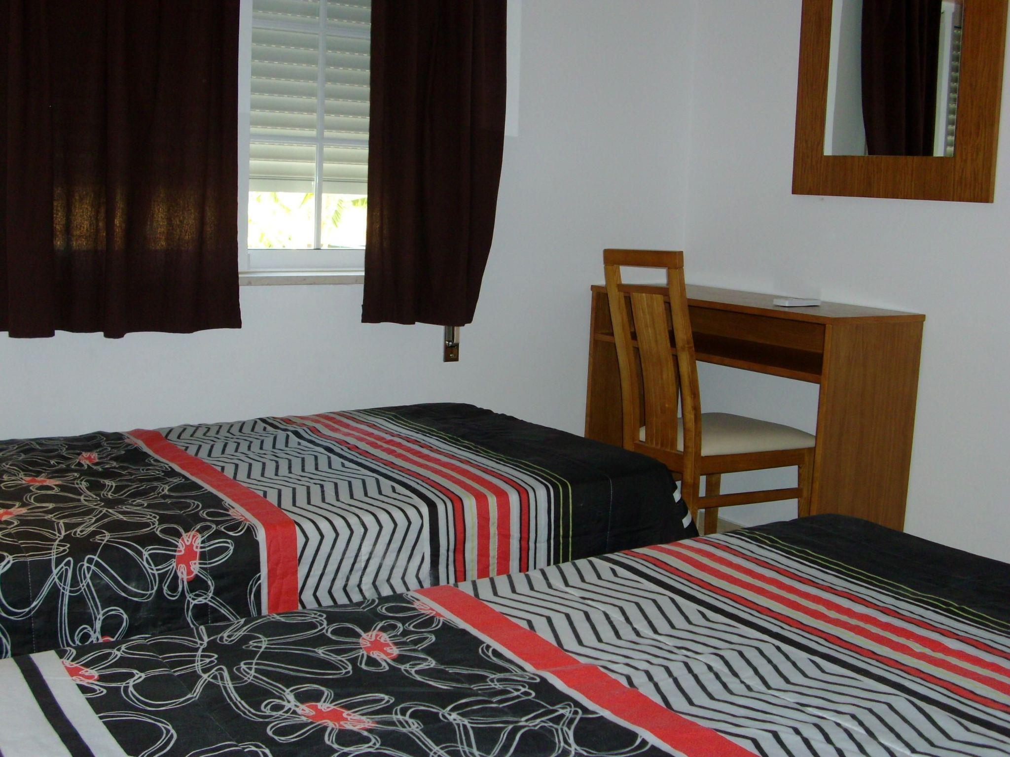The apartment is on the first floor and is suitable for up to four people. It has a bedroom with a wardrobe and two single beds (90 x 200cm) that can also be joined together. The kitchen is fully-equipped and includes a fridge, stove, oven, coffee machine, toaster and kettle. The living room has a sofa suite including a sofa bed (140 x 200cm) for up to two people and a TV (Portuguese channels). You can sit at the dining table. Two children’s beds can be provided at a supplementary charge. The bathroom comprises a toilet, washbasin, shower and bath. The kitchen has both a washing machine and a dishwasher.