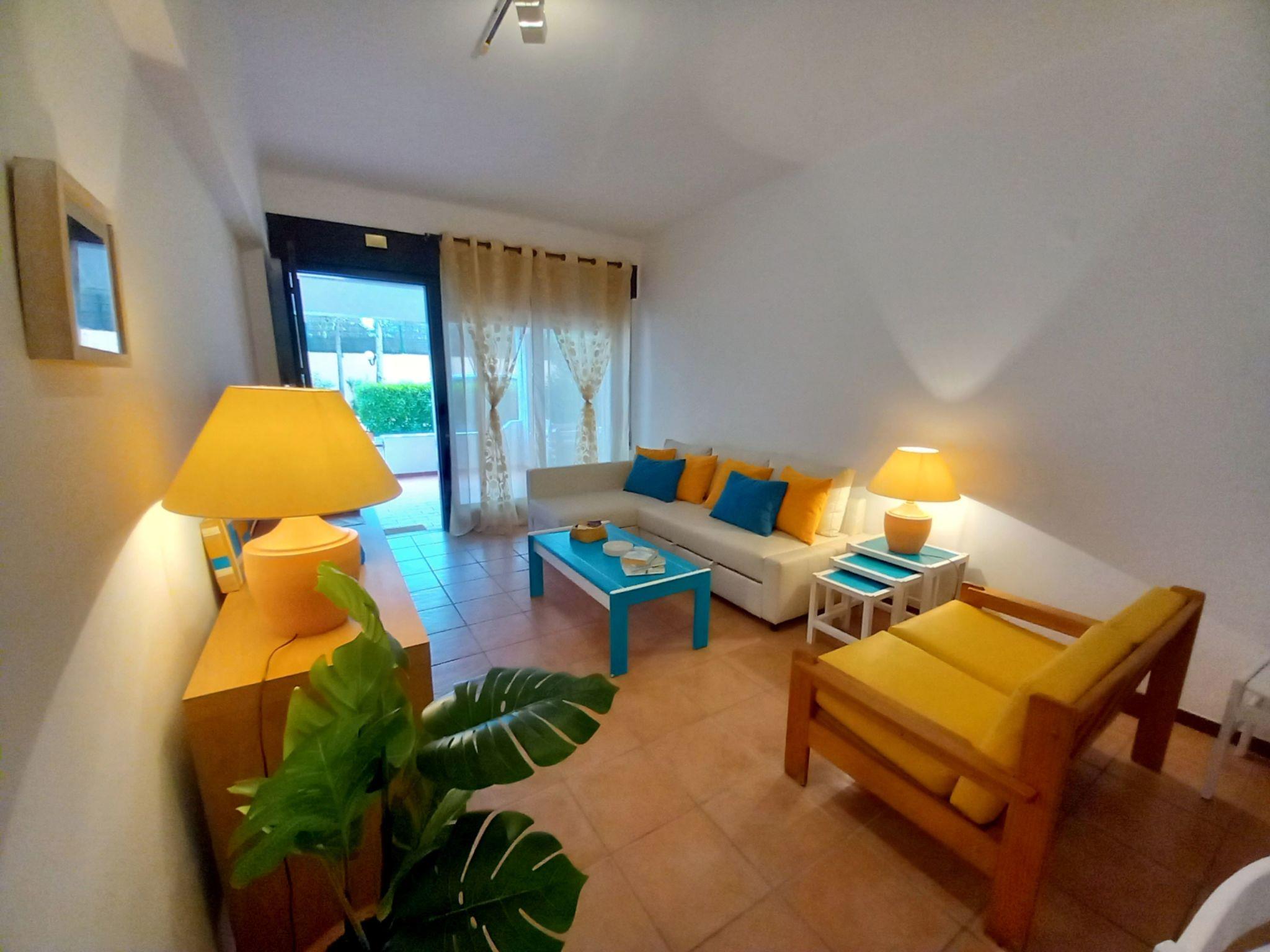 "Joyce - Sunny Way", 3-room apartment 62 m2, on the ground floor. Very practical furnishings: living room with 1 sofabed (140 cm, length 190 cm), dining table, cable TV and flat screen. Exit to the balcony. 1 room with 1 french bed (140 cm, length 200 cm). 1 room with 2 beds (90 cm, length 200 cm), air conditioning and forced-air heating. Kitchen (4 hot plates, oven, dishwasher, toaster, kettle, microwave, freezer, electric coffee machine). Shower/WC. Balcony furniture. Facilities: iron, hair dryer. Internet (WiFi, free). Suitable for families. 137099/AL