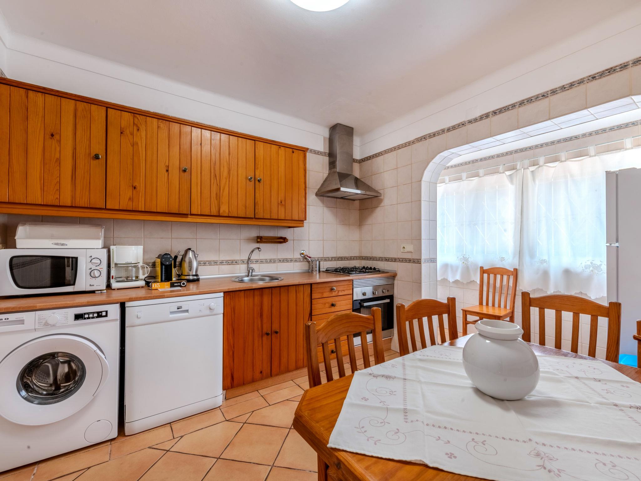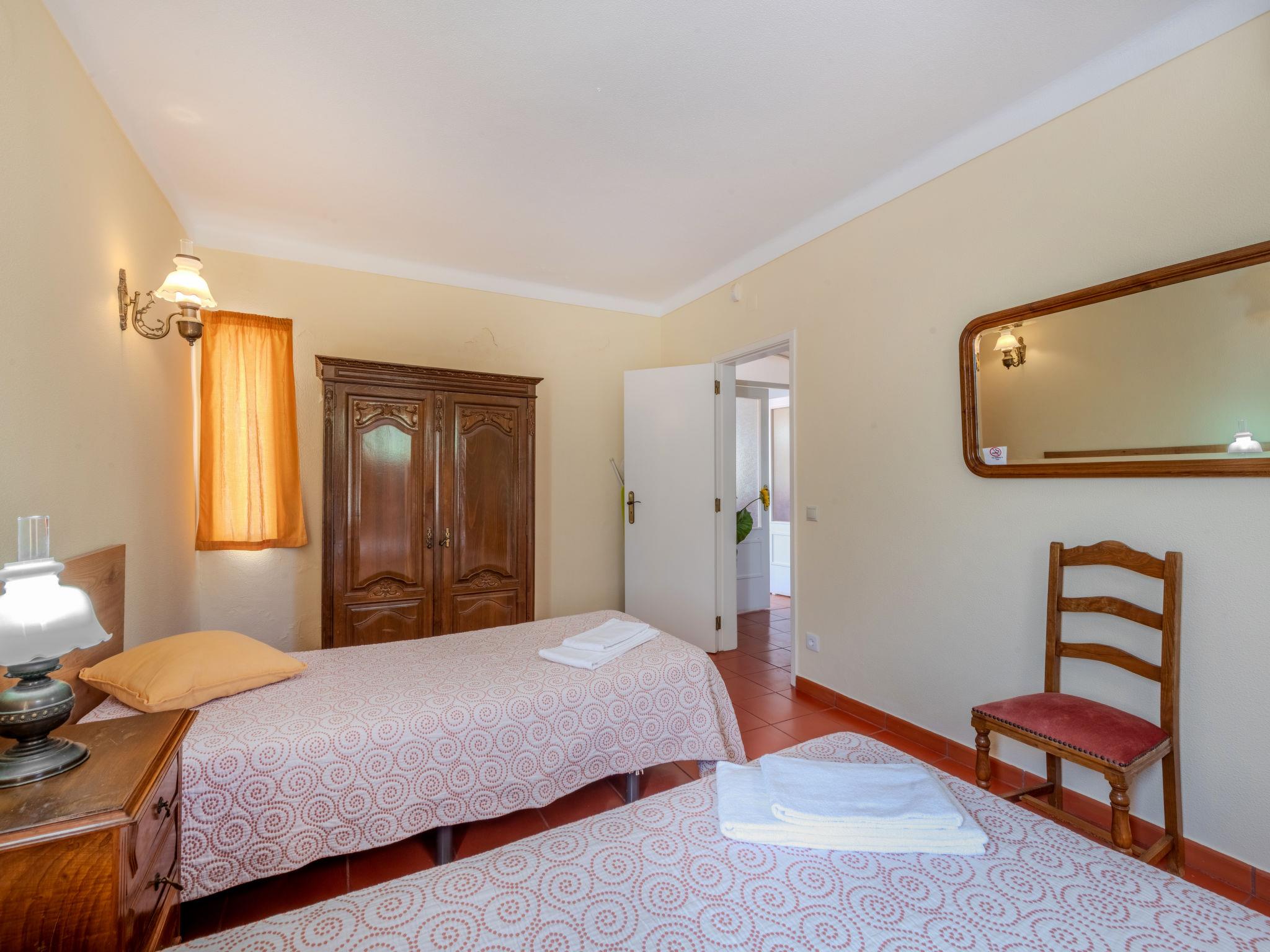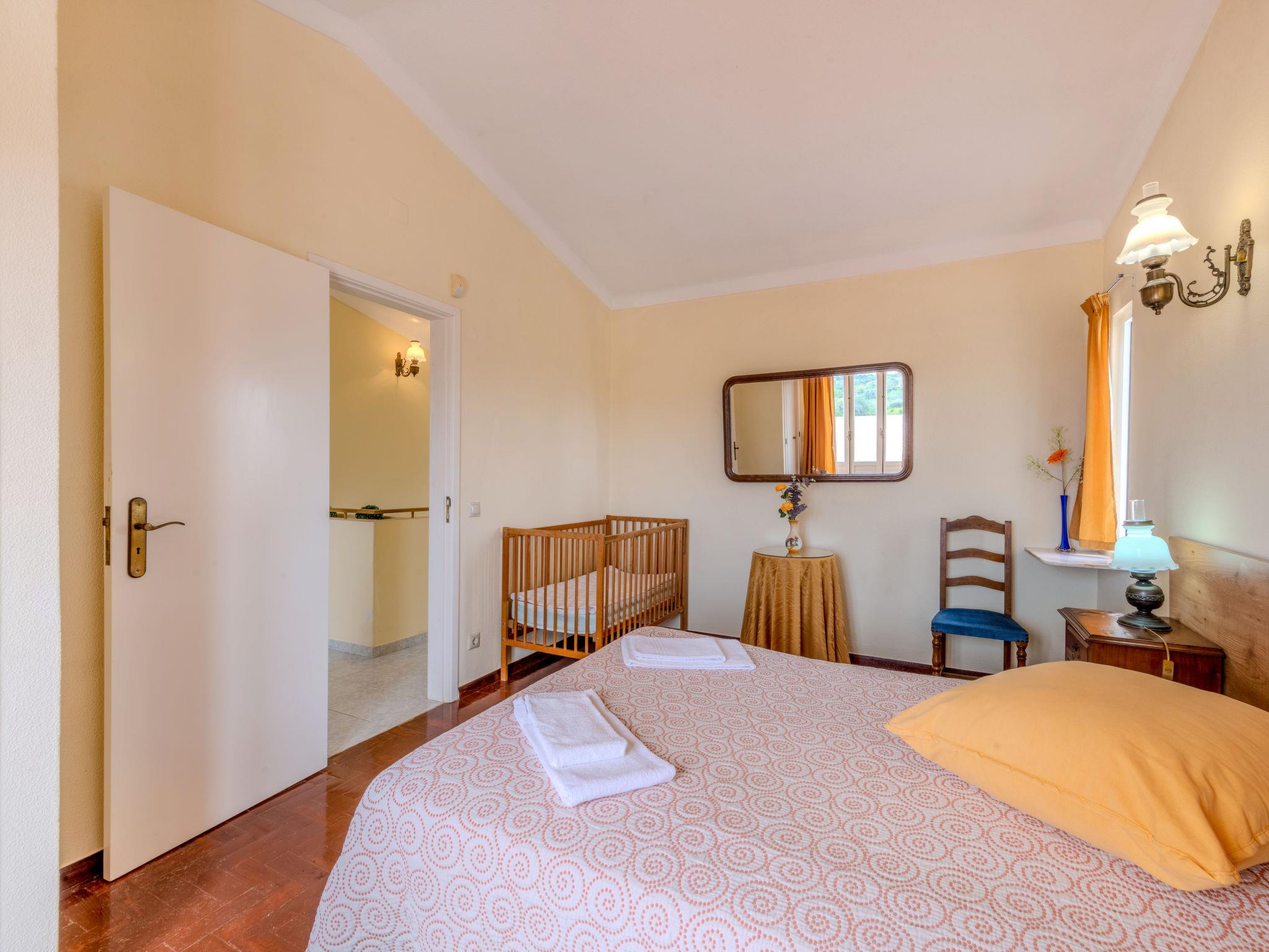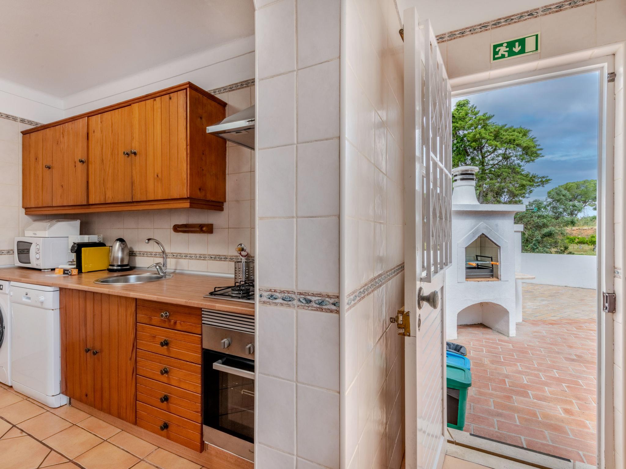 "Neves I", 4-room house 95 m2 on 2 levels. Practical and rustic furnishings: living/dining room with open-hearth fireplace (only for decoration), dining table, satellite TV and DVD. Exit to the terrace. 1 room with 2 beds (90 cm, length 200 cm), air conditioning. Exit to the terrace. Kitchen (oven, dishwasher, 4 gas rings, toaster, kettle, microwave, freezer, electric coffee machine) with dining table. Exit to the garden. Shower/WC. Upper floor: 1 room with 1 french bed (140 cm, length 200 cm), air conditioning. Exit to the terrace. 1 room with 2 beds (90 cm, length 200 cm), air conditioning. Exit to the terrace. Shower/WC. Electric heating. Heating not available in all rooms. Parquet floors. Terrace roofed. Terrace furniture, barbecue, deck chairs (6). Facilities: washing machine, safe, iron, children's high chair, baby cot, hair dryer. Internet (WiFi, free). Please note: non-smokers only. Smoke alarm, fire extinguisher. 42696/AL