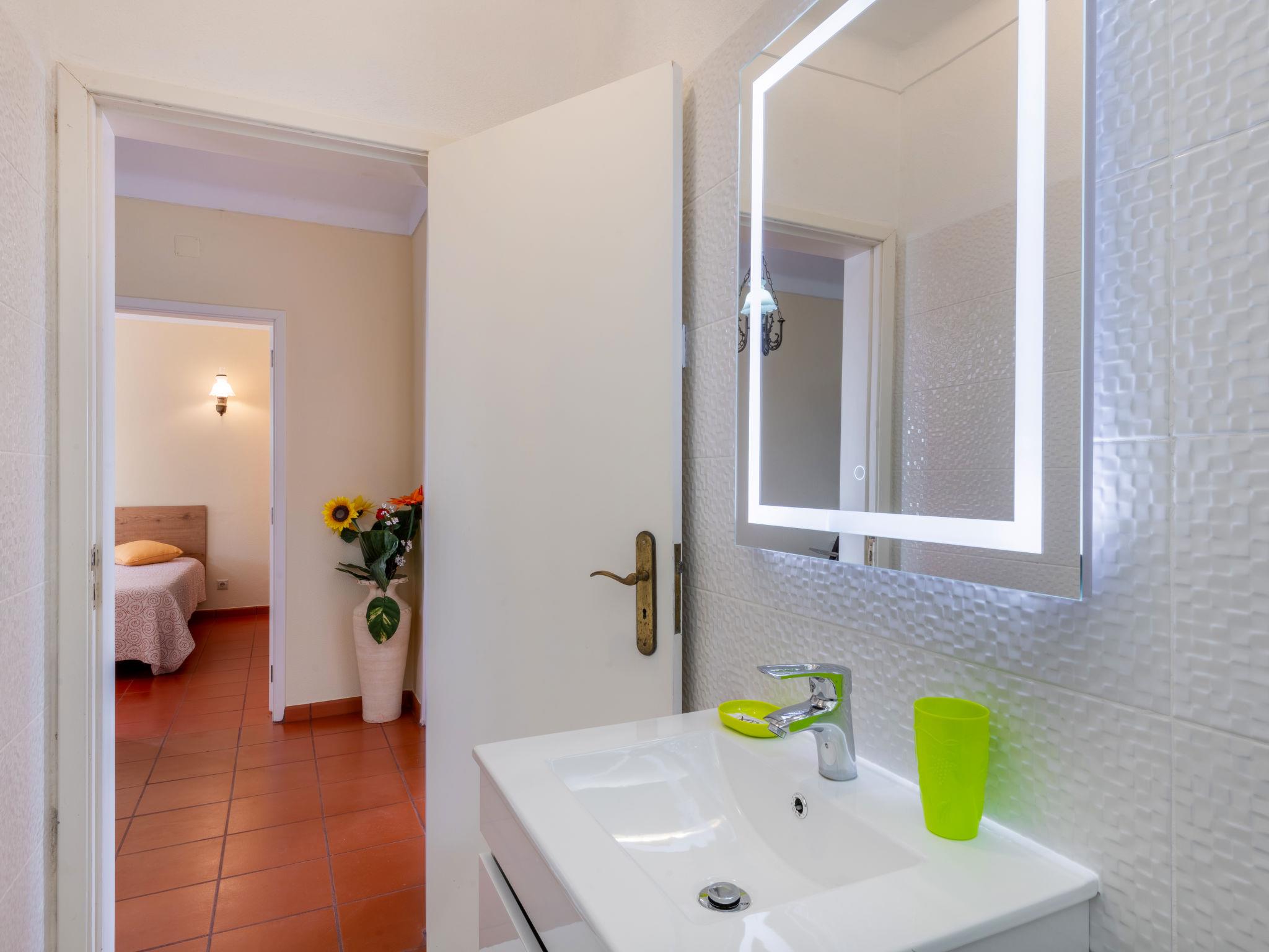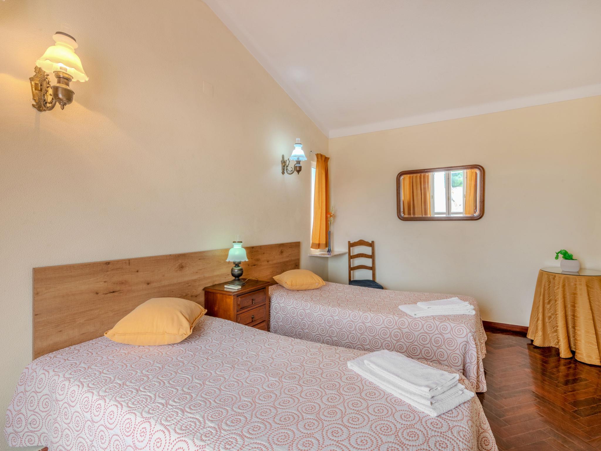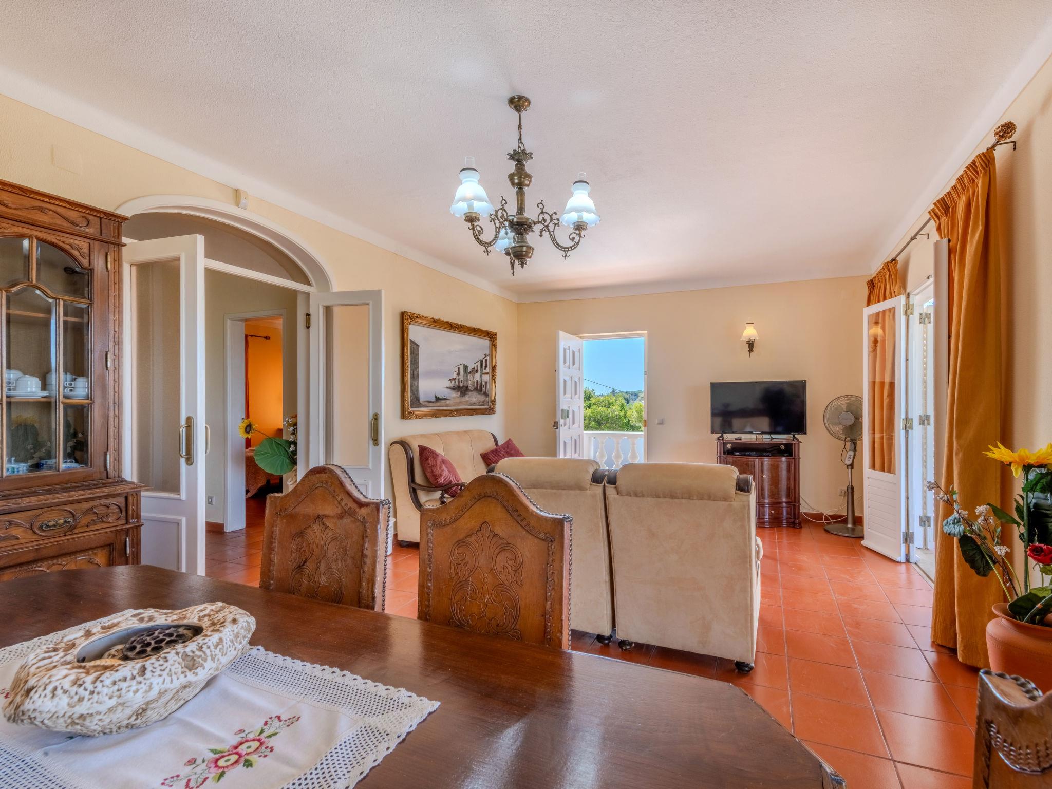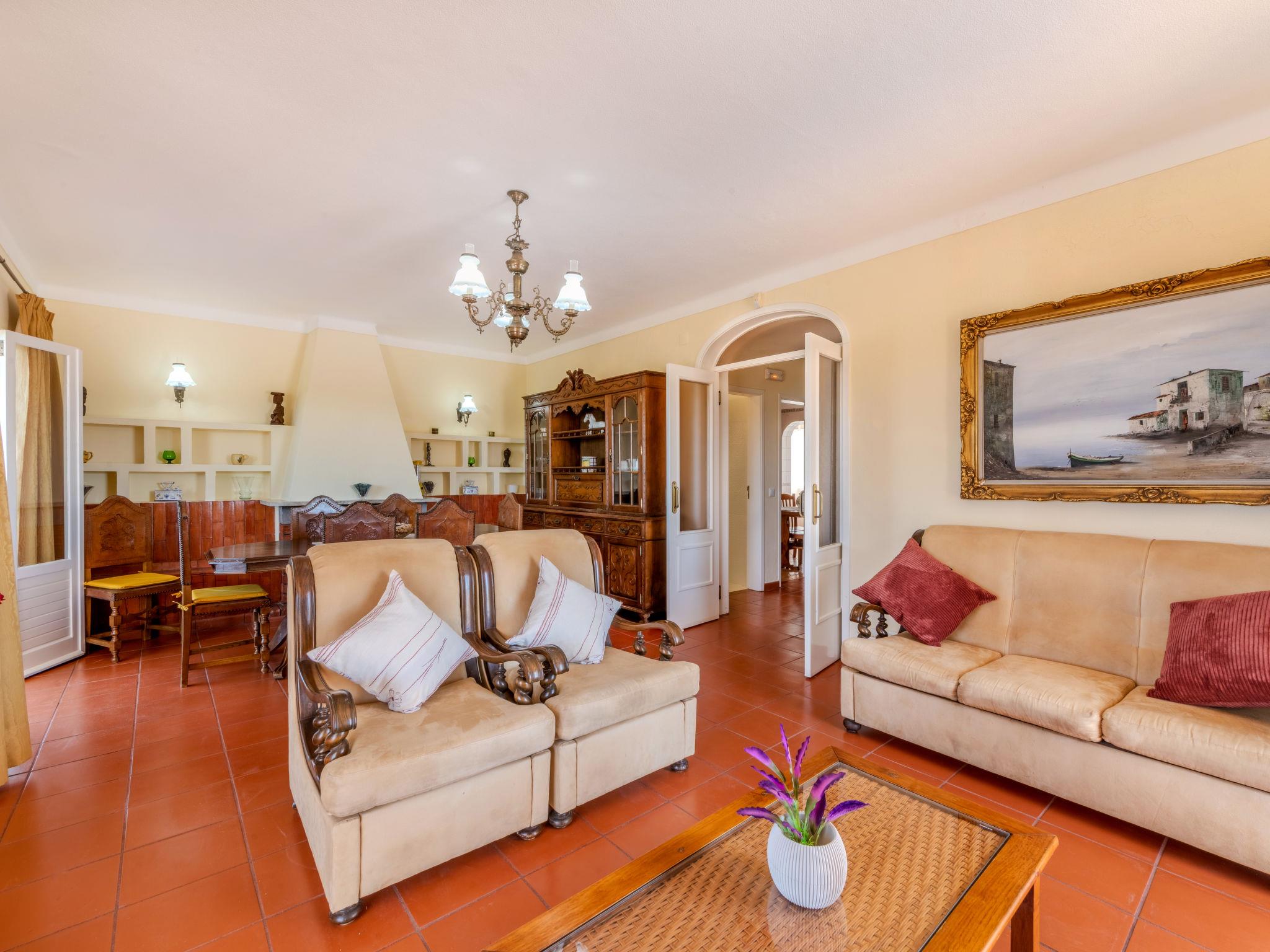 "Neves I", 4-room house 95 m2 on 2 levels. Practical and rustic furnishings: living/dining room with open-hearth fireplace (only for decoration), dining table, satellite TV and DVD. Exit to the terrace. 1 room with 2 beds (90 cm, length 200 cm), air conditioning. Exit to the terrace. Kitchen (oven, dishwasher, 4 gas rings, toaster, kettle, microwave, freezer, electric coffee machine) with dining table. Exit to the garden. Shower/WC. Upper floor: 1 room with 1 french bed (140 cm, length 200 cm), air conditioning. Exit to the terrace. 1 room with 2 beds (90 cm, length 200 cm), air conditioning. Exit to the terrace. Shower/WC. Electric heating. Heating not available in all rooms. Parquet floors. Terrace roofed. Terrace furniture, barbecue, deck chairs (6). Facilities: washing machine, safe, iron, children's high chair, baby cot, hair dryer. Internet (WiFi, free). Please note: non-smokers only. Smoke alarm, fire extinguisher. 42696/AL