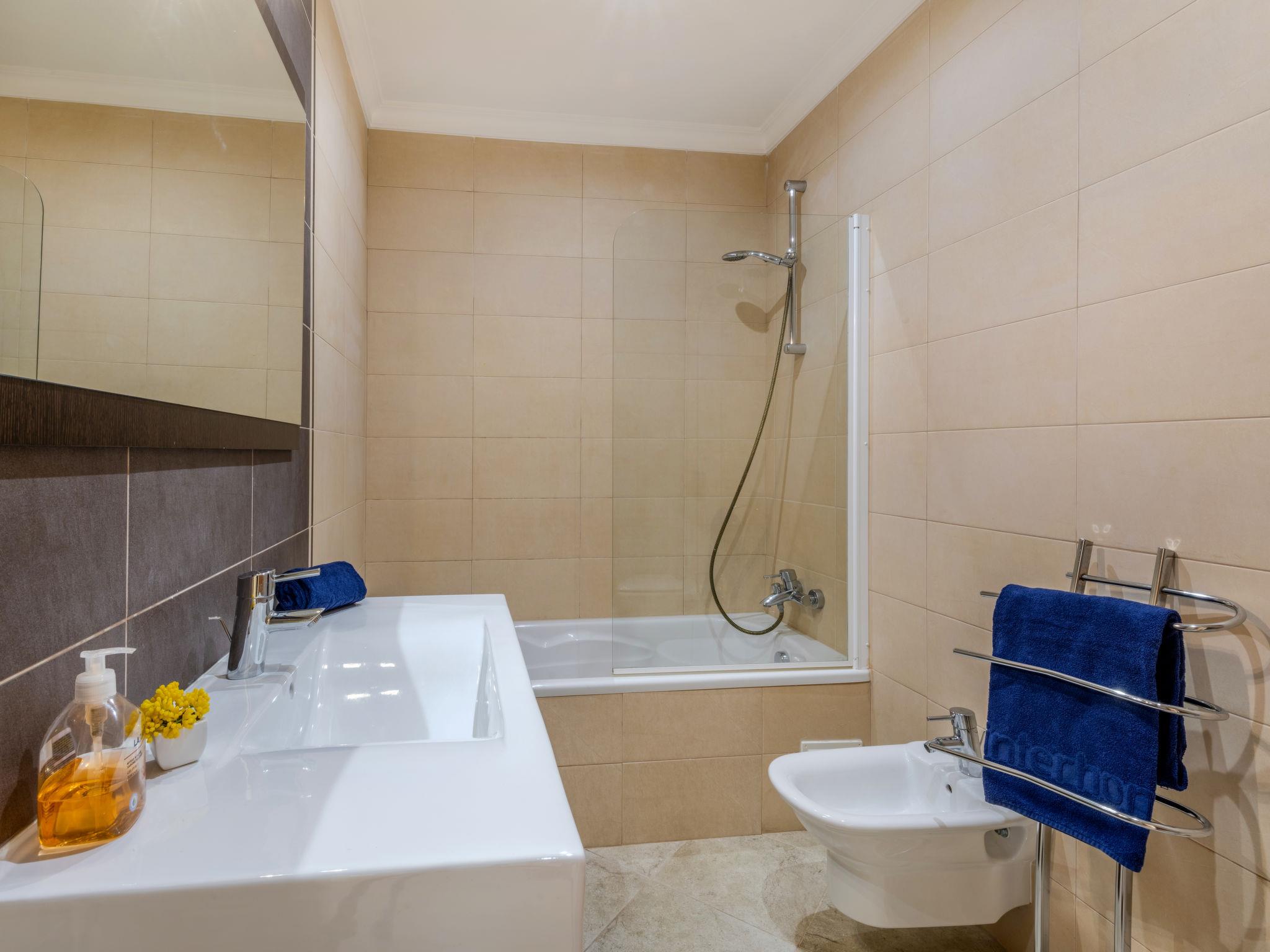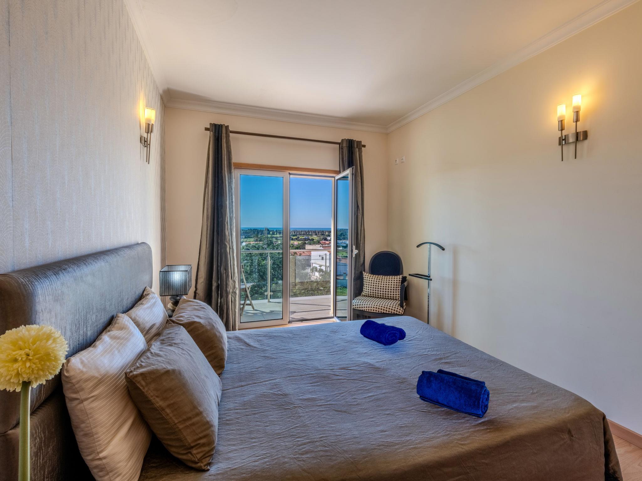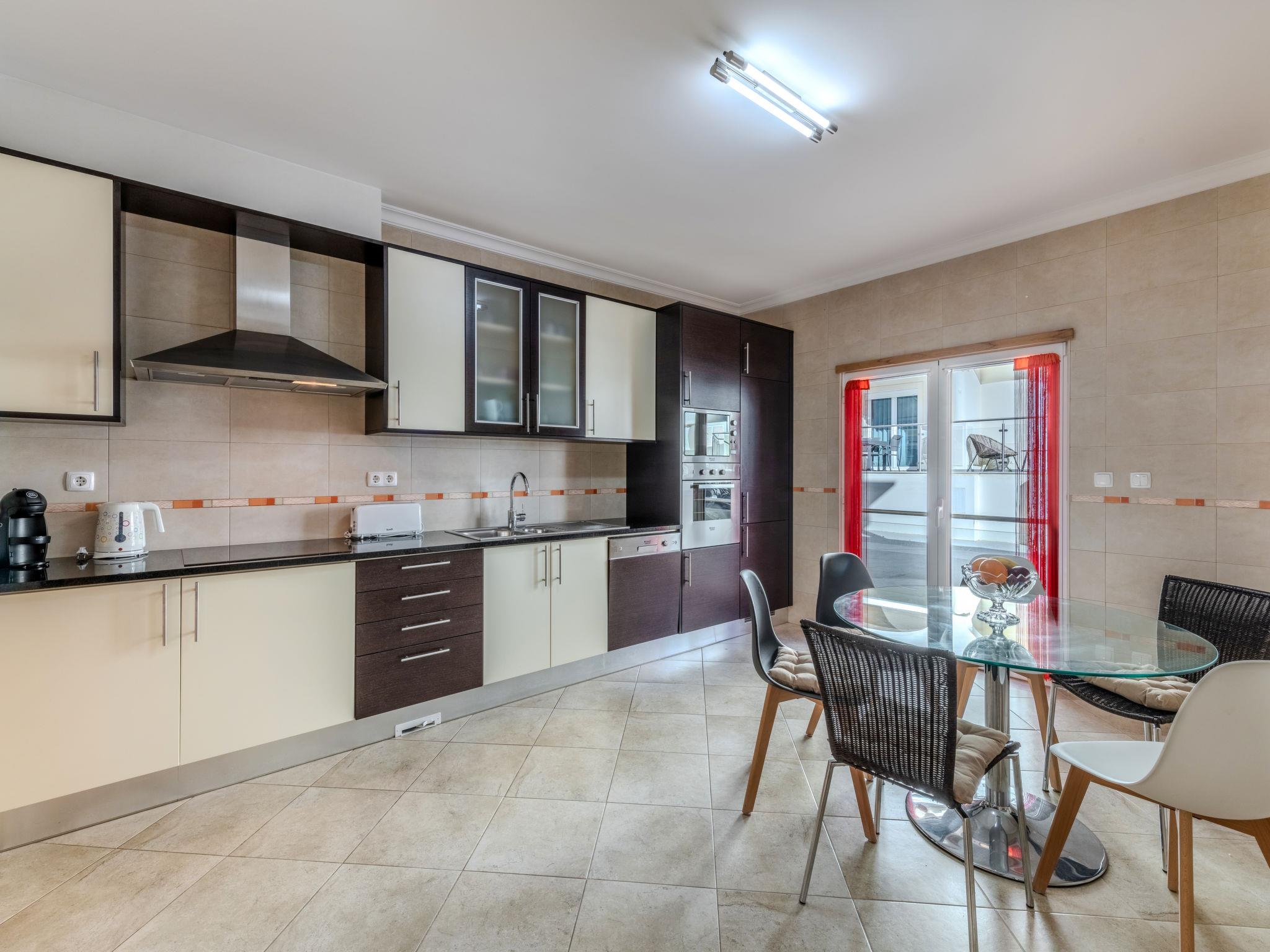 "Encosta dos Salgados", 4-room terraced house 154 m2. Very comfortable and cosy furnishings: kitchen (oven, dishwasher, 4 ceramic glass hob hotplates, toaster, kettle, microwave, freezer, electric coffee machine, Capsules for coffee machine (Dolce Gusto Not Incl)). Sep. WC. On the lower ground floor: living/dining room with cable TV, international TV channels, flat screen, air conditioning and forced-air heating. Exit to the terrace. Upper floor: 1 room with 1 french bed (160 cm, length 200 cm), shower/WC, air conditioning and forced-air heating. Exit to the balcony. 1 room with 2 beds (90 cm, length 200 cm). Exit to the balcony. 1 room with 1 french bed (160 cm, length 200 cm). Bath/WC. Air-conditioning. Terrace furniture, barbecue, deck chairs (6). View of the sea and the resort. Facilities: washing machine, iron, children's high chair, baby cot for up to 2 year olds, hair dryer. Internet (WiFi, free). Parking at the house. Suitable for families. 160136/AL