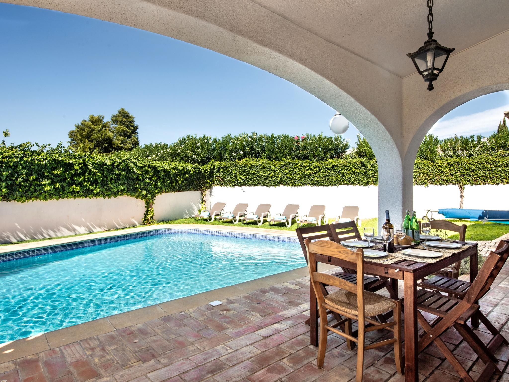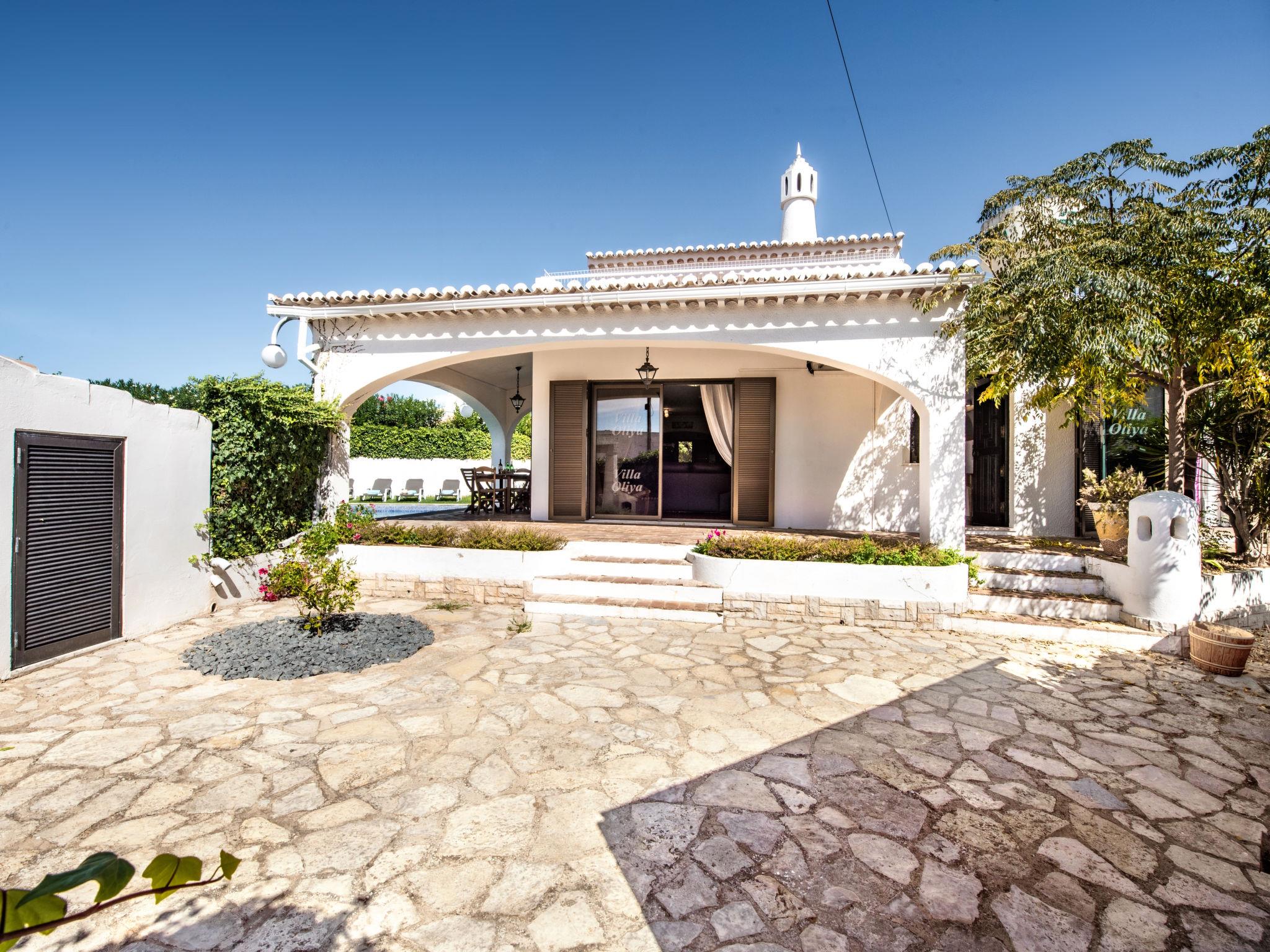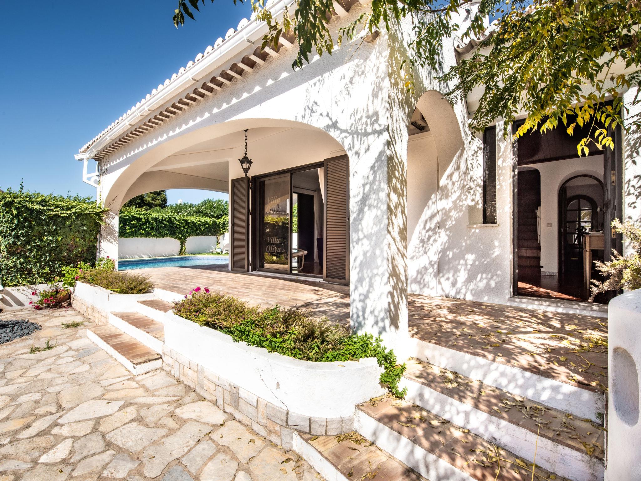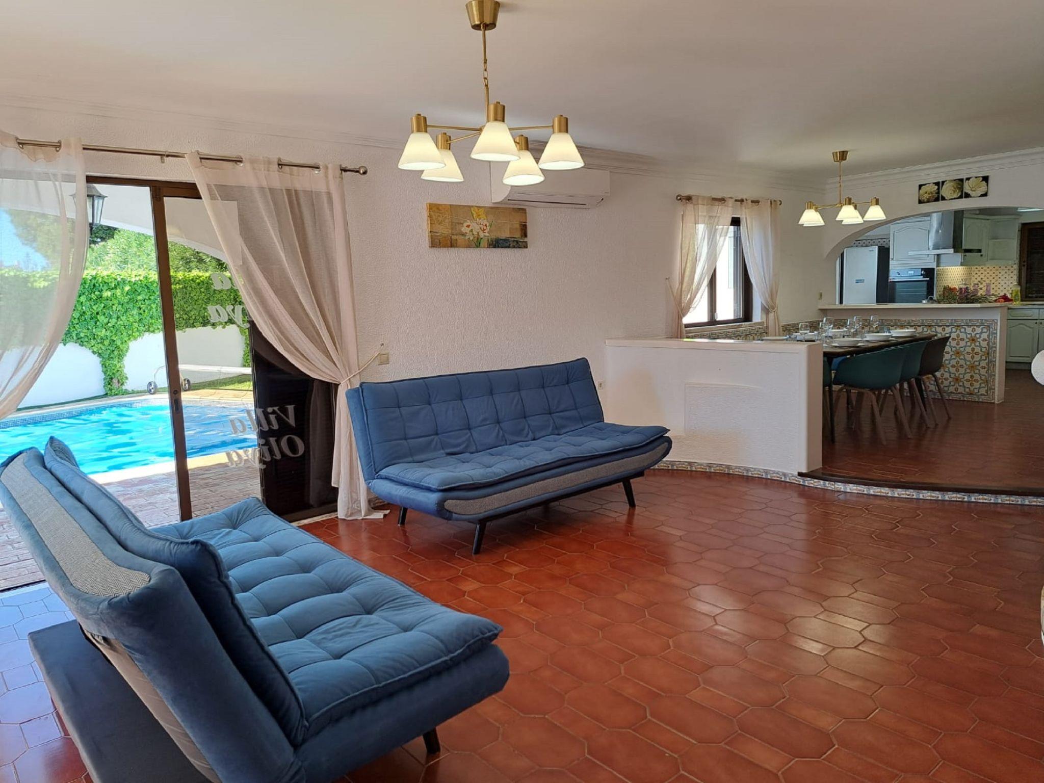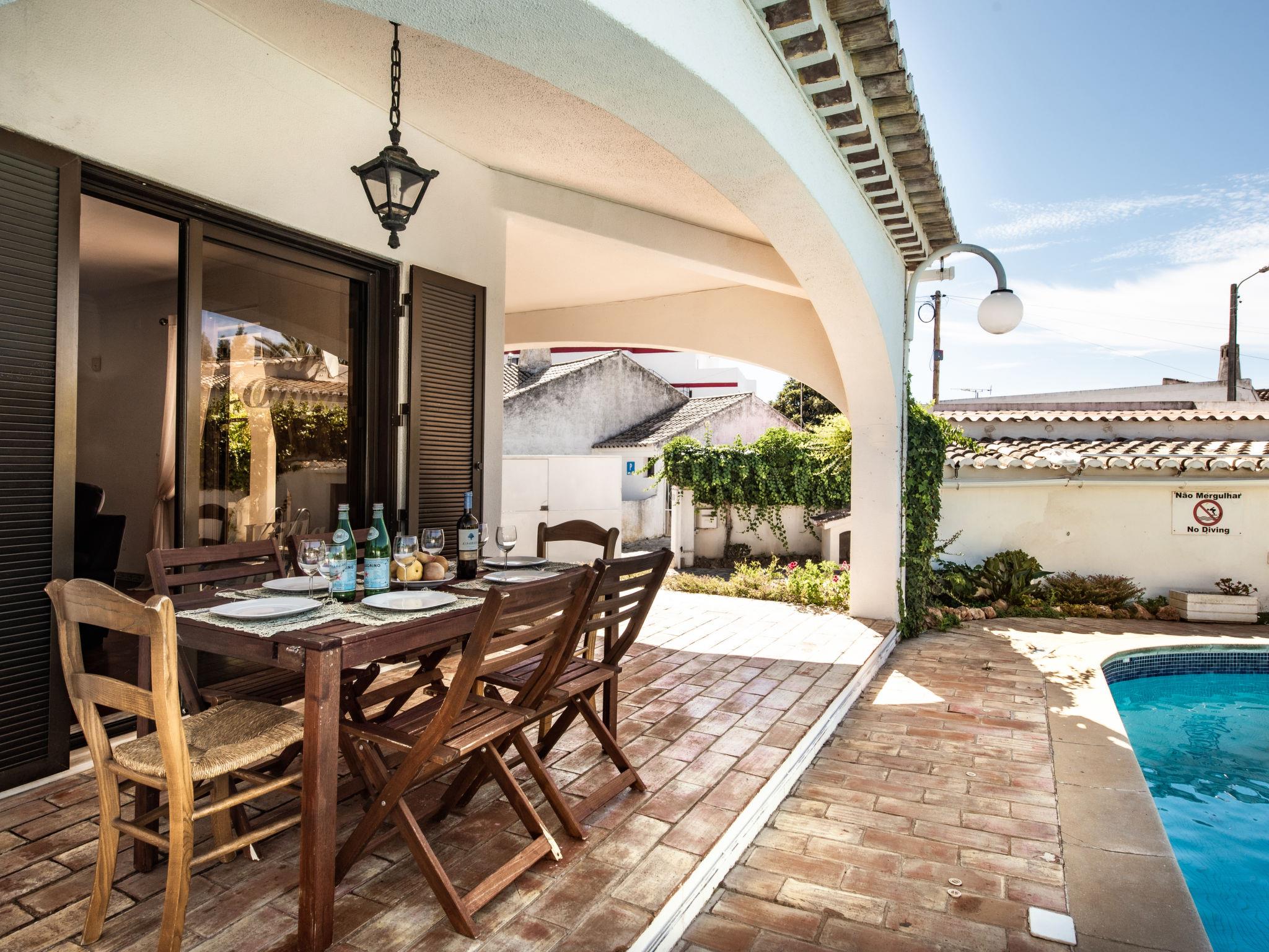 Oura-Albufeira Strip: Very cosy villa "Libertos V4 - VIP Properties". Outside the resort, 5 km from the centre of Albufeira, residential area (villas), 700 m from the sea. Private: garden flowers and trees, swimming pool angular (4 x 9 m, depth 90 - 180 cm, seasonal availability: 01.Jan. - 31.Dec.). In the house: WiFi, air conditioning, washing machine. Shop, grocery 750 m, supermarket 1 km, shopping centre 1.3 km, restaurant 140 m, bar 15 m, bakery 600 m, café 190 m, bus stop 400 m, sandy beach "Praia da Oura" 750 m. Marina 6.3 km, golf course (18 hole) 6.7 km, surf school 2.4 km, tennis 1.6 km, riding stable 10.1 km. Nearby attractions: Zoomarine 12 km, Krazy World 17 km, Aqualand 20 km, Sand City 23 km, Faro Airport 41 km, Aquashow 19 km. Please note: car recommended. Groups of teenagers on request only. Loading and unloading of baggage is possible at the holiday house. Young groups under 25 y.o. will be charged an extra deposit per person on spot. The pool heating service (20ºC-22ºC) must be informed to the KH one week before of your arrival paid on spot. After 7 nights extra 50€ per day for pool heating.