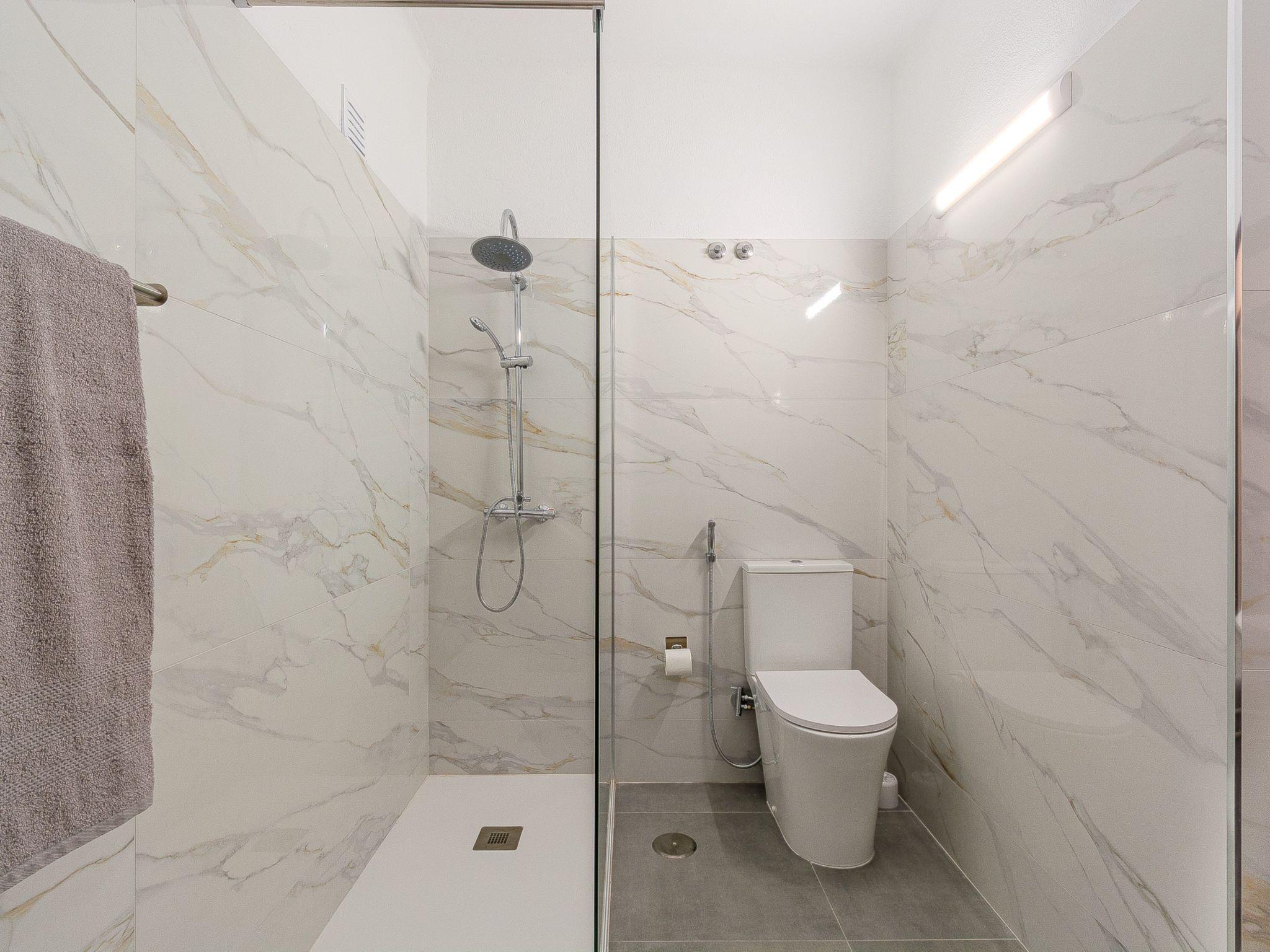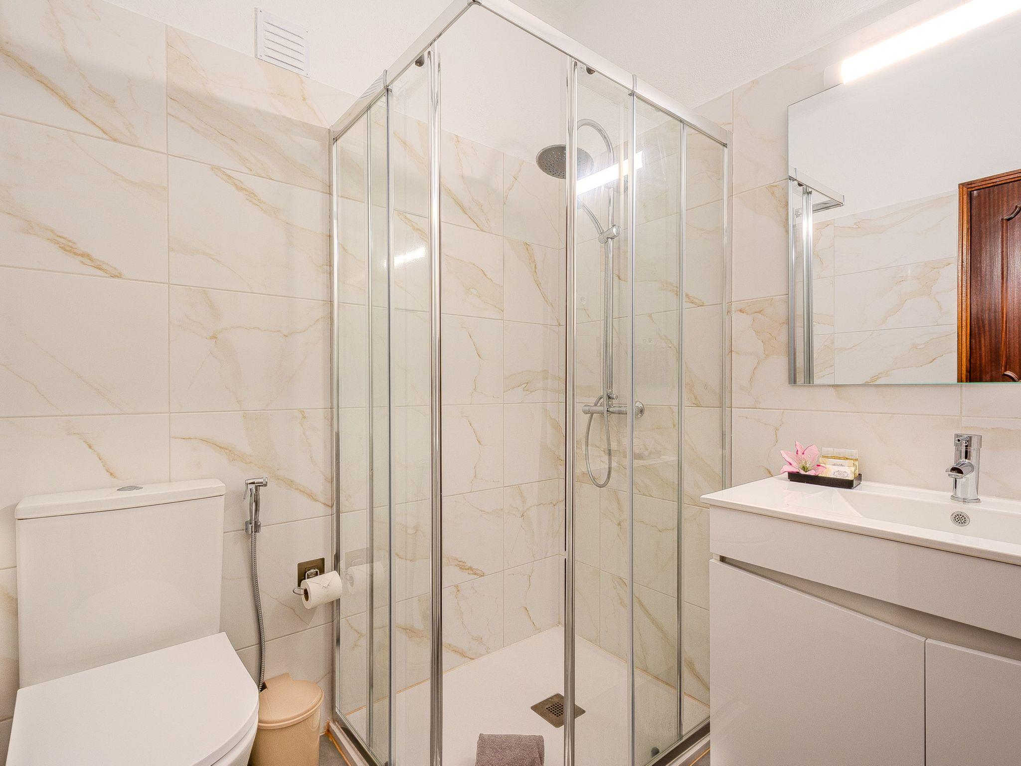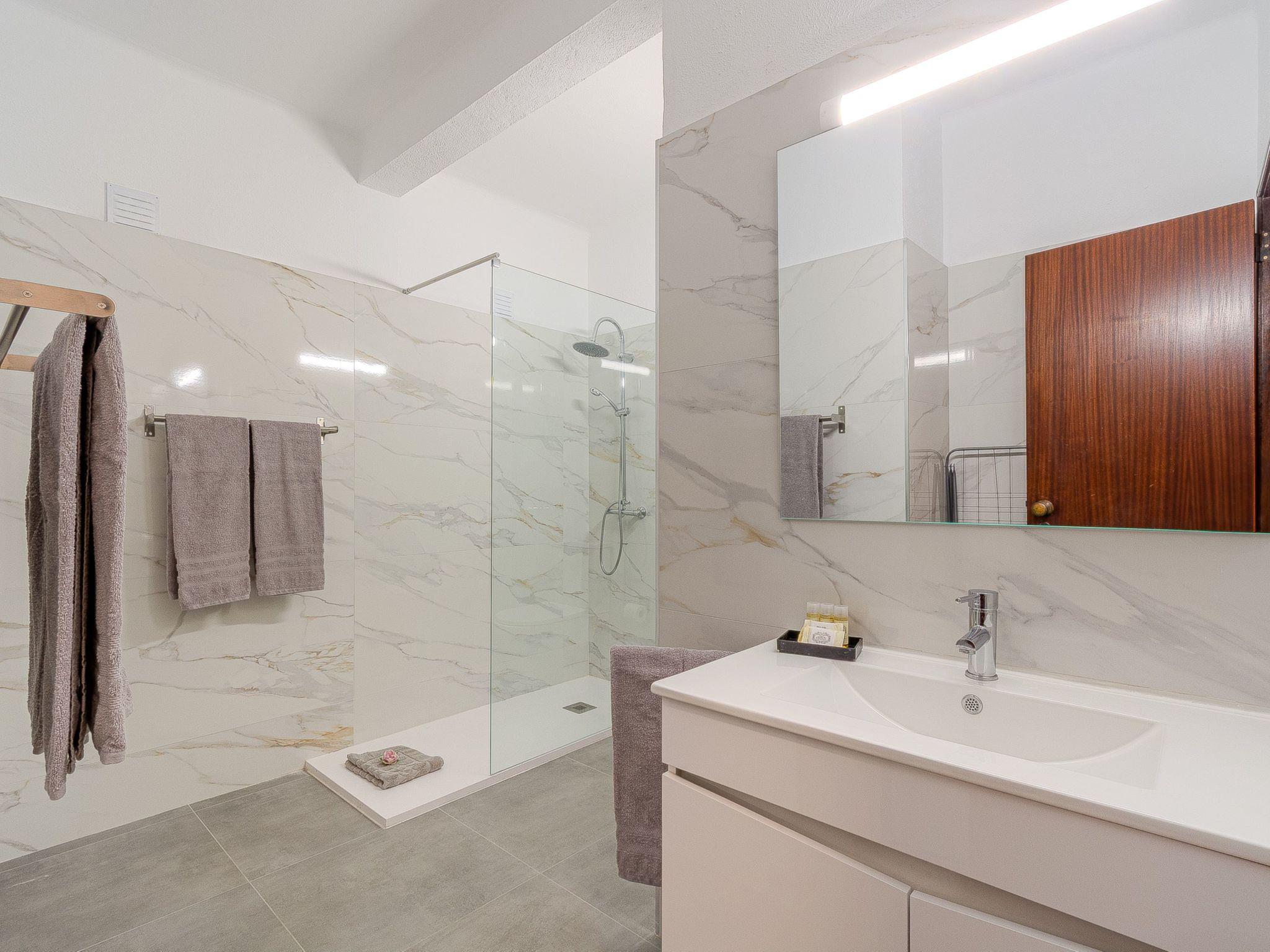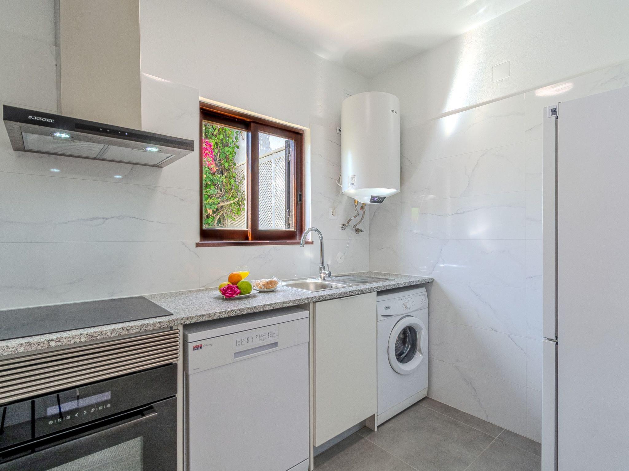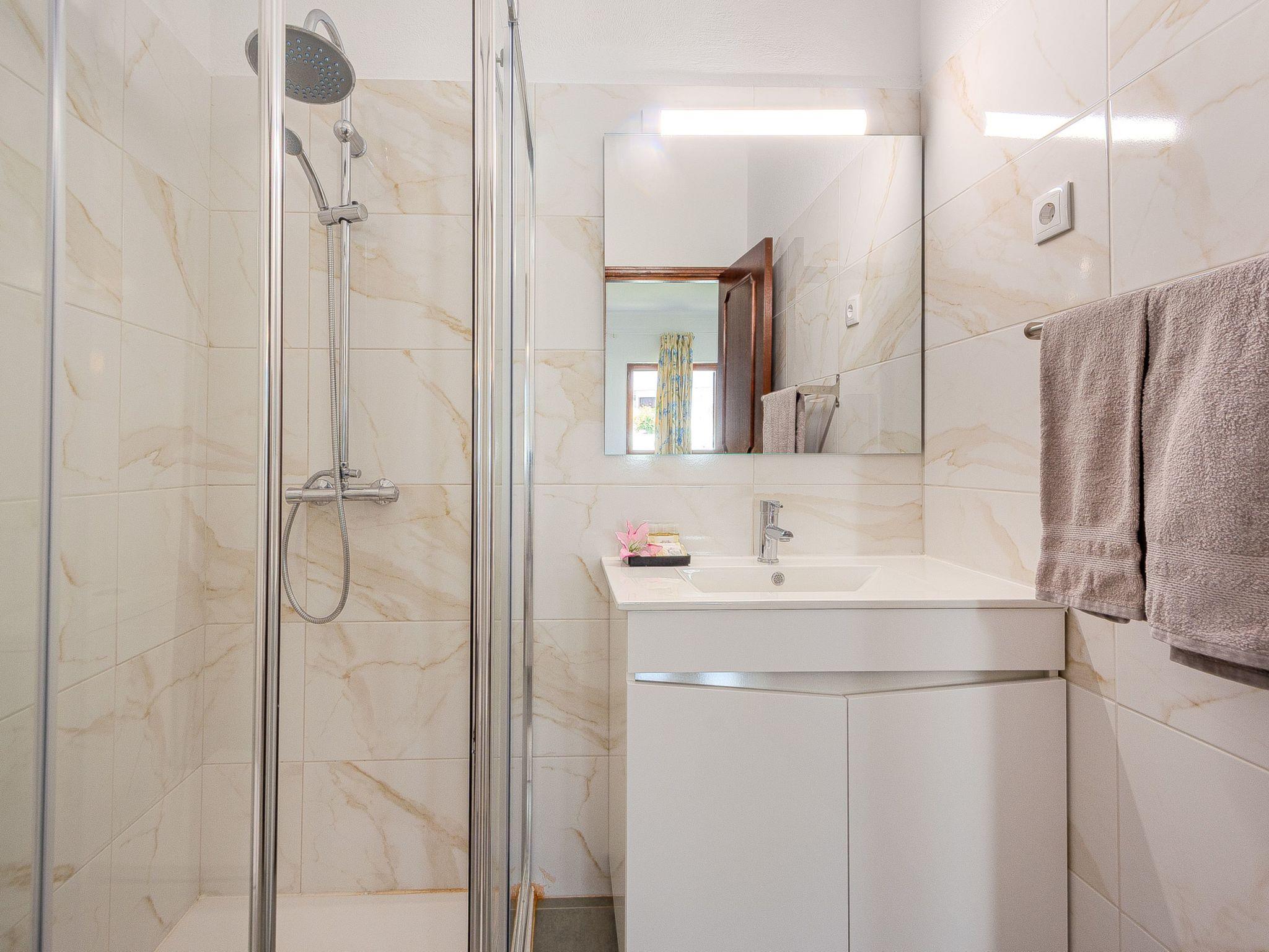 "Amélia - Sunny Way", 4-room villa 100 m2. Very practical and cosy furnishings: living room with dining table, cable TV, flat screen, air conditioning and forced-air heating. 1 room with 2 beds (90 cm, length 200 cm), shower/WC, air conditioning and forced-air heating. 1 room with 2 beds (90 cm, length 200 cm), air conditioning and forced-air heating. 1 room with 2 beds (90 cm, length 200 cm), air conditioning and forced-air heating. Kitchen (4 hot plates, dishwasher, toaster, kettle, microwave, freezer, electric coffee machine). Shower/WC. Small balcony. Balcony furniture. Facilities: washing machine, iron, hair dryer. Internet (WiFi, free). Please note: suitable for families. Fire extinguisher. 47034/AL