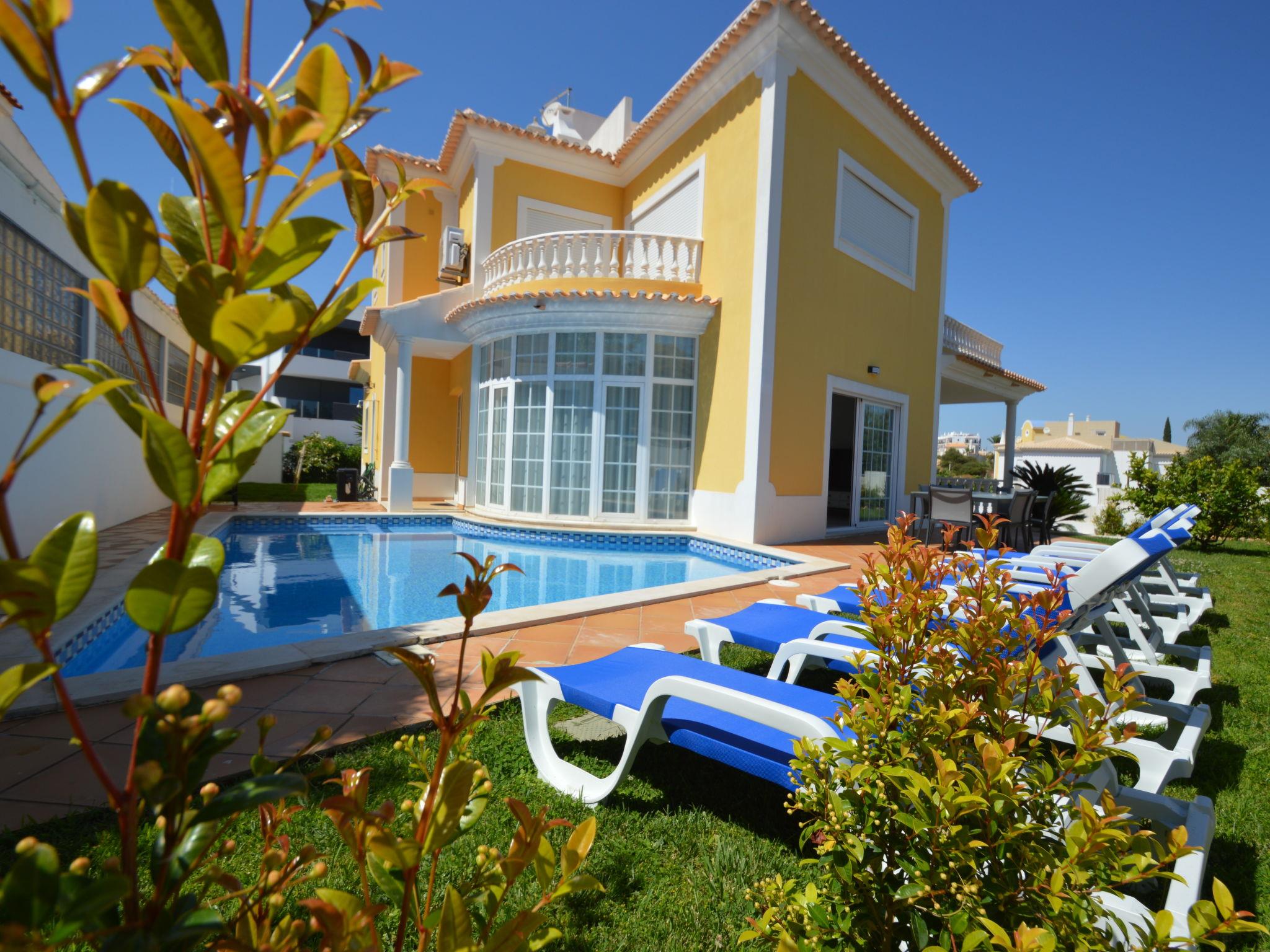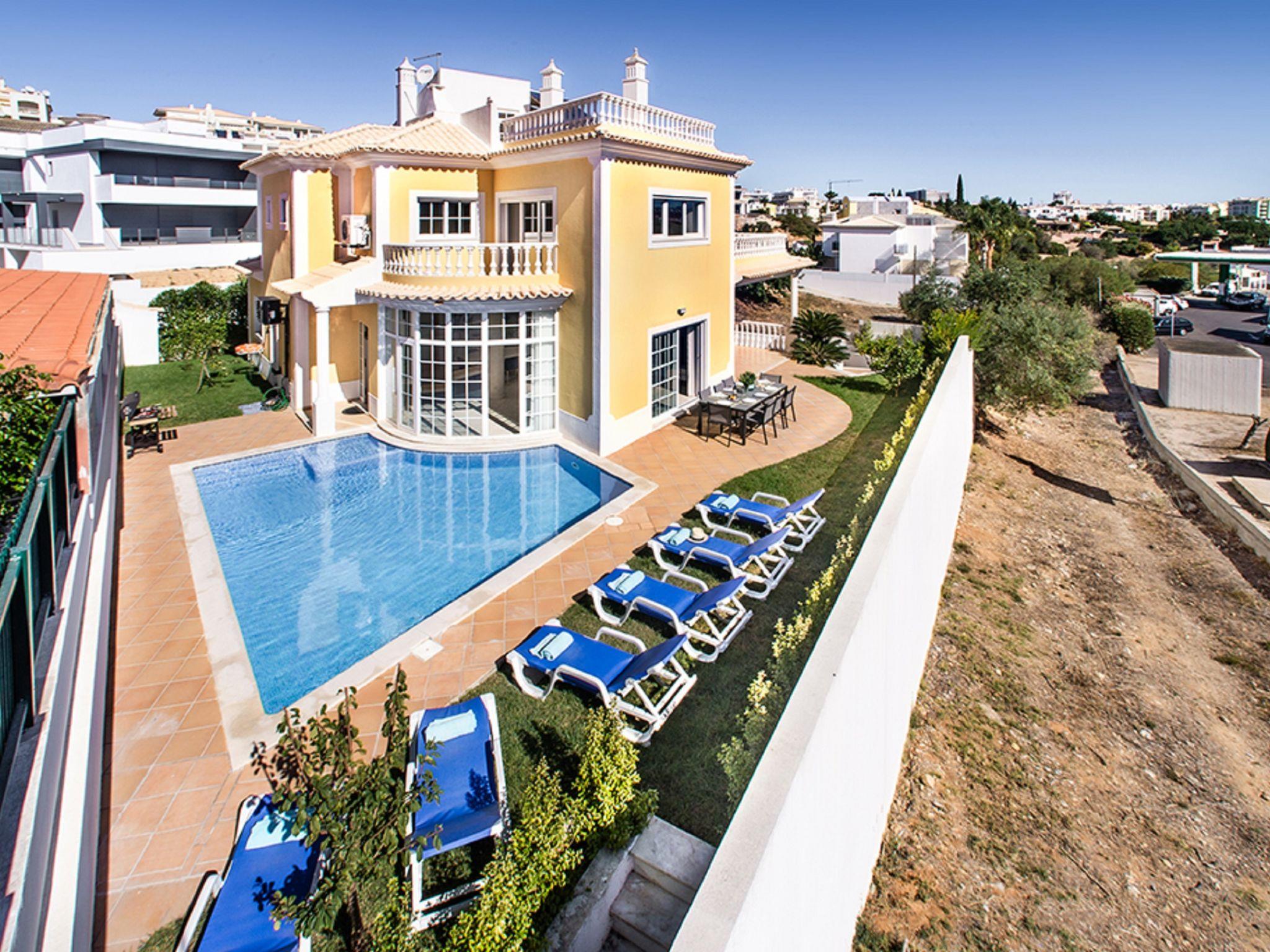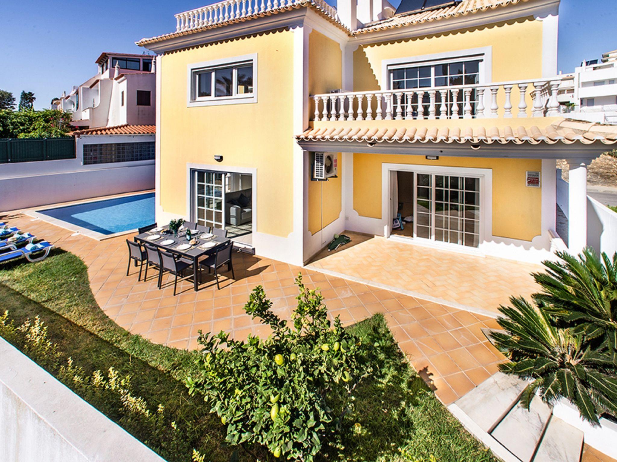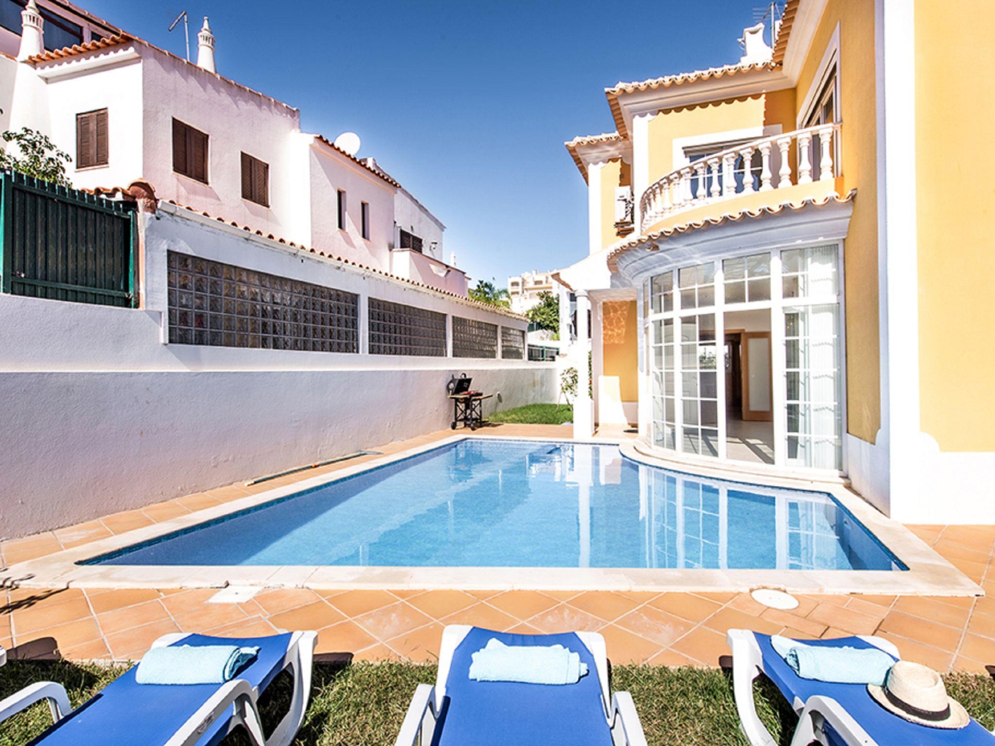 4 km from Albufeira: Cosy, comfortable apartment block "Demi - VIP Properties". Outside the resort, 4 km from the centre, in the district Albufeira, residential area (villas), 2.6 km from the sea. Private: beautiful garden to relax, swimming pool (5 x 10 m, depth 90 - 180 cm, seasonal availability: 02.Feb. - 31.Dec.). Unconventional pool shape. Paddling pool. In the house: WiFi, air conditioning, washing machine, drying room. Parking at the house. Supermarket 3.2 km, shopping centre 5.4 km, restaurant 2.1 km, bar 2.4 km, bakery 1.6 km, café 1.6 km, bus stop 550 m, sandy beach "Praia do Peneco" 2.6 km. Marina 3.4 km, golf course (18 hole) 5.5 km, surf school 4.9 km, tennis 11.4 km, riding stable 6.1 km, children's playground 3.9 km. Nearby attractions: Zoomarine 7.4 km, Aqualand Algarve 11.3 km, Krazy World 13.8 km, Karting Albufeira 3.2 km, AlgarveShopping 8.5 km, Fiesa Sand City 21.3 km. Well-known lakes can easily be reached: Lagoa dos Salgados 9 km. Please note: car recommended, no lift. Groups of teenagers on request only. Loading and unloading of baggage is possible at the holiday house. Young groups under 25 y.o. will be charged an extra deposit per person on spot. The pool heating service (20ºC-22ºC) must be informed to the KH one week before of your arrival paid on spot. After 7 nights extra 50€ per day for pool heating.