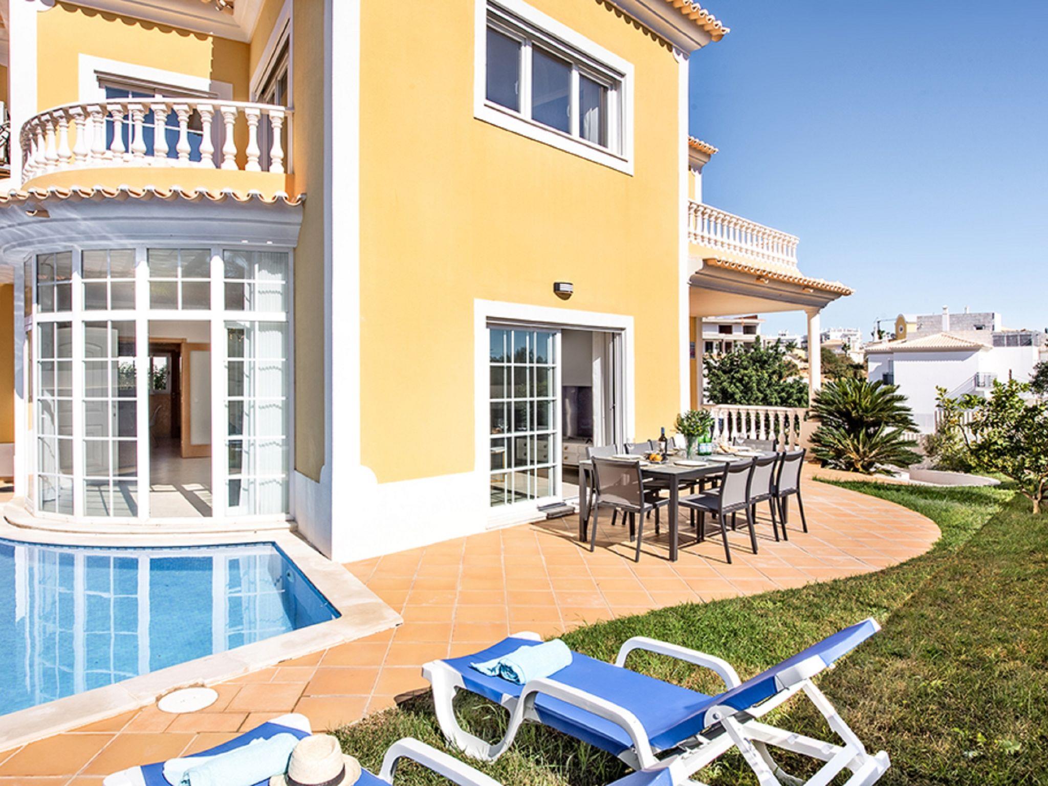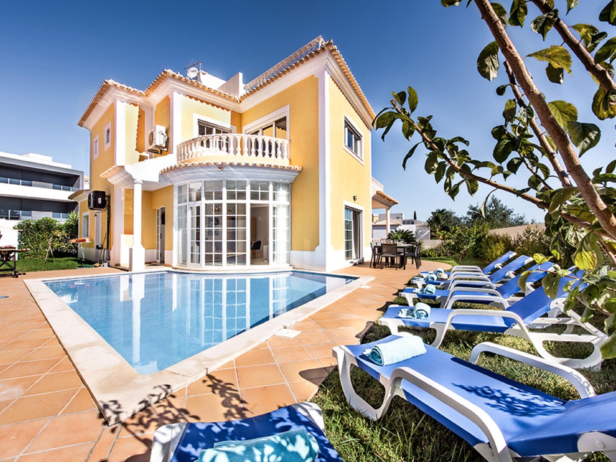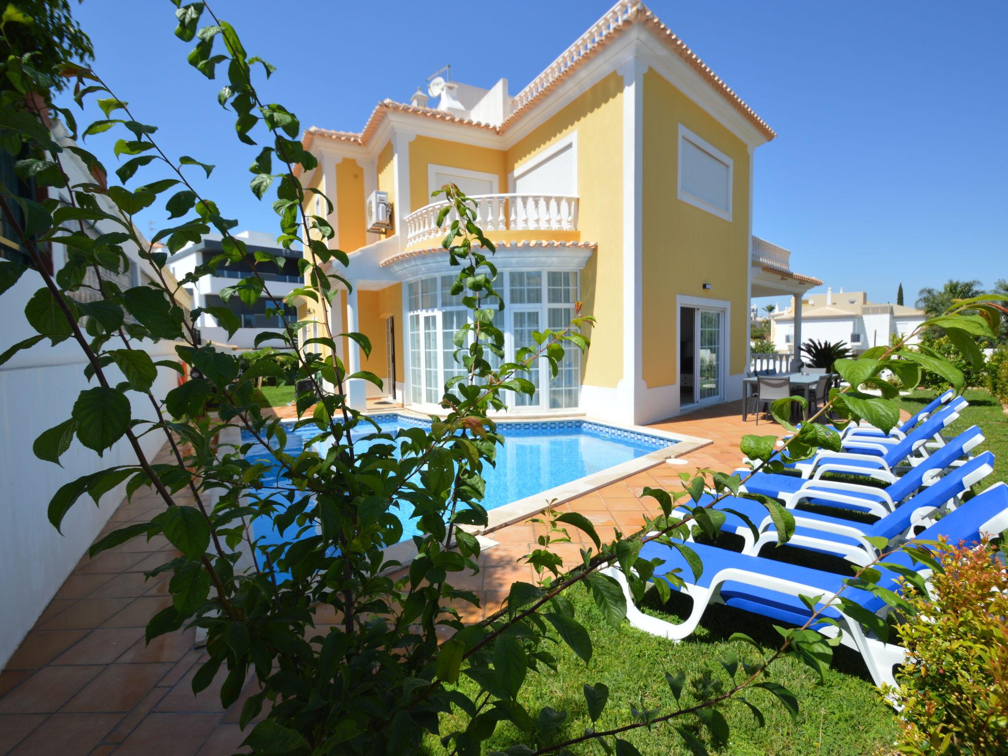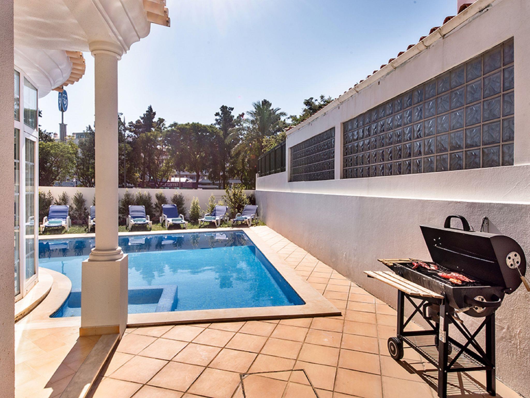 4 km from Albufeira: Cosy, comfortable apartment block "Demi - VIP Properties". Outside the resort, 4 km from the centre, in the district Albufeira, residential area (villas), 2.6 km from the sea. Private: beautiful garden to relax, swimming pool (5 x 10 m, depth 90 - 180 cm, seasonal availability: 02.Feb. - 31.Dec.). Unconventional pool shape. Paddling pool. In the house: WiFi, air conditioning, washing machine, drying room. Parking at the house. Supermarket 3.2 km, shopping centre 5.4 km, restaurant 2.1 km, bar 2.4 km, bakery 1.6 km, café 1.6 km, bus stop 550 m, sandy beach "Praia do Peneco" 2.6 km. Marina 3.4 km, golf course (18 hole) 5.5 km, surf school 4.9 km, tennis 11.4 km, riding stable 6.1 km, children's playground 3.9 km. Nearby attractions: Zoomarine 7.4 km, Aqualand Algarve 11.3 km, Krazy World 13.8 km, Karting Albufeira 3.2 km, AlgarveShopping 8.5 km, Fiesa Sand City 21.3 km. Well-known lakes can easily be reached: Lagoa dos Salgados 9 km. Please note: car recommended, no lift. Groups of teenagers on request only. Loading and unloading of baggage is possible at the holiday house. Young groups under 25 y.o. will be charged an extra deposit per person on spot. The pool heating service (20ºC-22ºC) must be informed to the KH one week before of your arrival paid on spot. After 7 nights extra 50€ per day for pool heating.