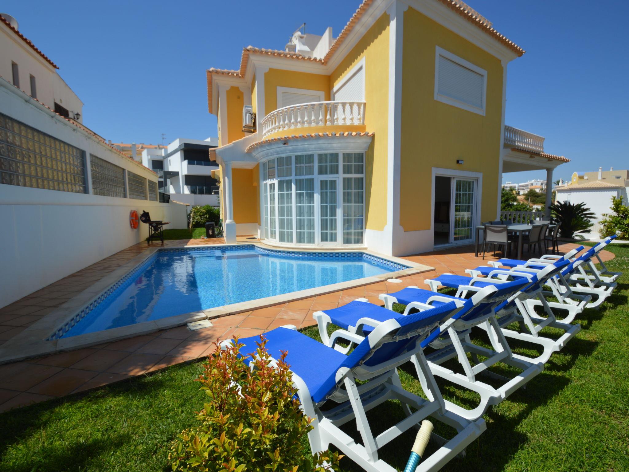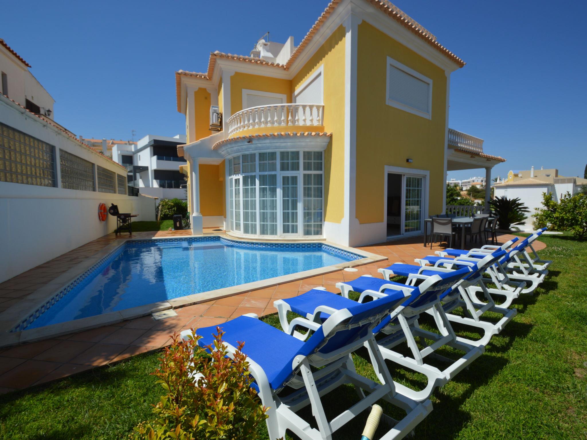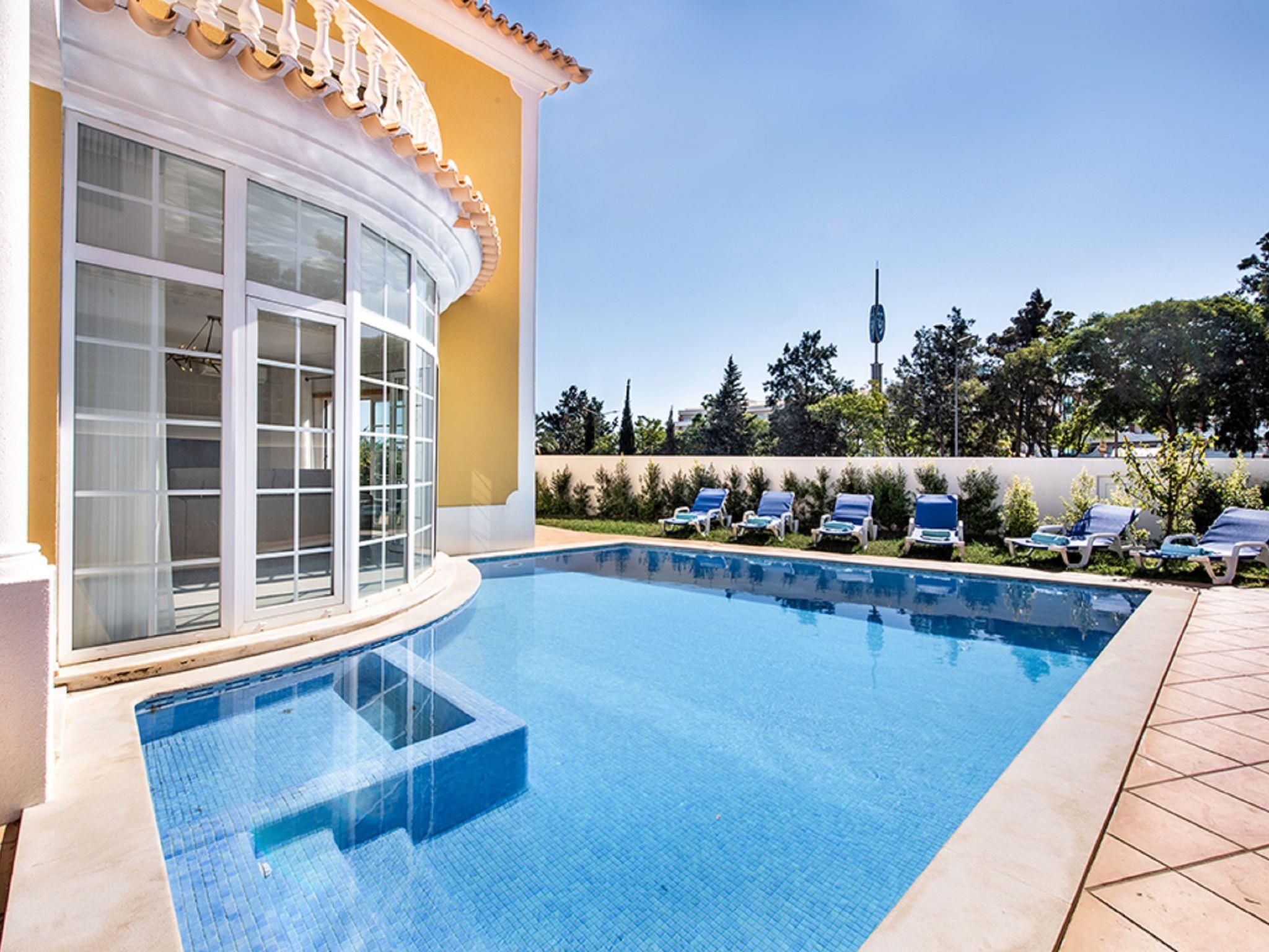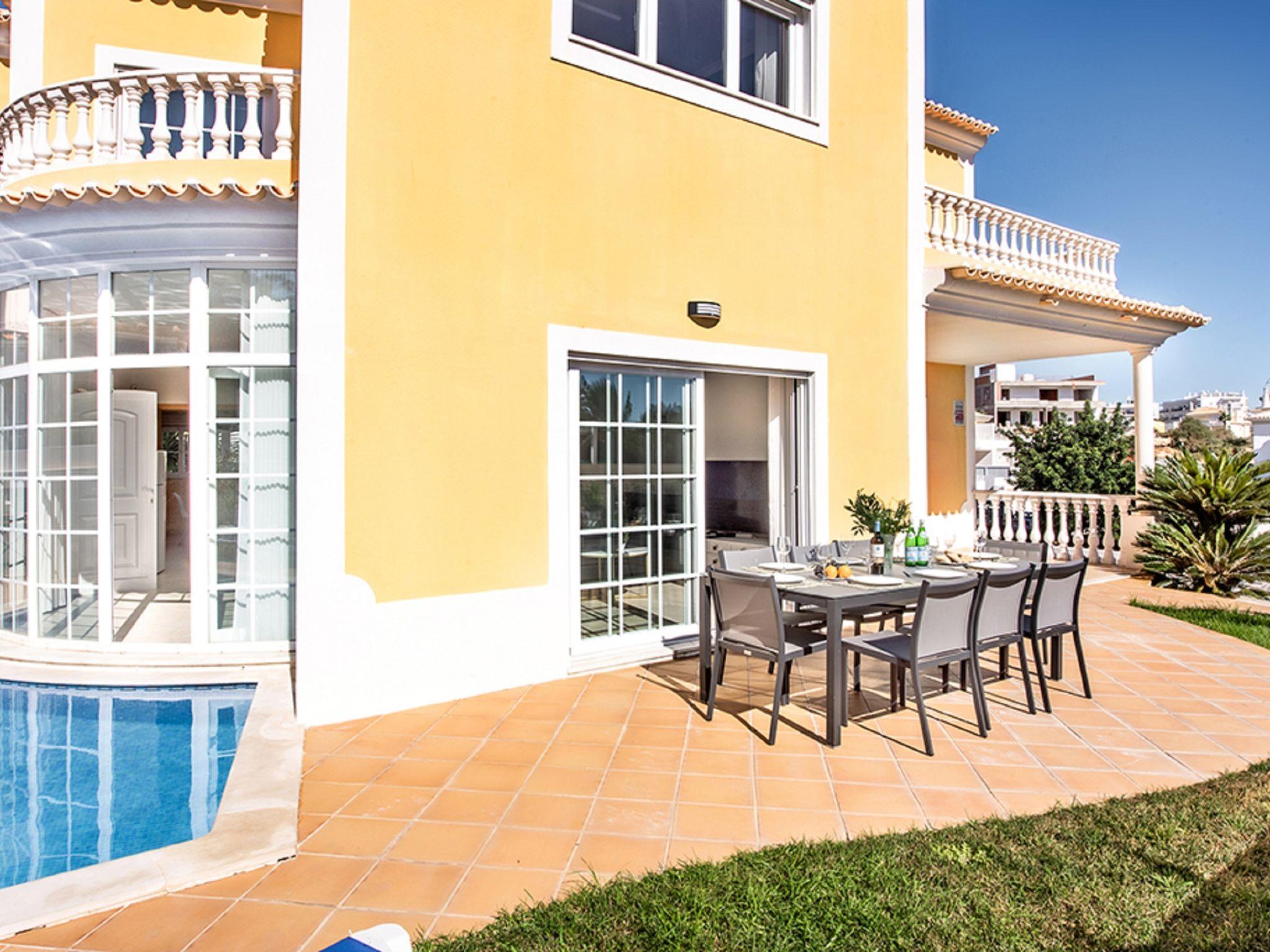 4 km from Albufeira: Cosy, comfortable apartment block "Demi - VIP Properties". Outside the resort, 4 km from the centre, in the district Albufeira, residential area (villas), 2.6 km from the sea. Private: beautiful garden to relax, swimming pool (5 x 10 m, depth 90 - 180 cm, seasonal availability: 02.Feb. - 31.Dec.). Unconventional pool shape. Paddling pool. In the house: WiFi, air conditioning, washing machine, drying room. Parking at the house. Supermarket 3.2 km, shopping centre 5.4 km, restaurant 2.1 km, bar 2.4 km, bakery 1.6 km, café 1.6 km, bus stop 550 m, sandy beach "Praia do Peneco" 2.6 km. Marina 3.4 km, golf course (18 hole) 5.5 km, surf school 4.9 km, tennis 11.4 km, riding stable 6.1 km, children's playground 3.9 km. Nearby attractions: Zoomarine 7.4 km, Aqualand Algarve 11.3 km, Krazy World 13.8 km, Karting Albufeira 3.2 km, AlgarveShopping 8.5 km, Fiesa Sand City 21.3 km. Well-known lakes can easily be reached: Lagoa dos Salgados 9 km. Please note: car recommended, no lift. Groups of teenagers on request only. Loading and unloading of baggage is possible at the holiday house. Young groups under 25 y.o. will be charged an extra deposit per person on spot. The pool heating service (20ºC-22ºC) must be informed to the KH one week before of your arrival paid on spot. After 7 nights extra 50€ per day for pool heating.