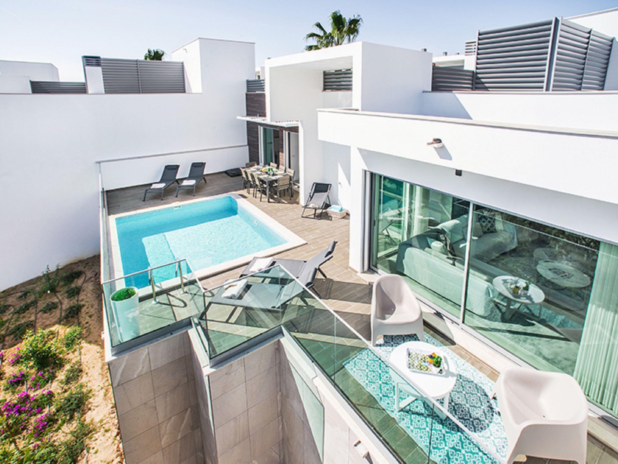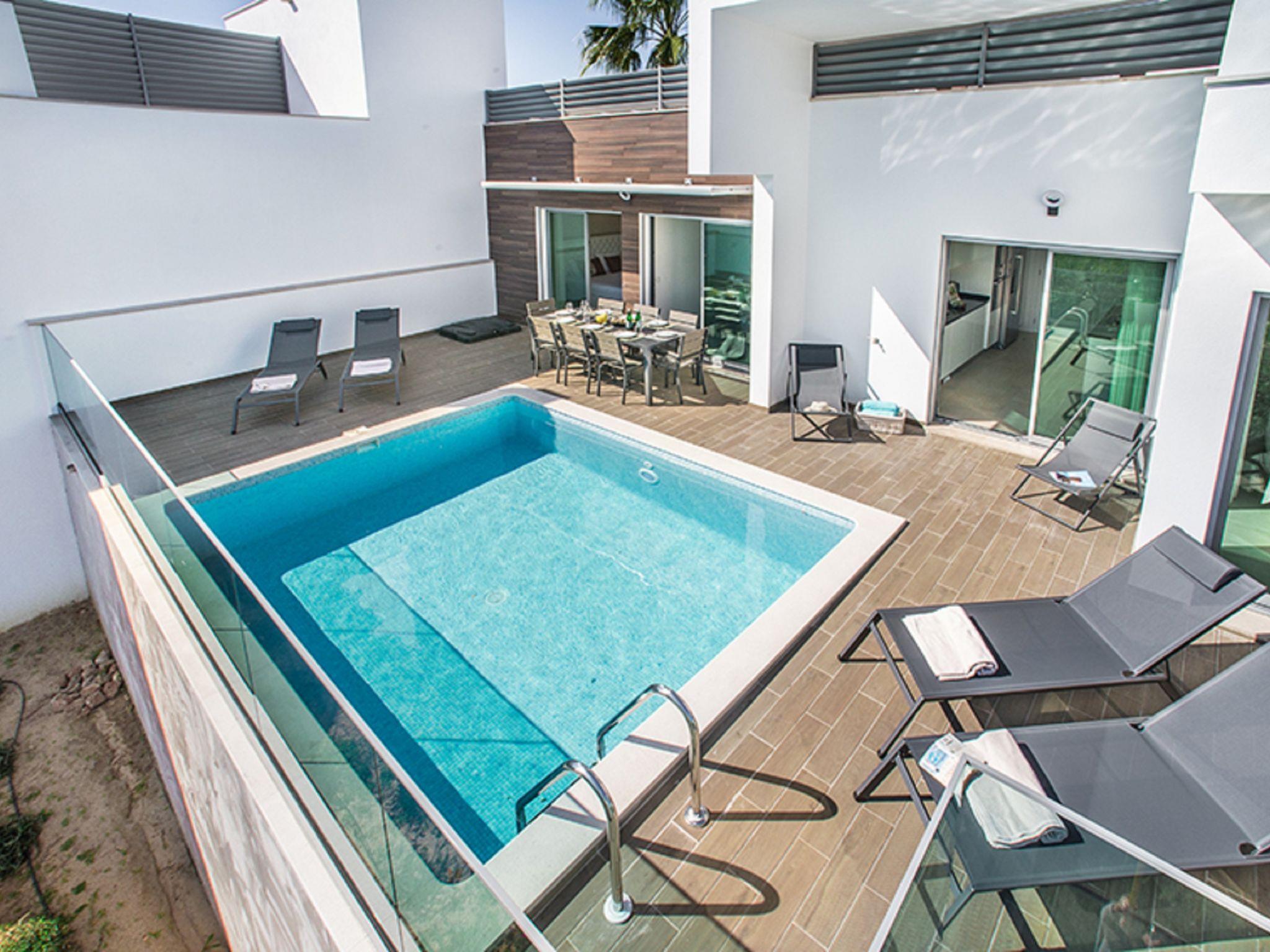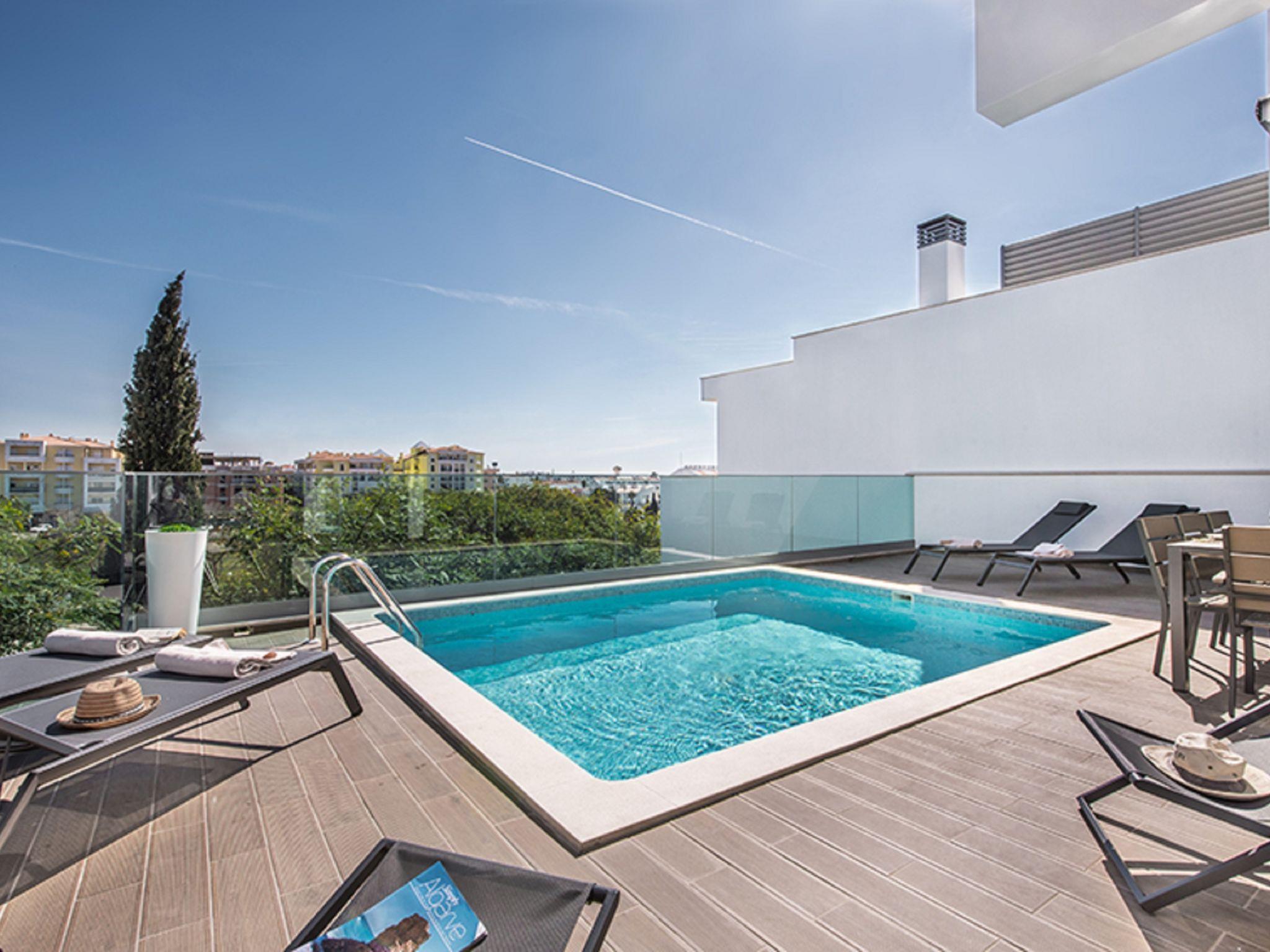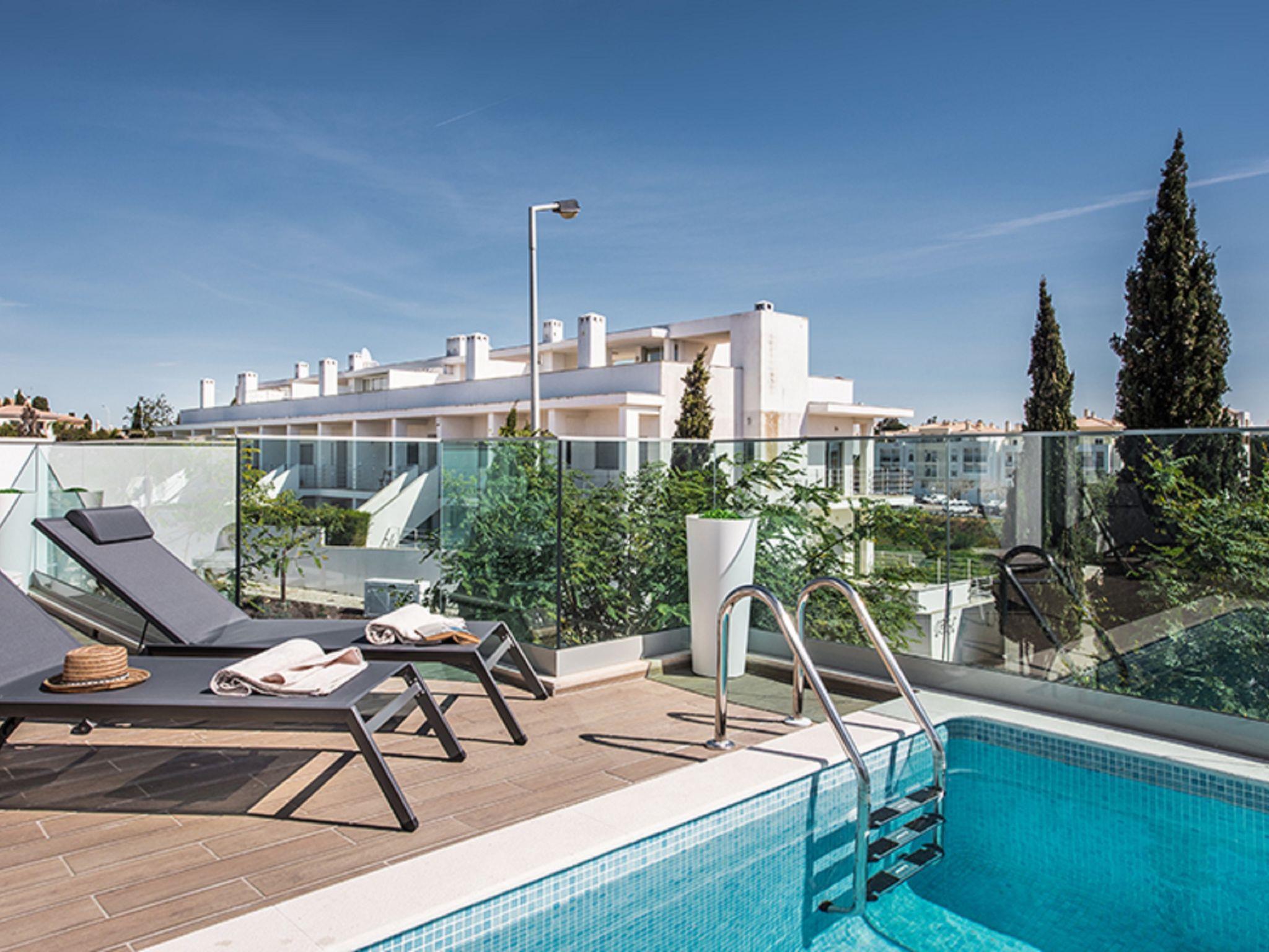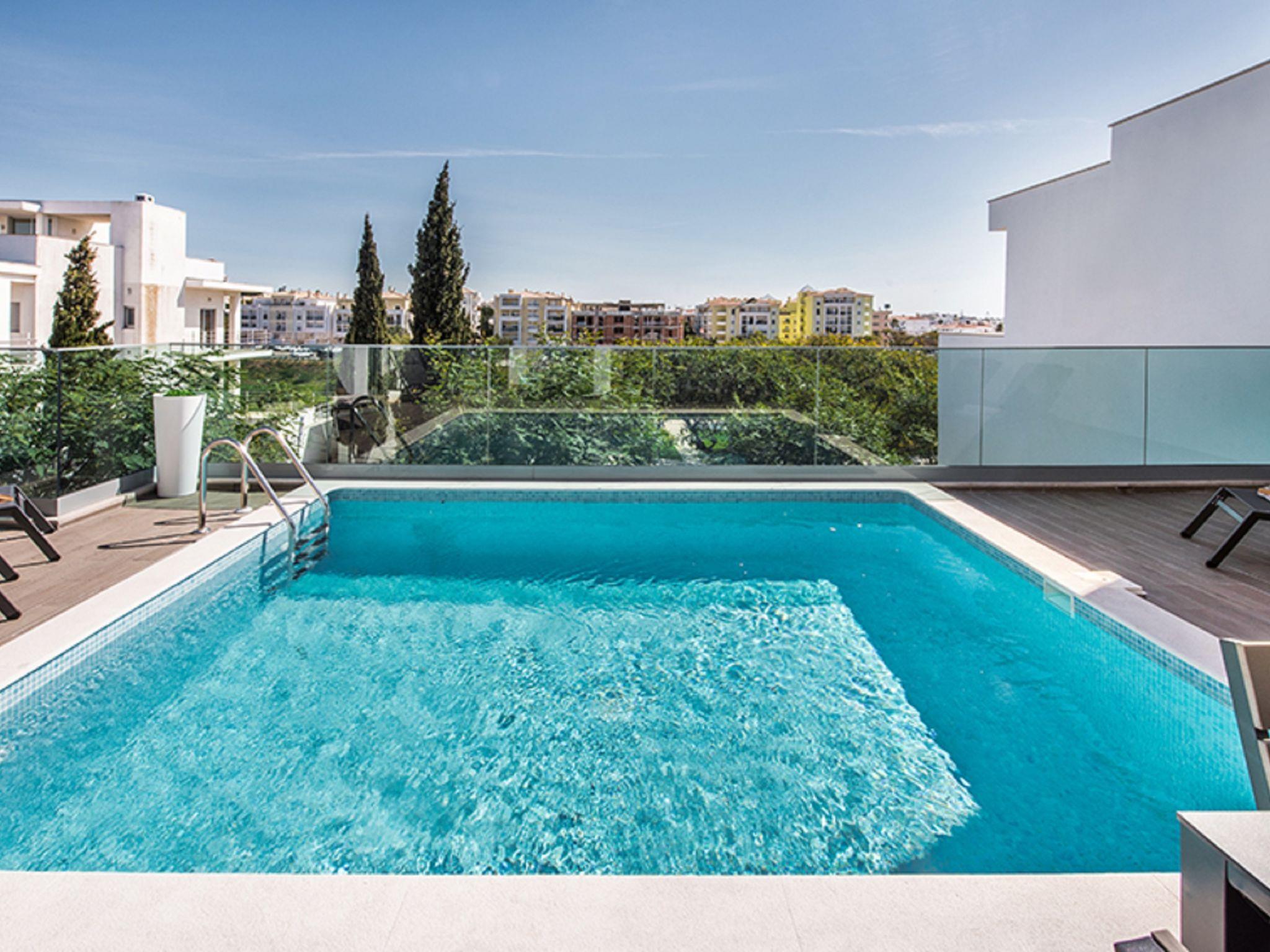 Very modern, comfortable villa. In the resort 2.1 km from the centre of Albufeira, 1.7 km from the sea. Private: swimming pool angular, heated (4 x 6 m, depth 110 - 110 cm, seasonal availability: 01.Jan. - 31.Dec.). In the house: WiFi, air conditioning, drying room. Parking at the house. Grocery, supermarket 250 m, shopping centre 1.1 km, restaurant 350 m, bar 800 m, bakery, café 250 m, bicycle rental 2.9 km, bus stop 220 m, railway station 5.5 km, sandy beach "Praia da Oura" 1.7 km, diving center 5.5 km. Marina 5.9 km, golf course (18 hole) 10.5 km, surf school 10.1 km, minigolf 1 km, riding stable 10.3 km, children's playground 1.2 km. Nearby attractions: Adventure Mini Golf Park 1 km, Zebra Safari Tours 2.9 km, Algarve Shopping 9.4 km, Zoomarine 10.6 km, Krazy World 15.3 km, Faro Airport 35.3 km. Well-known lakes can easily be reached: Lagoa dos Salgados 13.4 km. Please note: Loading and unloading of baggage is possible at the holiday house. All groups of young people under 25 years old must pay an extra deposit in cash on arrival.Pool maintenance is carried out any day of the week without prior notice. The person in charge has access to the outside area.