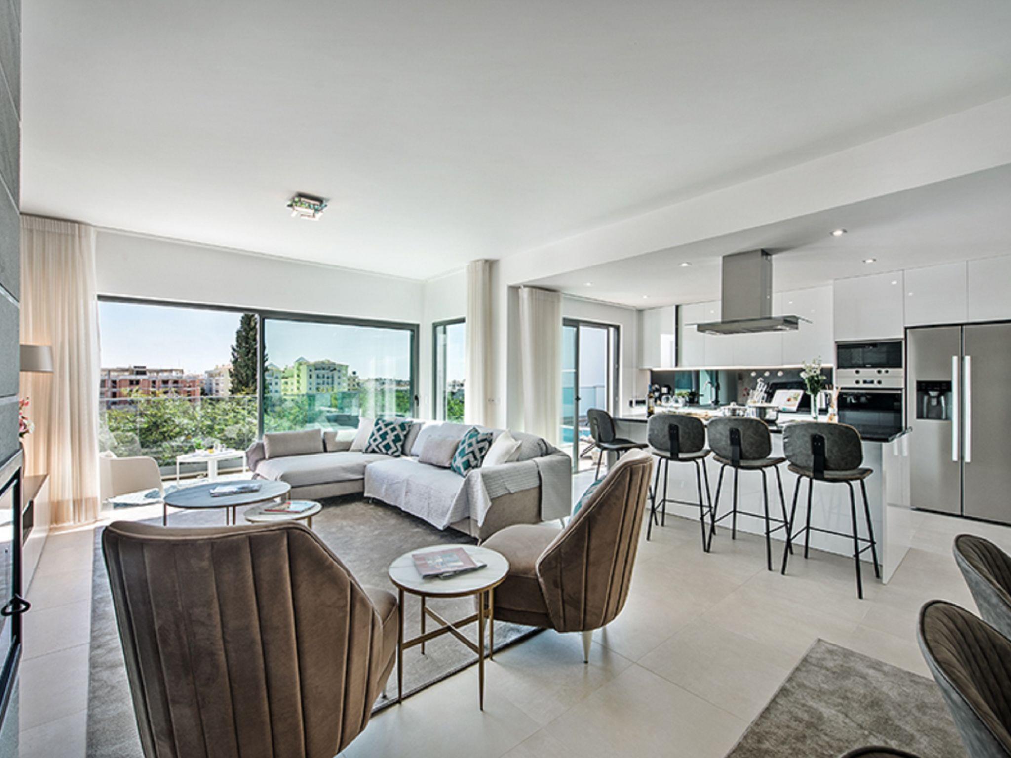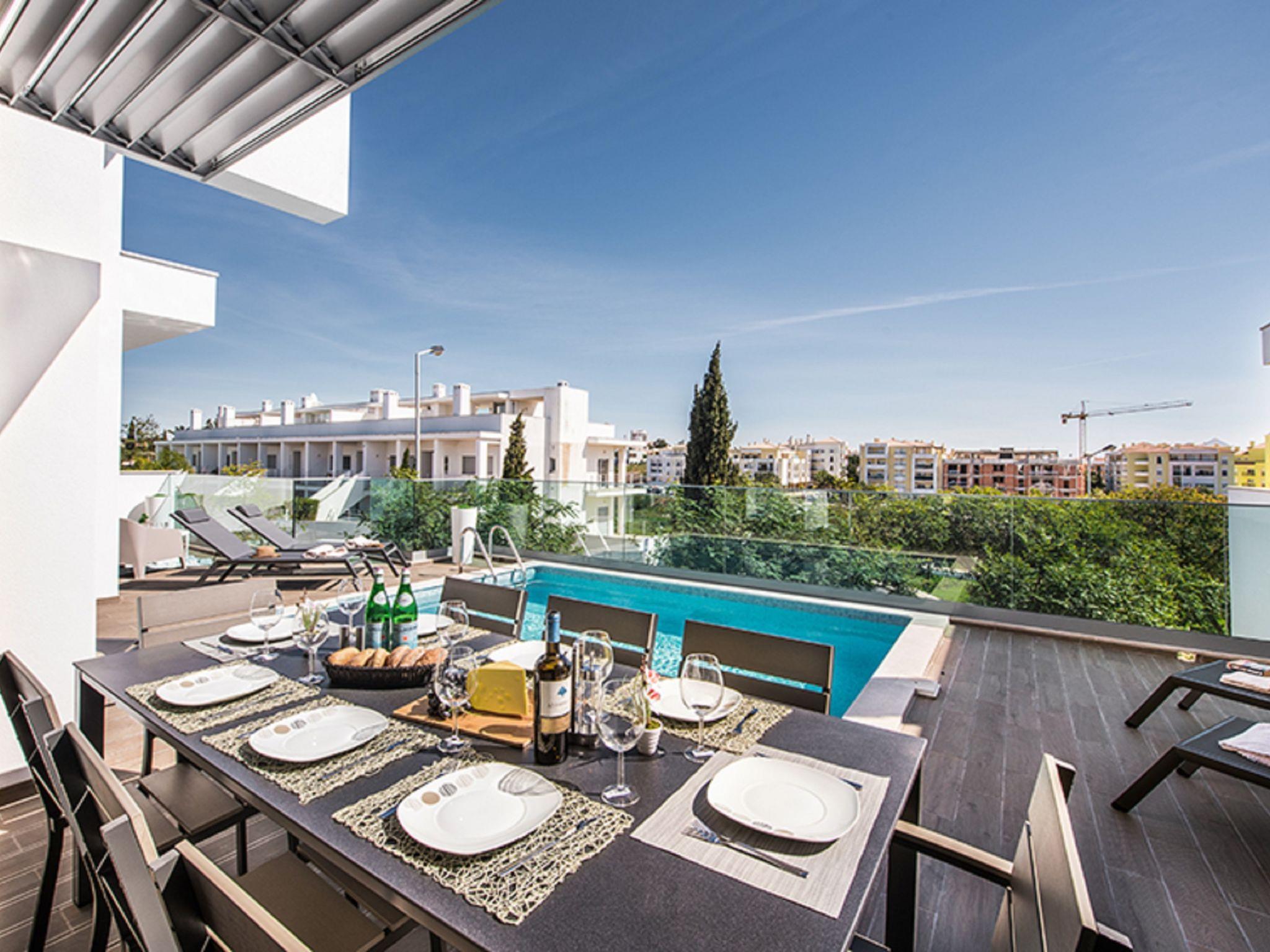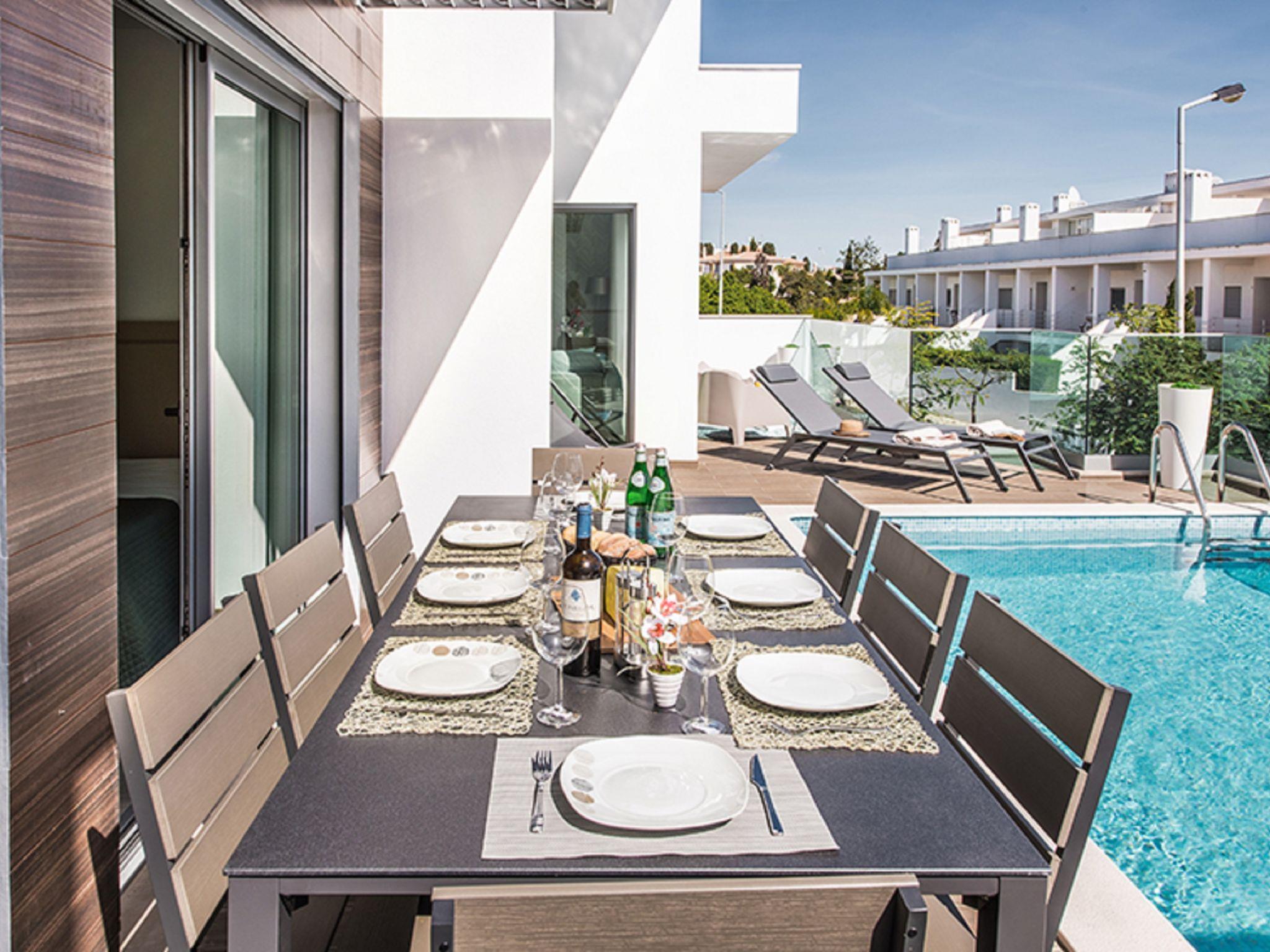 "Sónia Lote 69 - VIP Properties", 4-room house 245 m2. Spacious and bright, very comfortable and modern furnishings: living/dining room with cable TV, international TV channels, flat screen, air conditioning and forced-air heating. Exit to the terrace, to the swimming pool. 1 room with 1 french bed (160 cm, length 200 cm), air conditioning and forced-air heating. 1 room with 1 french bed (160 cm, length 200 cm), bath/WC, air conditioning and forced-air heating. Exit to the terrace, to the swimming pool. 1 room with 2 beds (90 cm, length 200 cm), air conditioning and forced-air heating. Exit to the terrace, to the swimming pool. Open kitchen (oven, dishwasher, 4 ceramic glass hob hotplates, toaster, kettle, microwave, freezer, cooking island). Exit to the terrace, to the swimming pool. Shower/WC. Terrace furniture, balcony furniture, barbecue, deck chairs (4). Panoramic view of the sea and the resort. Facilities: washing machine, children's high chair, baby cot for up to 2 year olds (extra). Internet (WiFi, free). Parking at the house. Suitable for families. Heated pool from October to April. 111329/AL