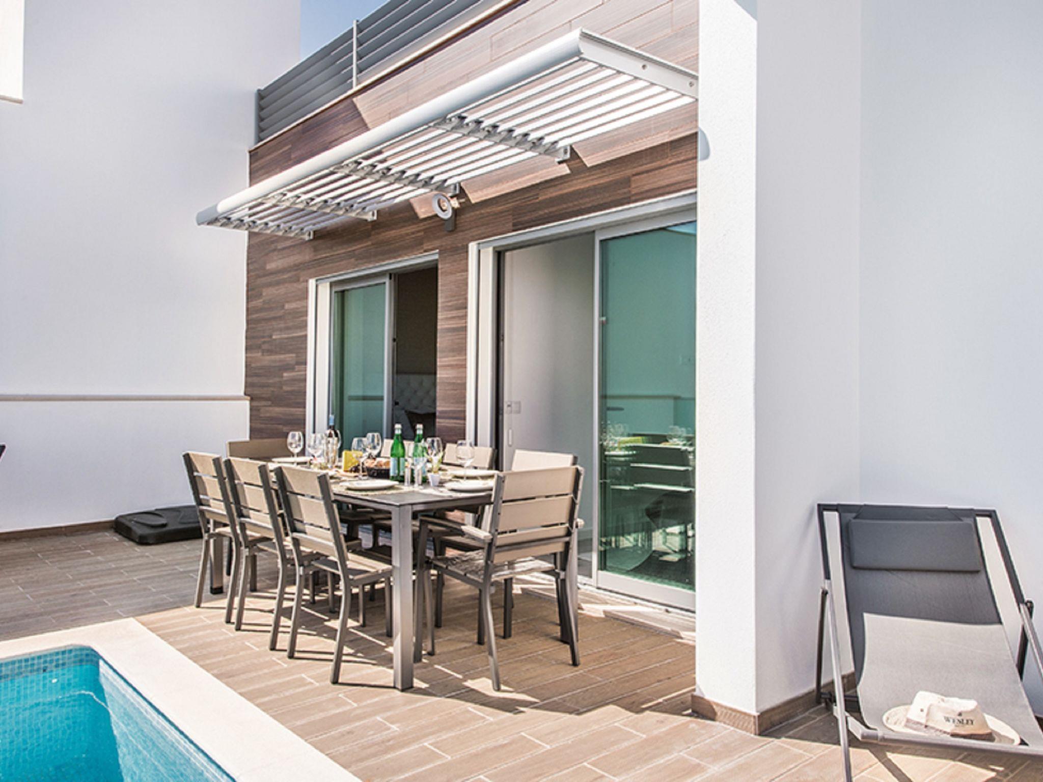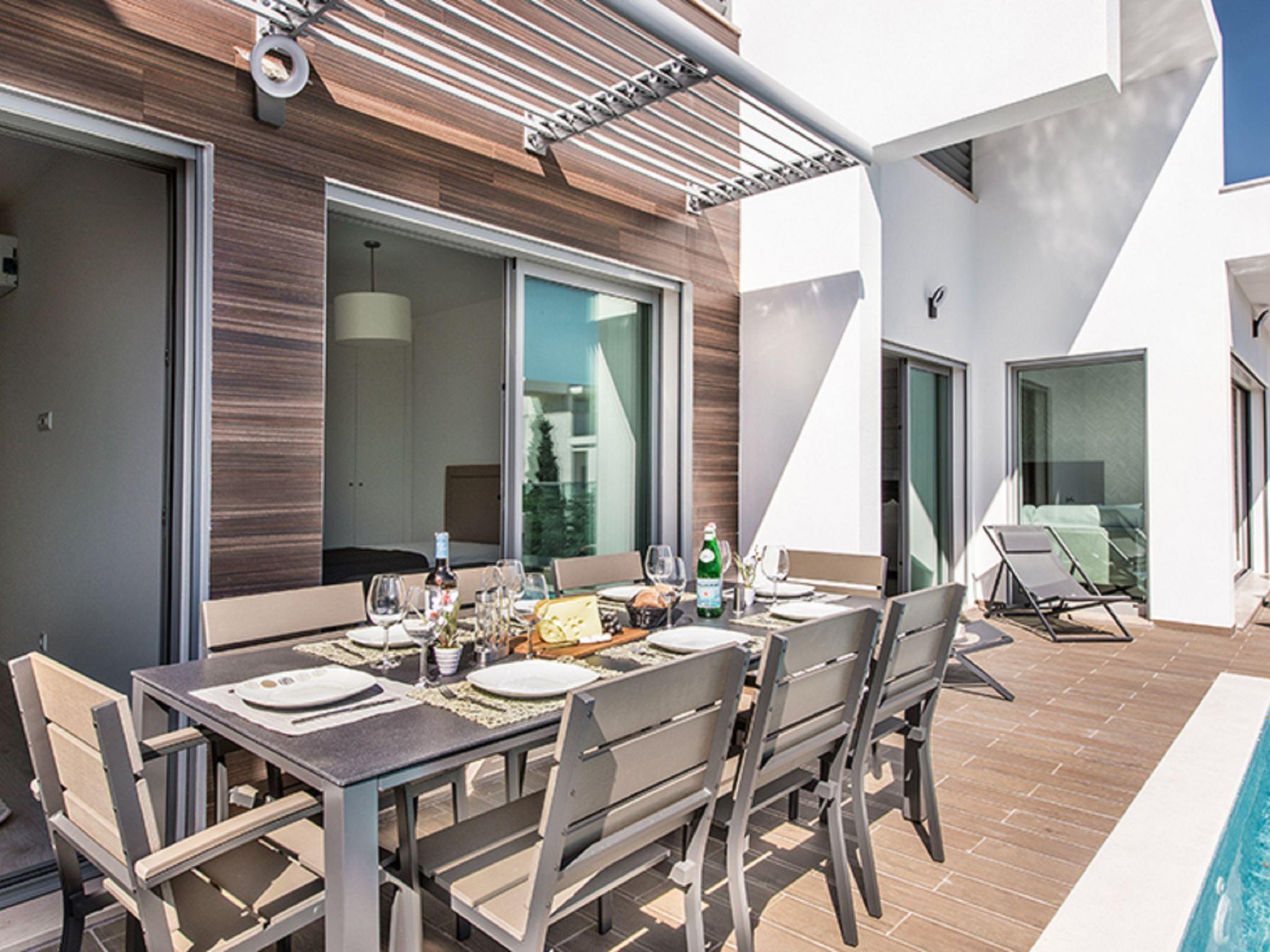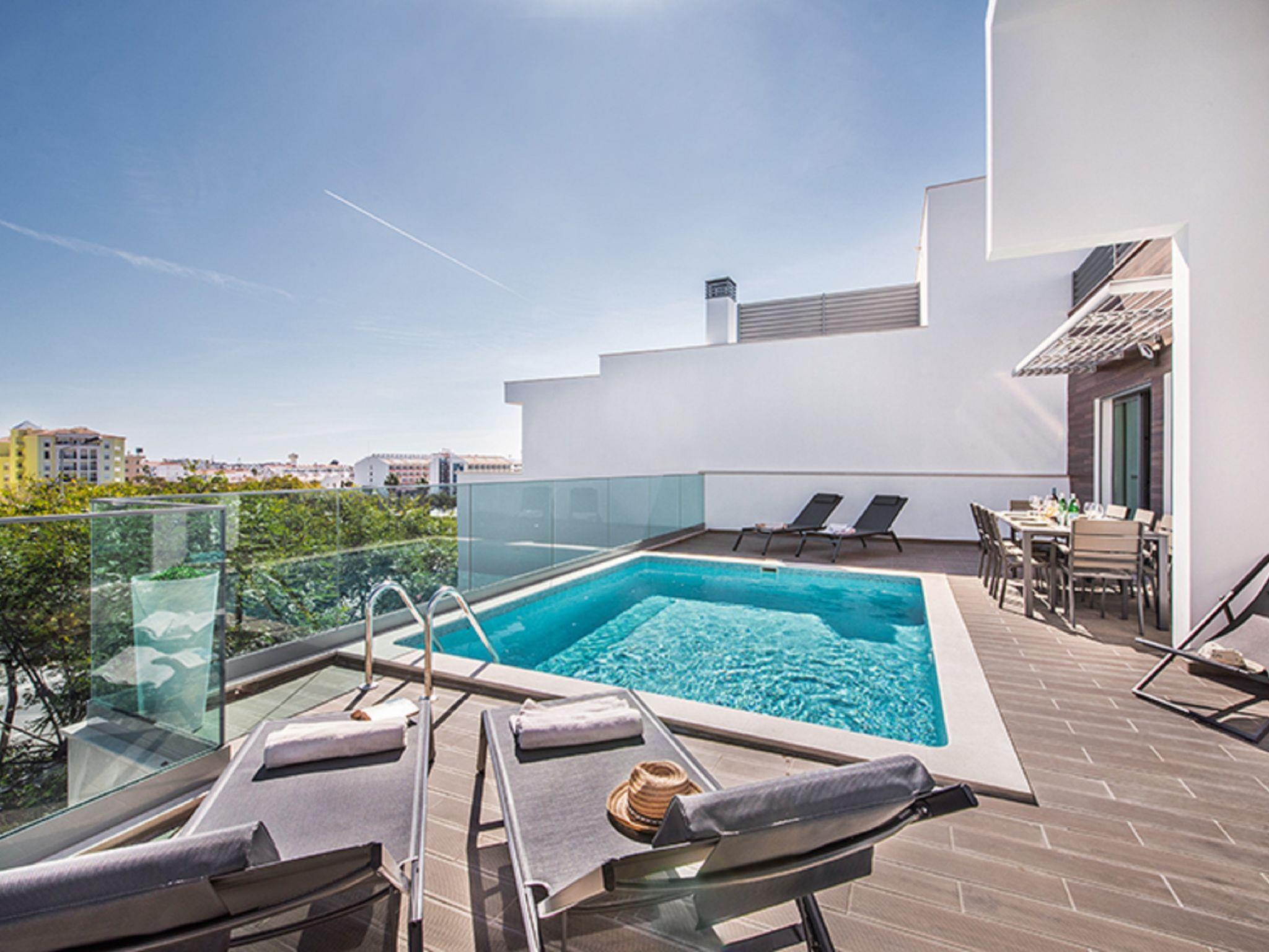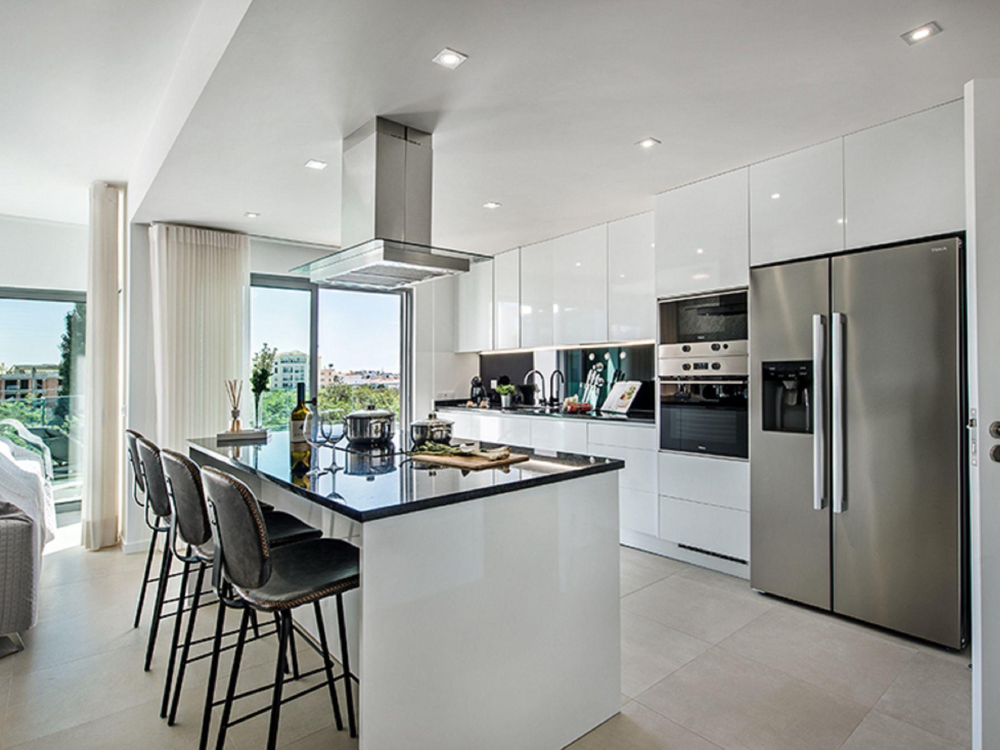 "Sónia Lote 69 - VIP Properties", 4-room house 245 m2. Spacious and bright, very comfortable and modern furnishings: living/dining room with cable TV, international TV channels, flat screen, air conditioning and forced-air heating. Exit to the terrace, to the swimming pool. 1 room with 1 french bed (160 cm, length 200 cm), air conditioning and forced-air heating. 1 room with 1 french bed (160 cm, length 200 cm), bath/WC, air conditioning and forced-air heating. Exit to the terrace, to the swimming pool. 1 room with 2 beds (90 cm, length 200 cm), air conditioning and forced-air heating. Exit to the terrace, to the swimming pool. Open kitchen (oven, dishwasher, 4 ceramic glass hob hotplates, toaster, kettle, microwave, freezer, cooking island). Exit to the terrace, to the swimming pool. Shower/WC. Terrace furniture, balcony furniture, barbecue, deck chairs (4). Panoramic view of the sea and the resort. Facilities: washing machine, children's high chair, baby cot for up to 2 year olds (extra). Internet (WiFi, free). Parking at the house. Suitable for families. Heated pool from October to April. 111329/AL