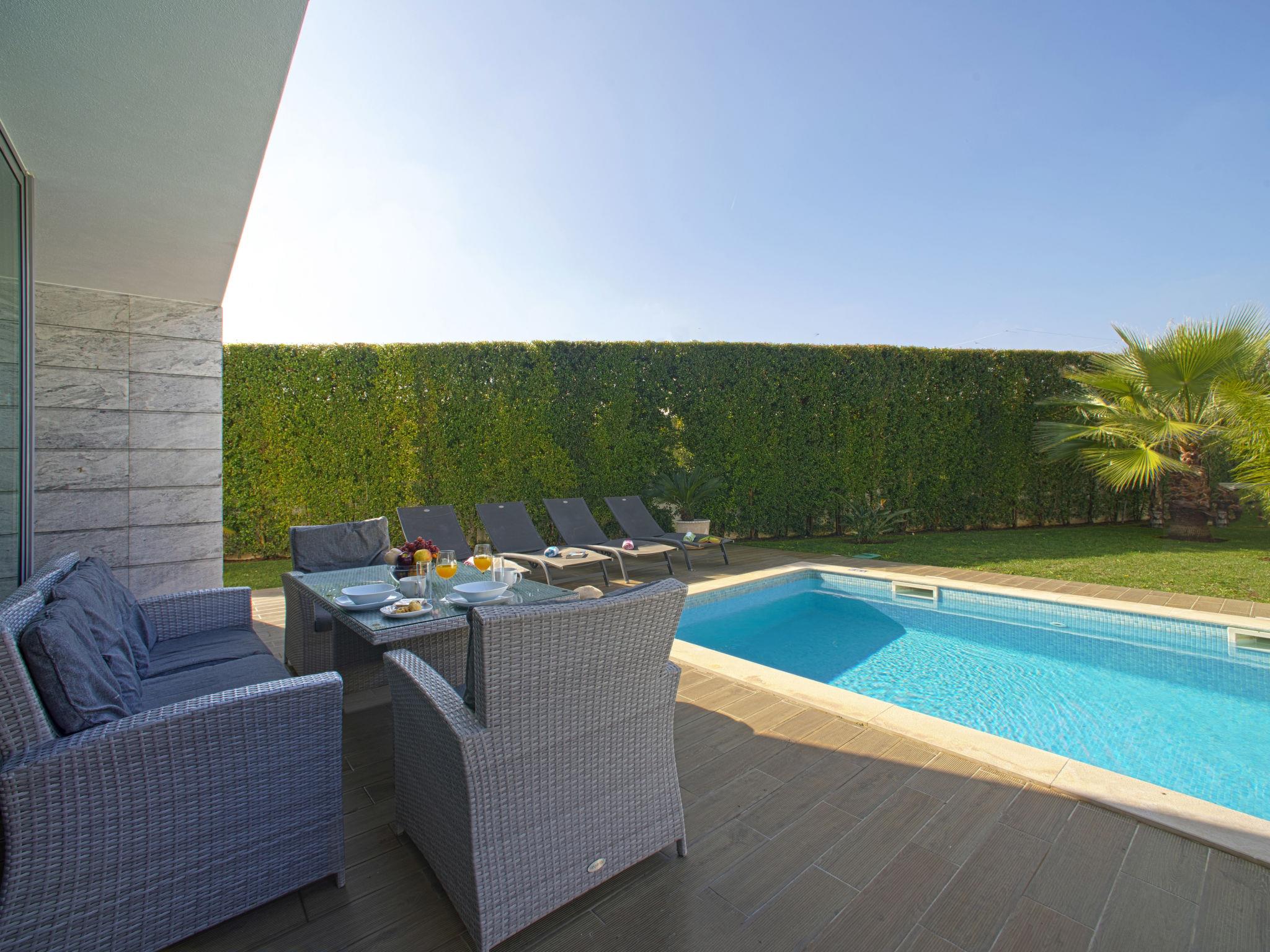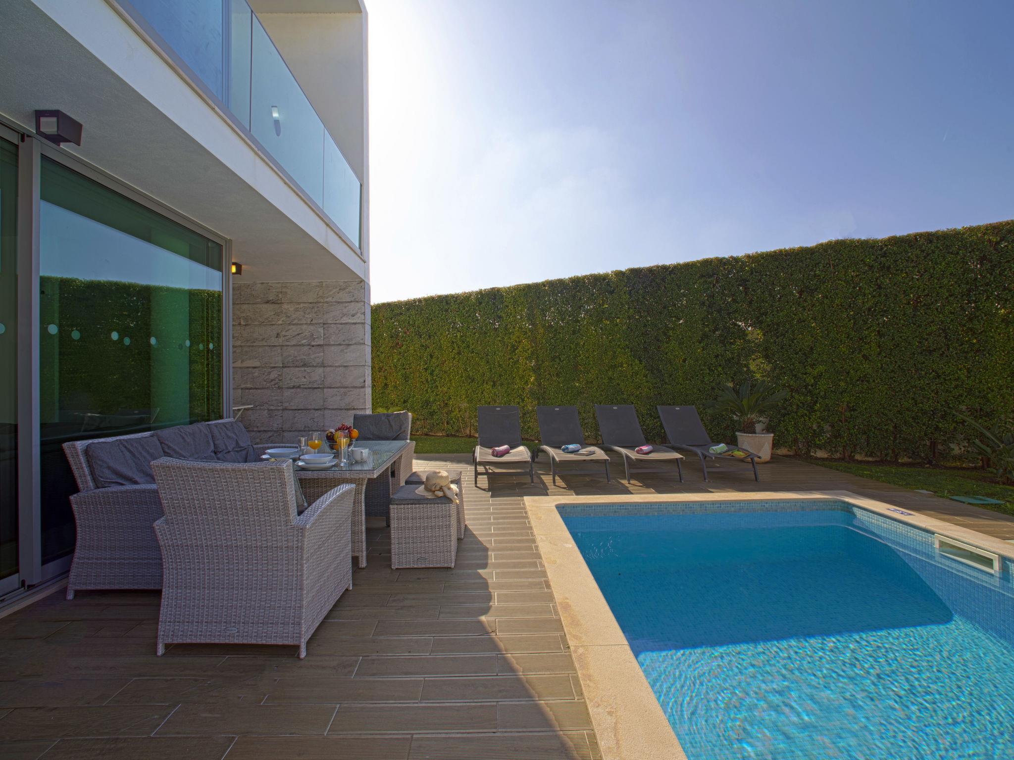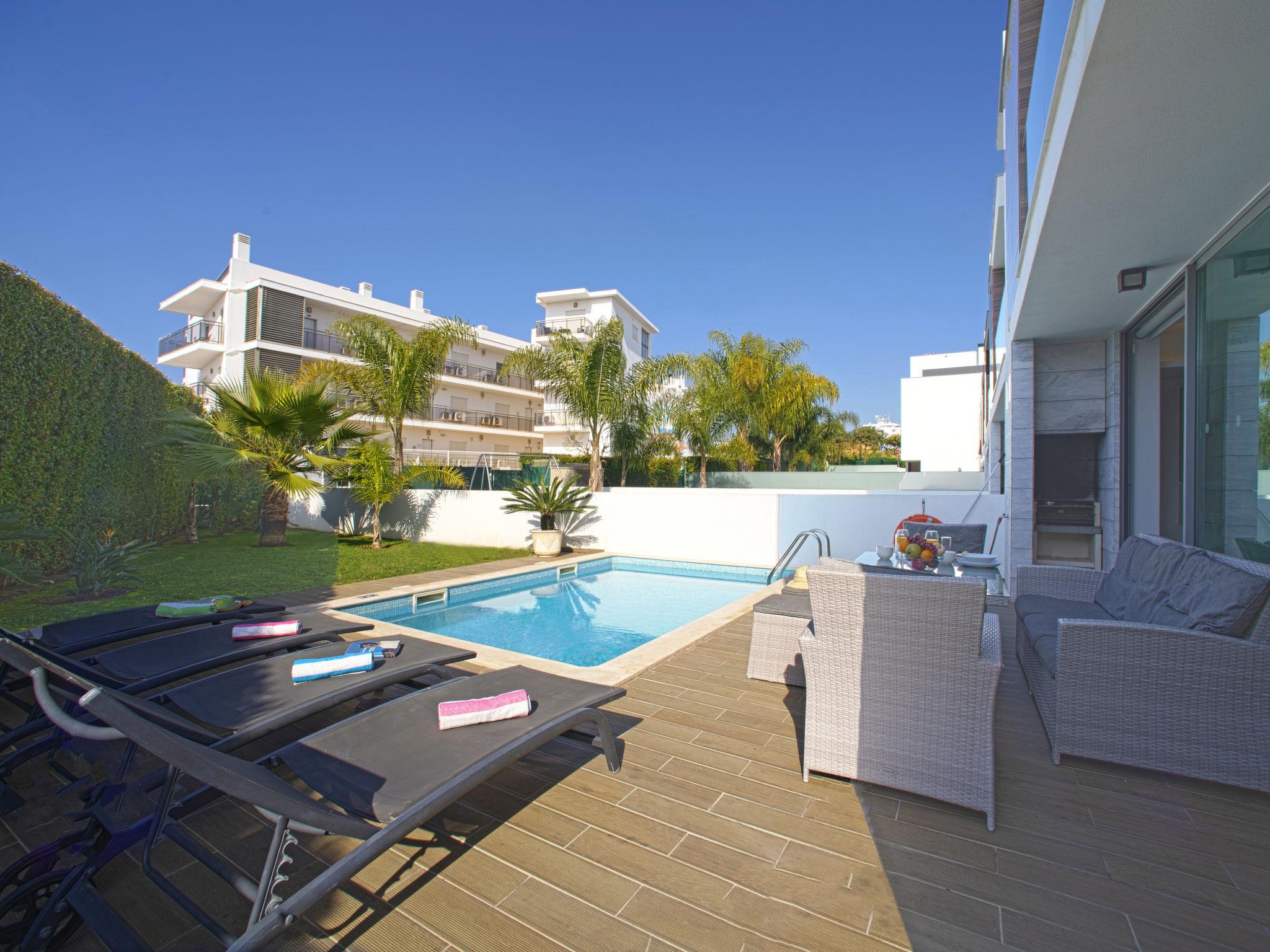 Very modern, cosy villa "Pires - VIP Properties". In the resort 2.2 km from the centre of Albufeira, 1.6 km from the sea. Private: swimming pool angular, heated (4 x 8 m, depth 135 - 135 cm, seasonal availability: 01.Jan. - 31.Dec.). Barbecue. In the house: WiFi, air conditioning, washing machine, drying room. Parking at the house. Grocery 350 m, supermarket 1.1 km, shopping centre 1.2 km, restaurant 400 m, bar 800 m, bakery 350 m, café 350 m, bicycle rental 2.7 km, bus stop 280 m, railway station 5.4 km, sandy beach "Praia de Albufeira" 1.6 km, diving center 5.3 km. Marina 4.6 km, golf course (18 hole) 10.5 km, surf school 8.8 km, minigolf 800 m, riding stable 10.2 km, children's playground 1 km. Nearby attractions: Adventure Mini Golfe Park 800 m, Zebra Safri Tours 1.7 km, Algarve Shopping 9.2 km, Zoomarine 10.6 km, Krazy World 15.5 km, Faro Airport 39.5 km. Well-known lakes can easily be reached: Lagoa dos Salgados 13.3 km. Youth groups (under 25) will be required to pay an additional deposit per person on site. Pool heating service (20°-22°C) must be notified to KH 1 week in advance: €350/week. From 7 nights: €50/night extra.