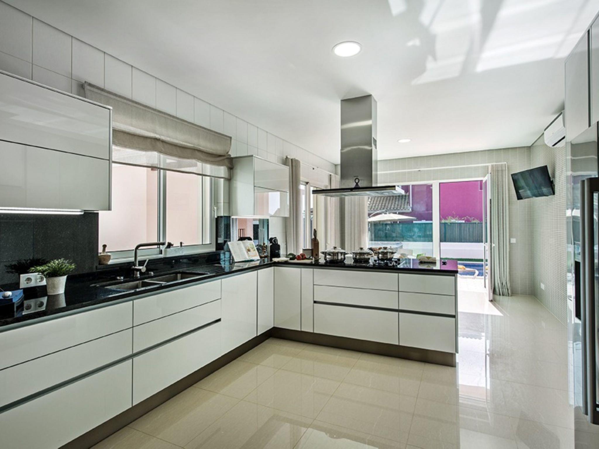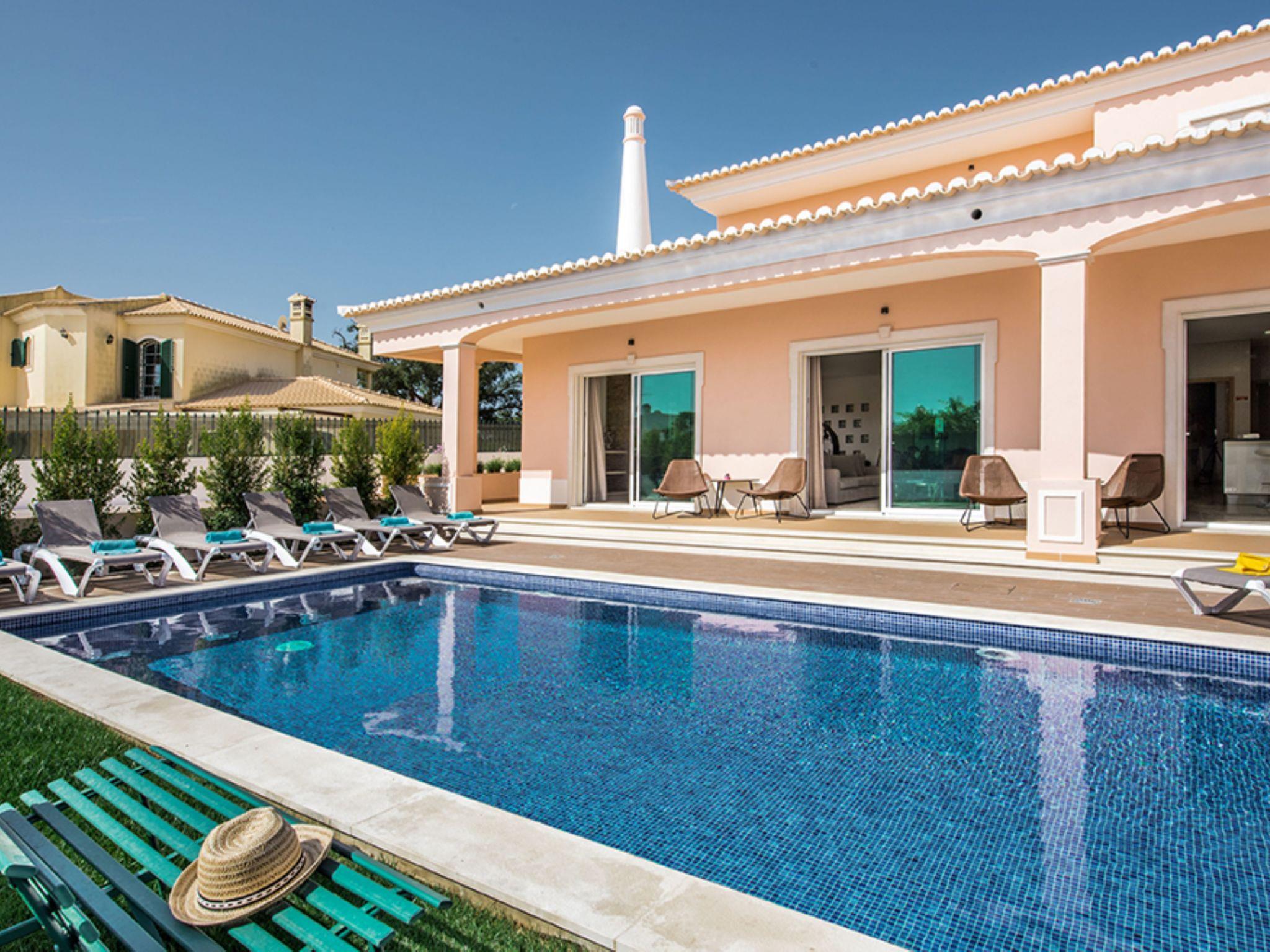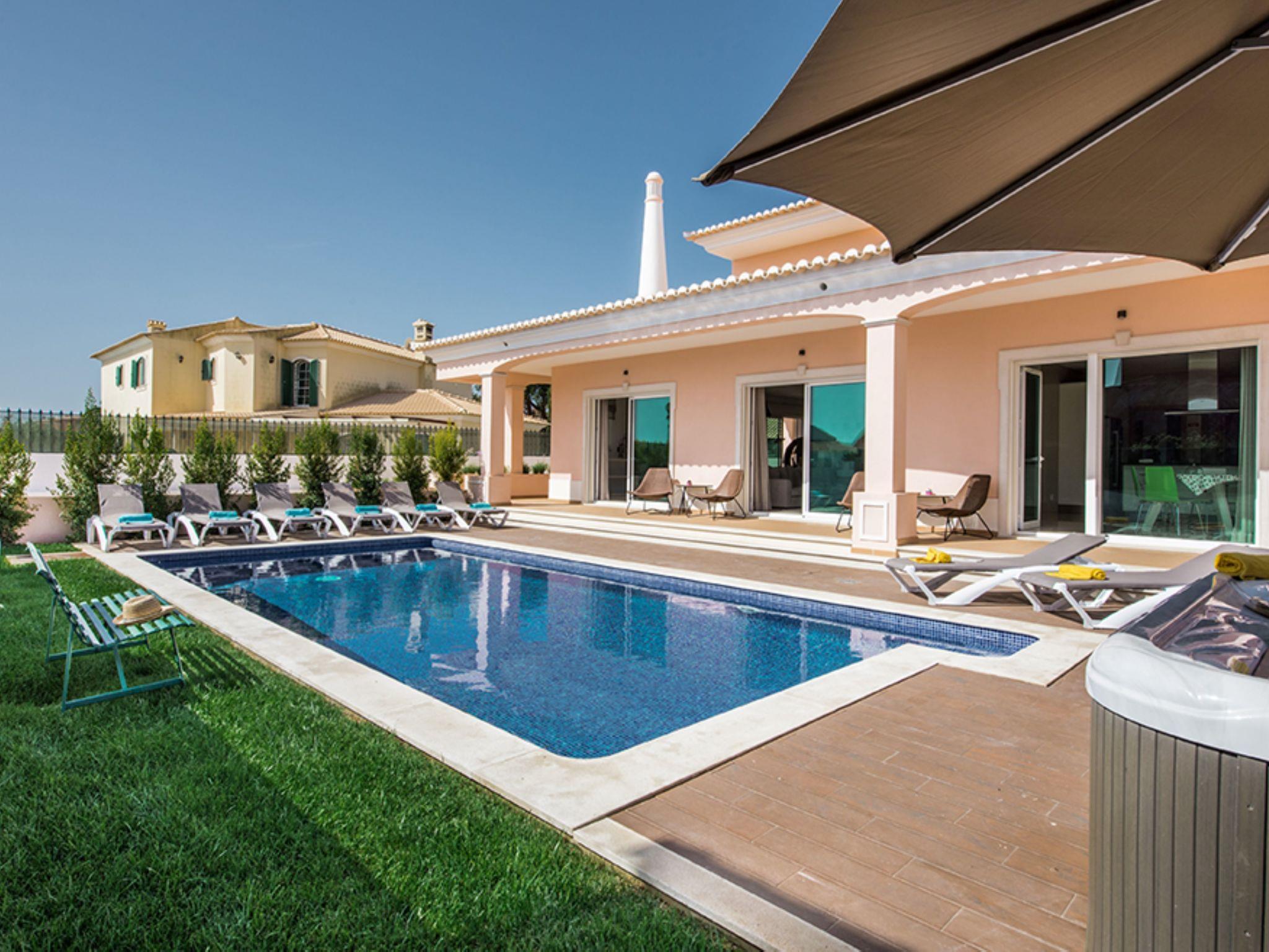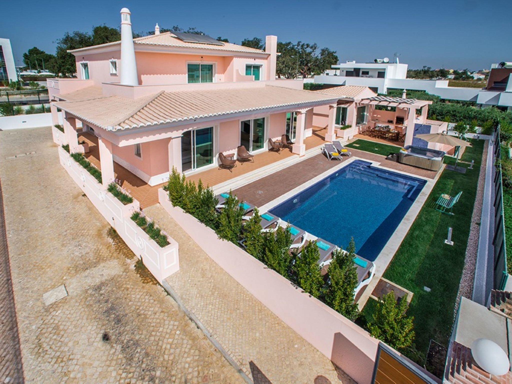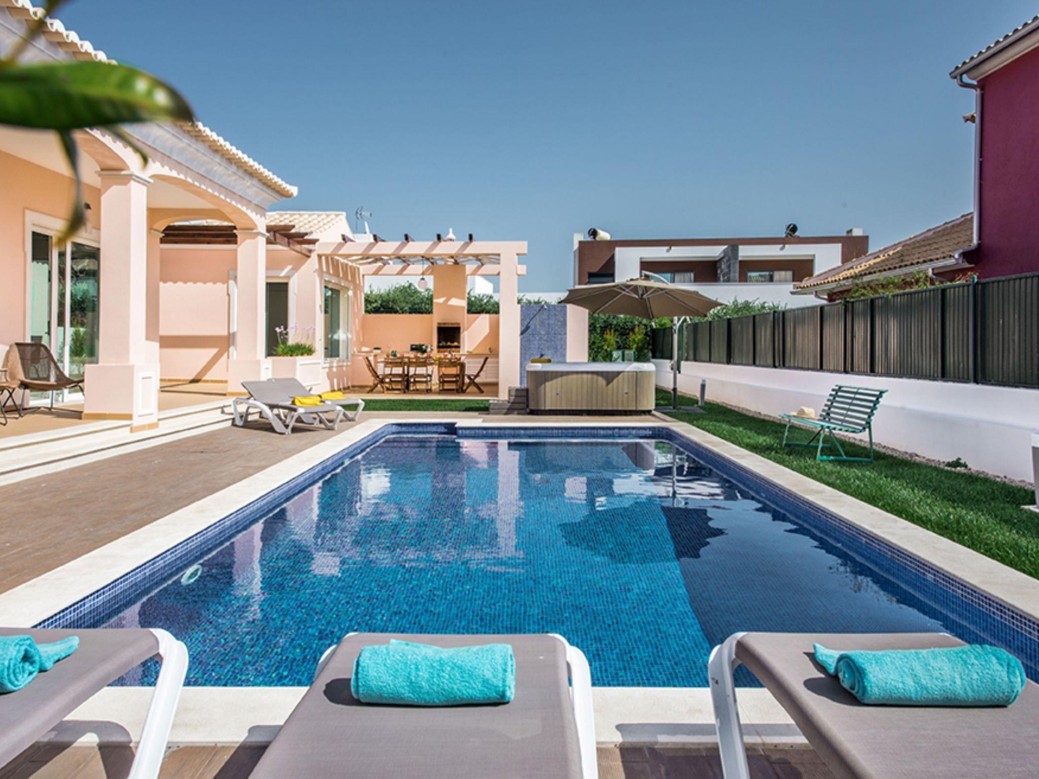 Very modern, cosy villa "V8 Bastos - VIP Properties", detached. Outside the resort, 2.9 km from the centre of Albufeira, 3.1 km from the sea. Private: swimming pool angular (5 x 10 m, depth 90 - 180 cm, seasonal availability: 01.Jan. - 31.Dec.). Hot tub, table tennis, garden furniture, barbecue. In the house: WiFi, air conditioning, washing machine. Grocery 2.3 km, supermarket 650 m, shopping centre 9.3 km, restaurant 3.1 km, bar 3.1 km, bakery, café 650 m, pedestrian zone 2.2 km, bicycle rental 8.5 km, bus stop 650 m, sandy beach "Praia dos alemães" 3.1 km. Marina 6.1 km, golf course (18 hole) 8.5 km, surf school 9.8 km, tennis 4.5 km, riding stable 11.1 km, children's playground 1.8 km. Nearby attractions: Praça da Cidade Velha de Albufeira 3.4 km, Aqualand 18.8 km, Krazy World 15.1 km, Museu Municipal de Arqueologia 5.5 km, Zoomarine Algarve 11 km, Parque Aventura Albufeira 3.8 km. Please note: car recommended. Suitable for families. Loading and unloading of baggage is possible at the holiday house. All groups of young people under 25 years old must pay an extra deposit in cash on arrival.