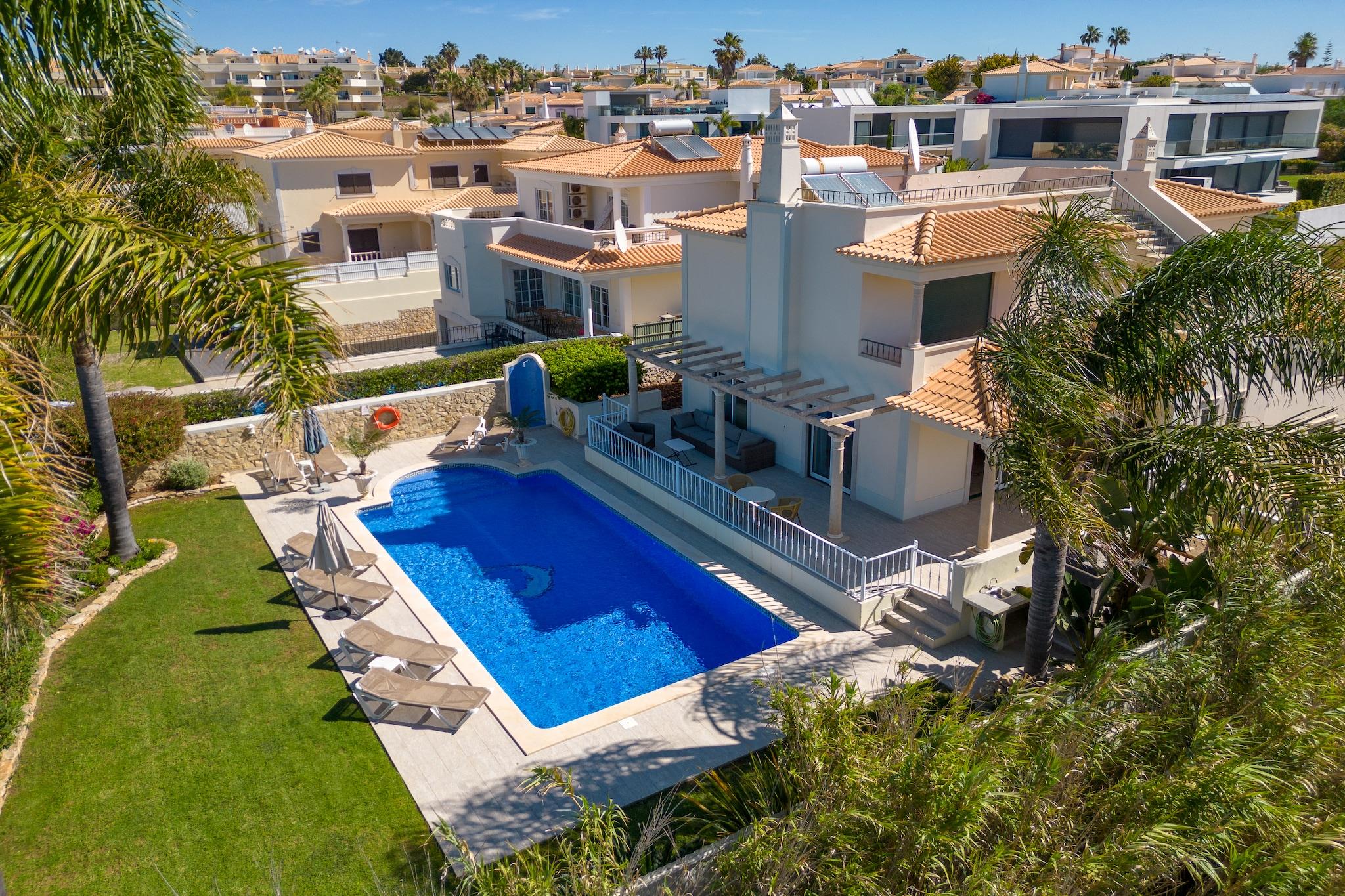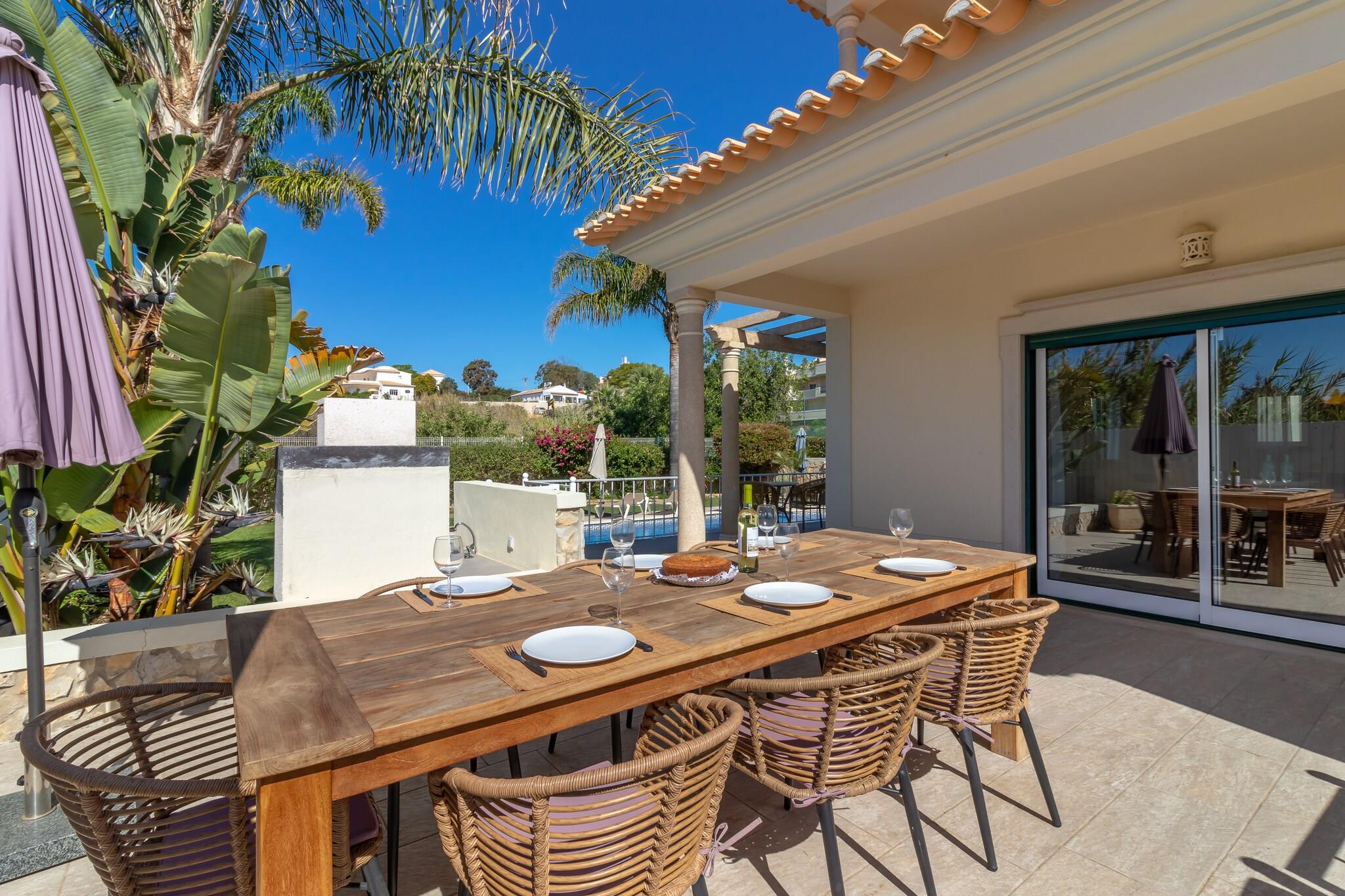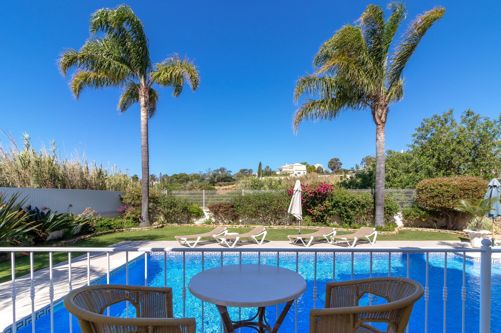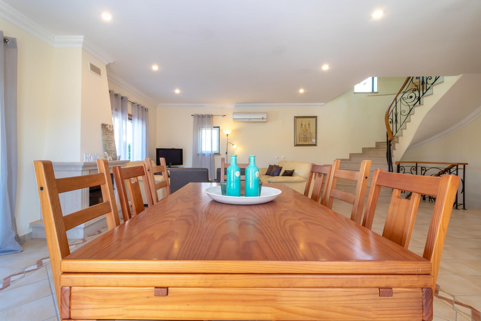 Denne komfortable villa ligger i gåafstand fra stranden, hvilket er dejligt! Og ikke hvilken som helst strand; det er det smukke Praia São Rafael, lige vest for Albufeira. Her vil du straks stifte bekendtskab med de smukke strande og bugter, som Algarve er så berømt for. Praia do Evaristo er netop sådan en strand, kun få minutters kørsel fra boligen. Ideel til familieferier. Ejendommen er beliggende i boligområdet Sesmarias, 5 km uden for Albufeira. Du kan spille golf på golfklubben Salgados GC (8 km) og regionen har et stort udvalg af gode restauranter Villaen er komfortabelt og moderne indrettet og udstyret med et komplet køkken. Du har en fuldt indhegnet have med græsplæne og flere (delvist) overdækkede terrasser; perfekt til en afslappende eftermiddag! Foran villaen er solterrassen med masser af liggestole, flere parasoller og den opvarmede private swimmingpool (10 x 5 m) som midtpunkt. Derudover er der en udendørs bruser til rådighed, og grillen er også inkluderet.