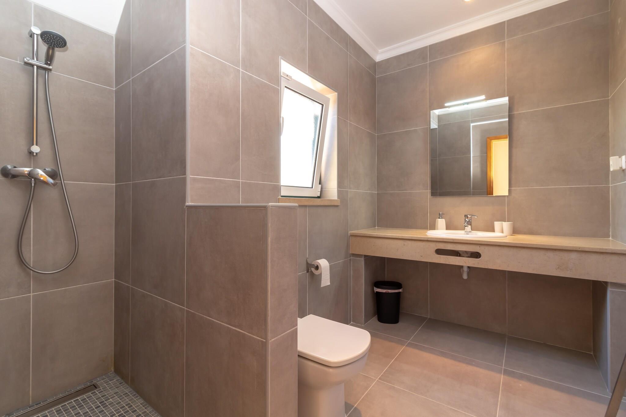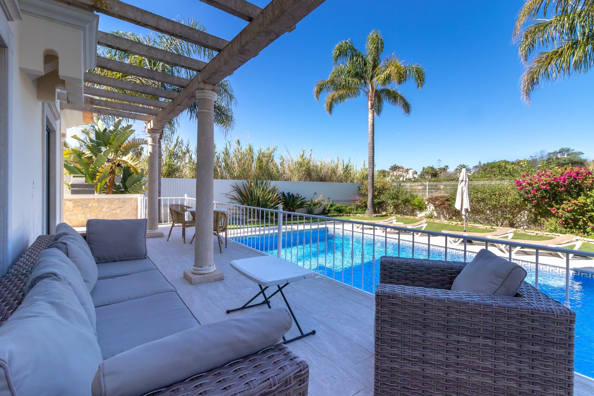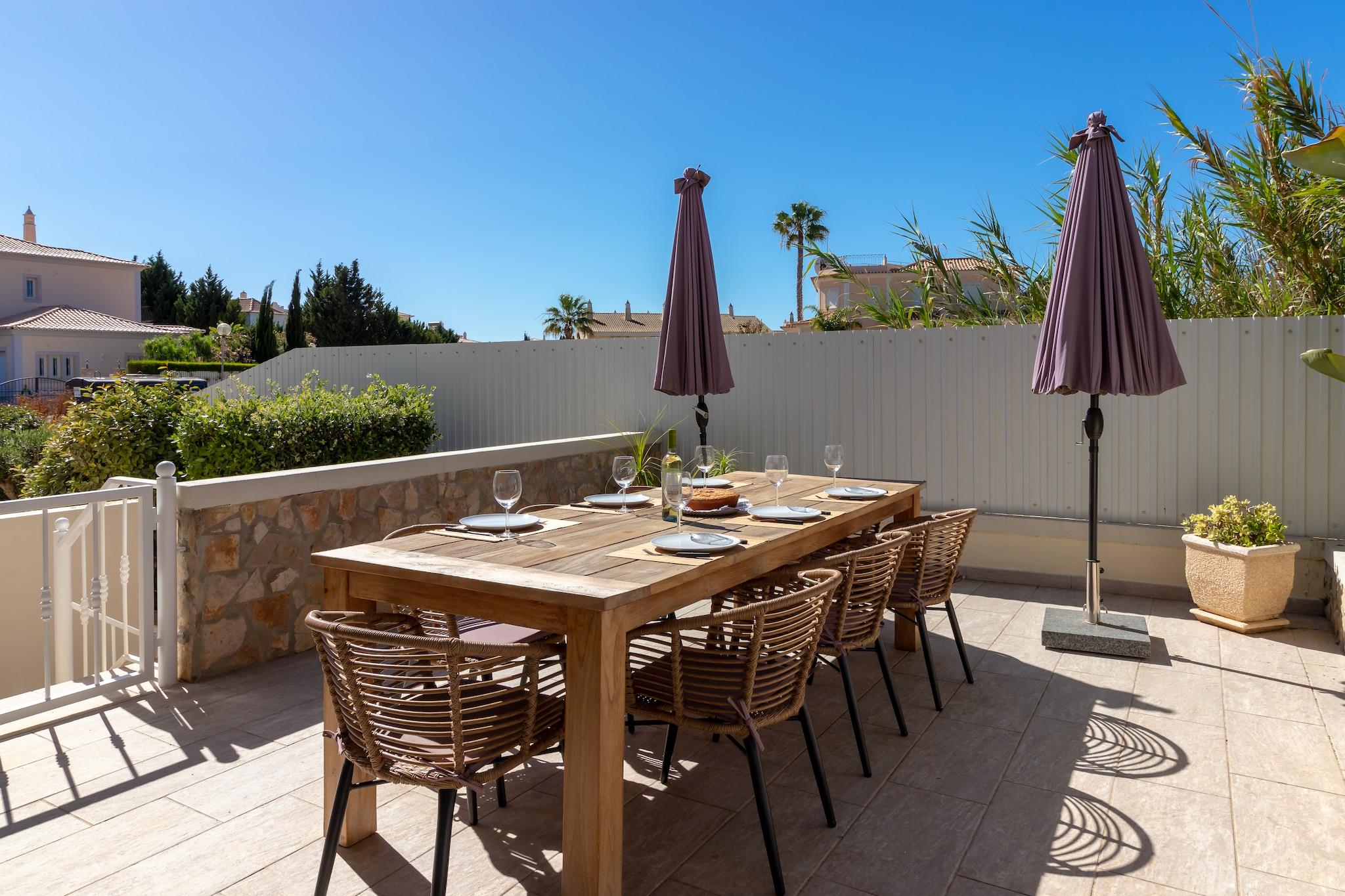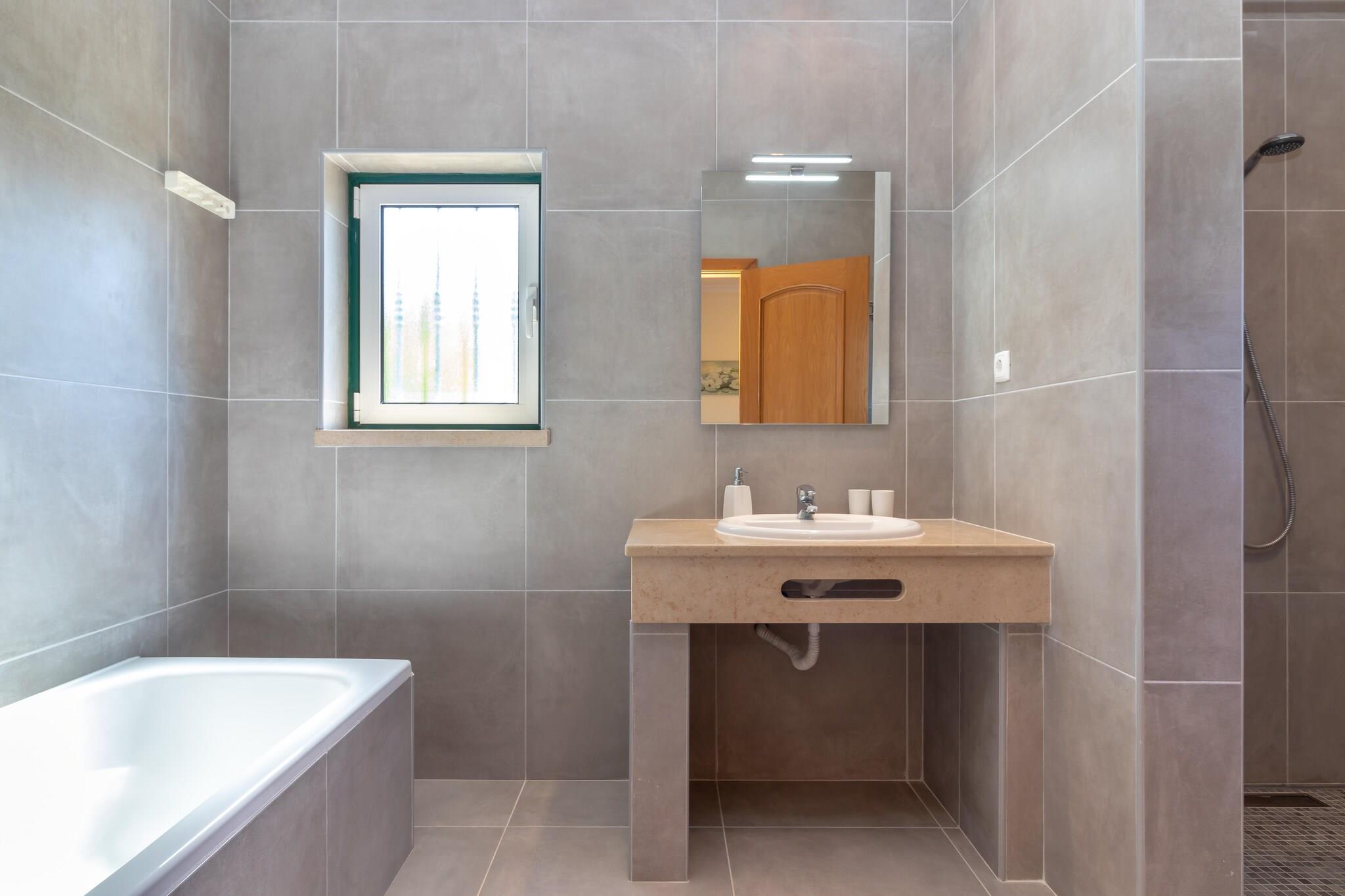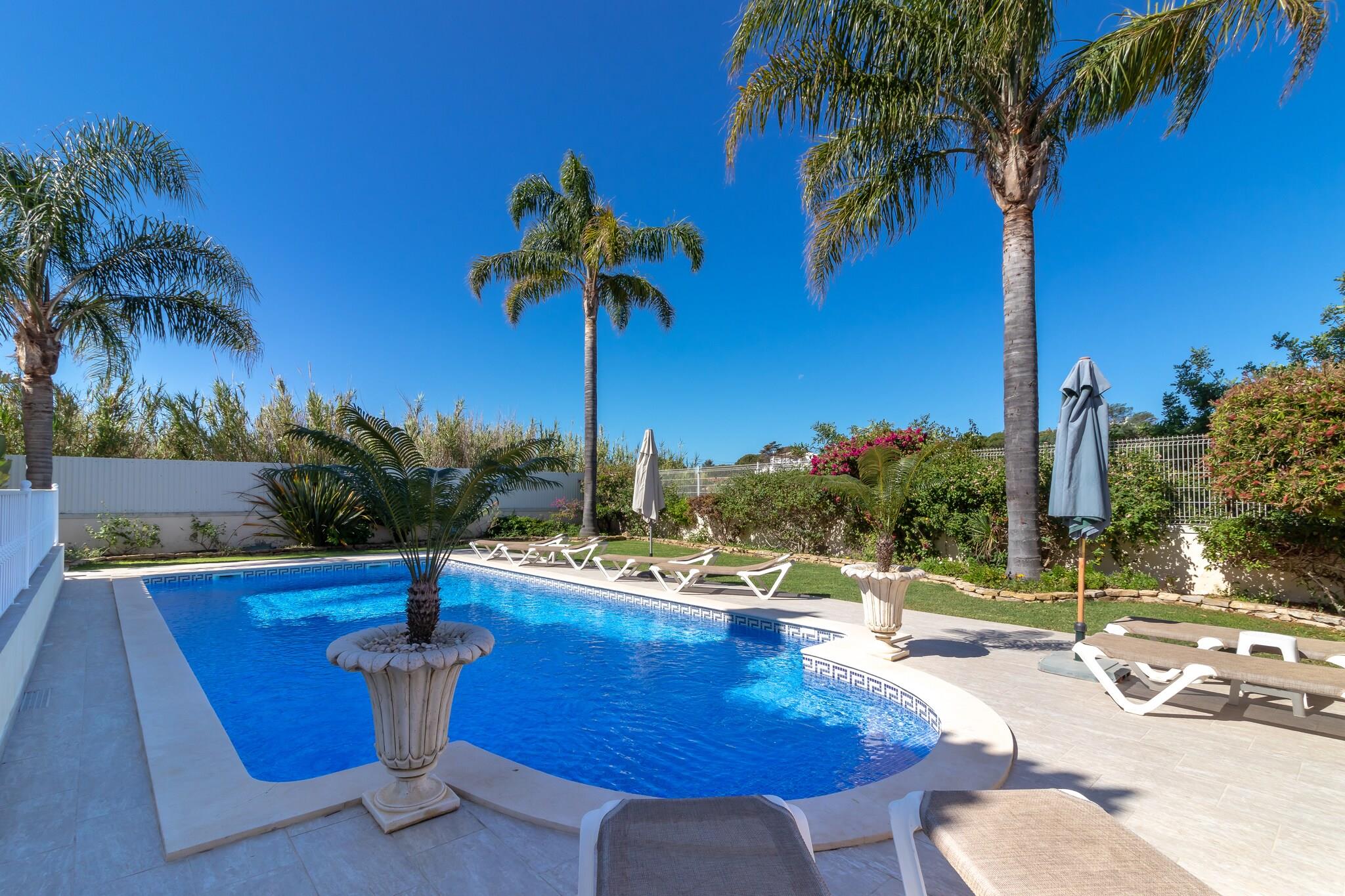 Denne komfortable villa ligger i gåafstand fra stranden, hvilket er dejligt! Og ikke hvilken som helst strand; det er det smukke Praia São Rafael, lige vest for Albufeira. Her vil du straks stifte bekendtskab med de smukke strande og bugter, som Algarve er så berømt for. Praia do Evaristo er netop sådan en strand, kun få minutters kørsel fra boligen. Ideel til familieferier. Ejendommen er beliggende i boligområdet Sesmarias, 5 km uden for Albufeira. Du kan spille golf på golfklubben Salgados GC (8 km) og regionen har et stort udvalg af gode restauranter Villaen er komfortabelt og moderne indrettet og udstyret med et komplet køkken. Du har en fuldt indhegnet have med græsplæne og flere (delvist) overdækkede terrasser; perfekt til en afslappende eftermiddag! Foran villaen er solterrassen med masser af liggestole, flere parasoller og den opvarmede private swimmingpool (10 x 5 m) som midtpunkt. Derudover er der en udendørs bruser til rådighed, og grillen er også inkluderet.