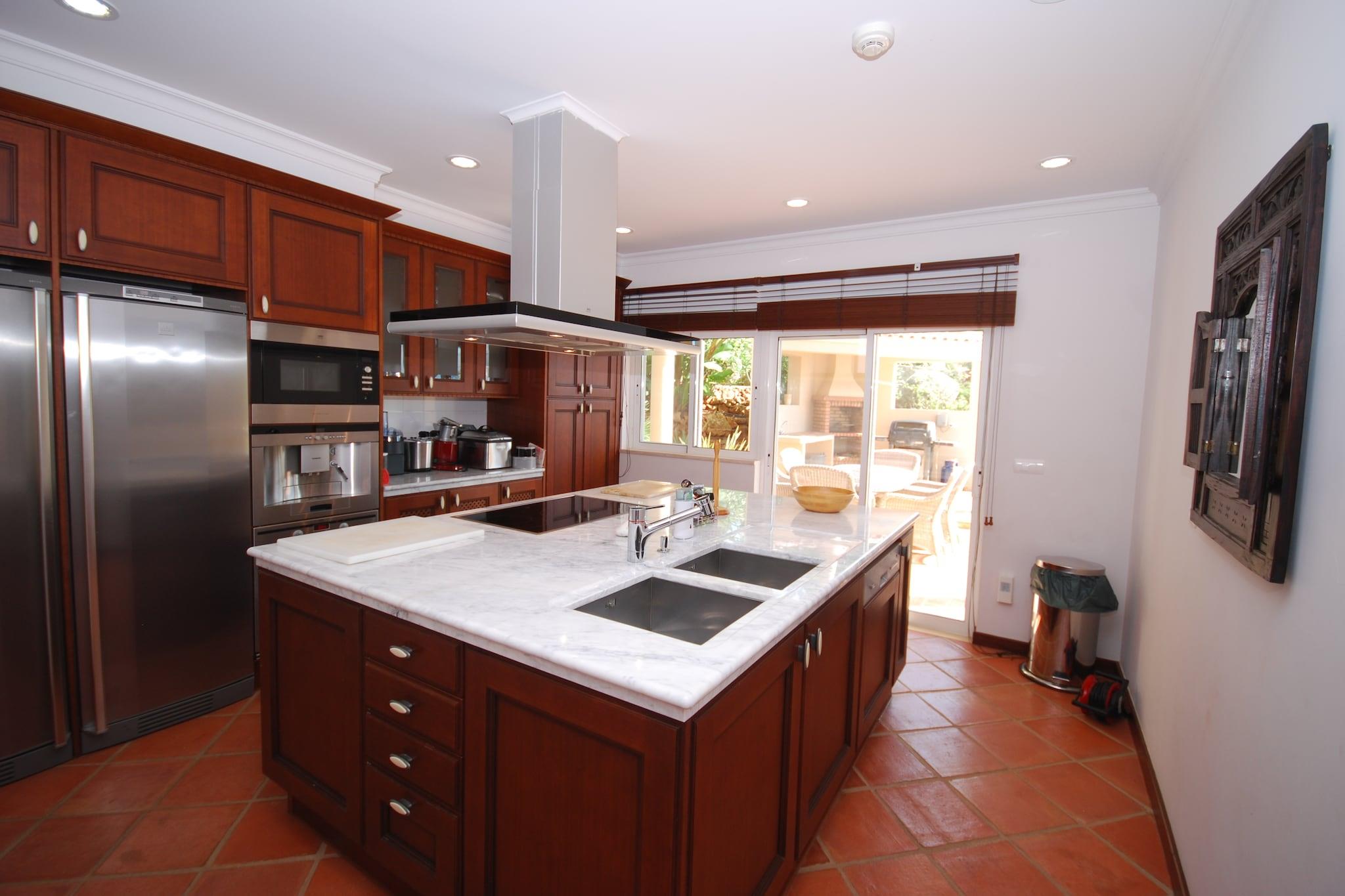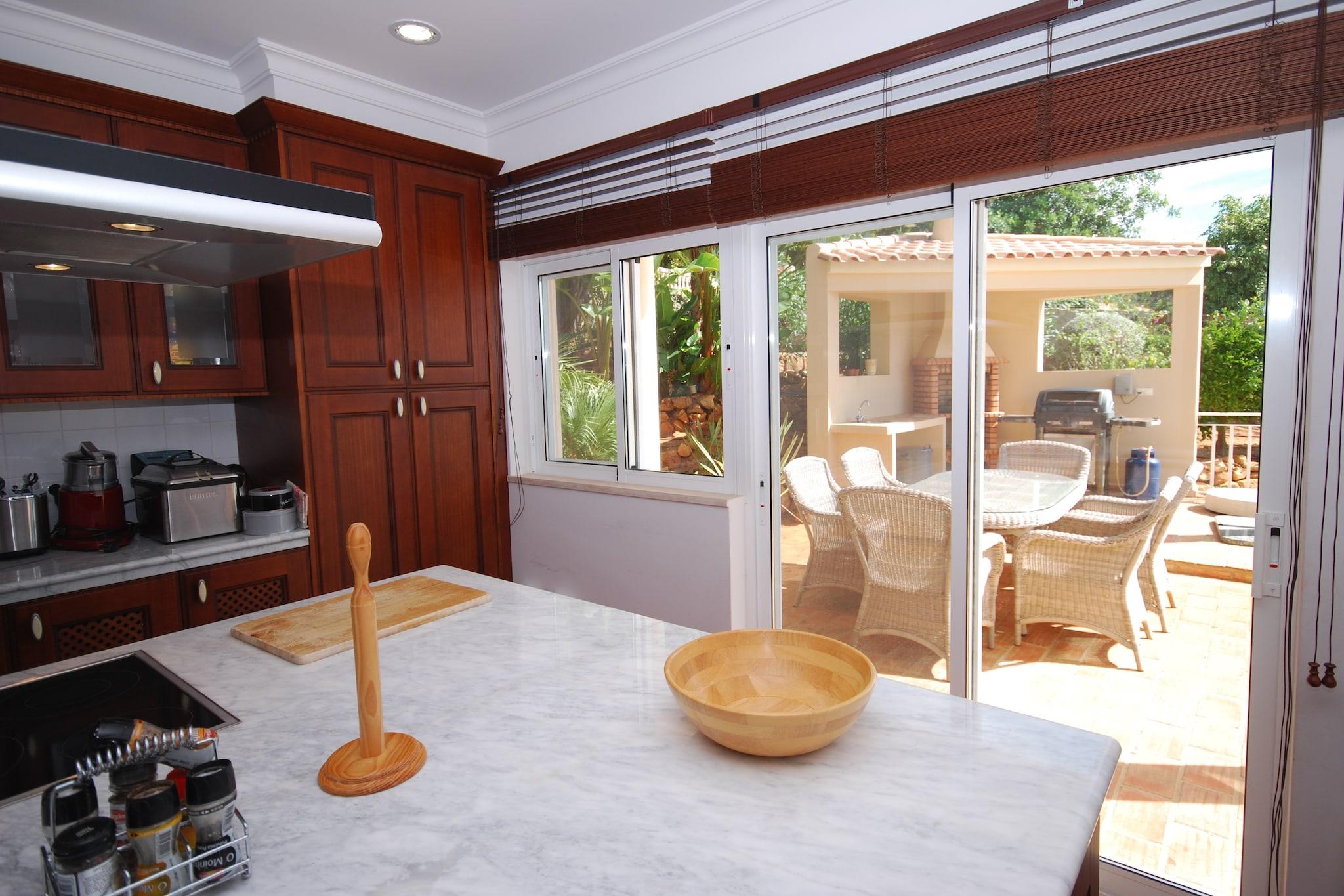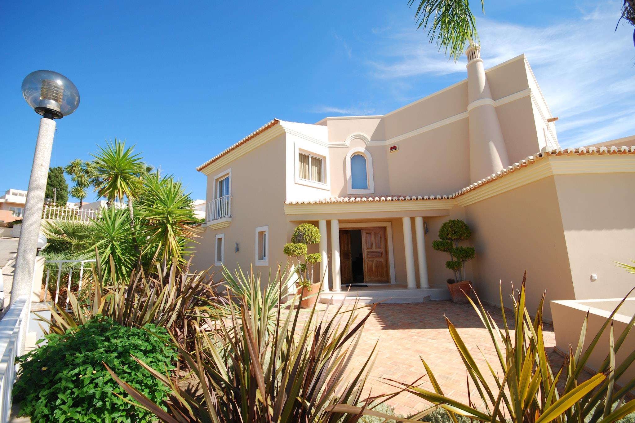 Moderne, fritliggende villa med privat swimmingpool. Du kommer til swimmingpoolen via en af de to lukkede terrasser. Du ser ud over de bakkede omgivelser, Albufeira og havet. For at gøre det komplet er der også en dejlig græshave, hvor børnene kan boltre sig. Albufeira ligger kun 3 km væk. Det er en hyggelig badeby med mange butikker, restauranter, terrasser og barer. Den gamle del har bygninger fra en svunden tid i smalle gader og hyggelige pladser. Byens strand ligger allerede 3,5 km væk, men du har valget mellem strande. Der er mange skjulte bugter langs den smukke kyst. Rart at tage en tur i bil for en dag og lave forskellige ting. De idylliske bugter Praia de São Rafael og Coelha, for eksempel (begge 5 km). Du kan selvfølgelig også bare vælge en og blive der hele dagen. For virkelig at lære denne del af Algarve at kende, bør du forlade kysten. En smuk køretur fører dig til de maleriske landsbyer Paderne (20 km) og Alte (30 km). Begge landsbyer ligger op mod en bakke, og tiden ser ud til at have stået stille her.