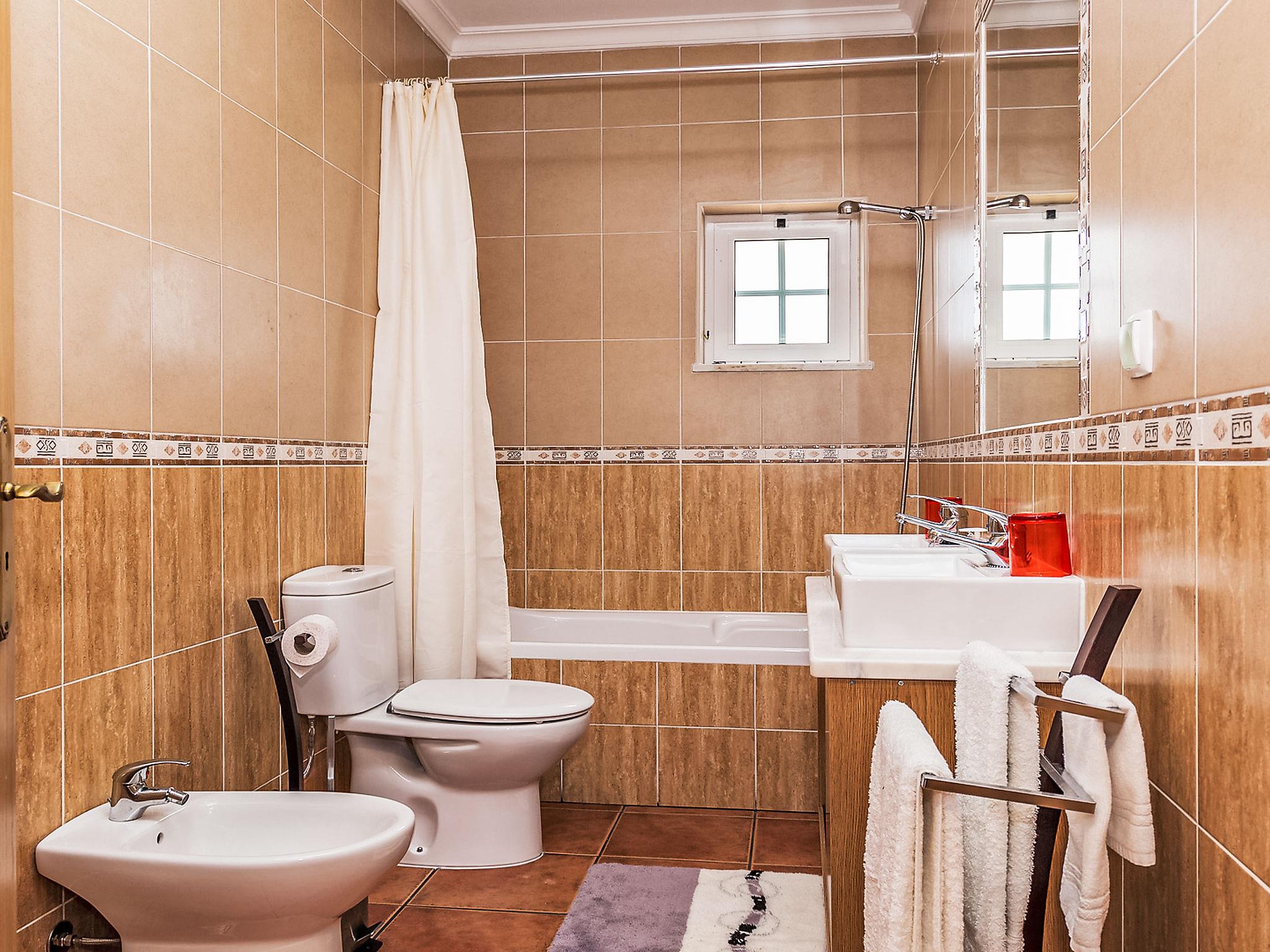 "Da Horta", 5-room villa 313 m2 on 2 levels. Spacious and bright, practical and comfortable furnishings: living/dining room with open-hearth fireplace, dining table, satellite TV and flat screen. Exit to the patio, to the swimming pool. 1 room with 1 bed (85 cm, length 185 cm), 1 french bed (130 cm, length 185 cm), air conditioning and forced-air heating. 1 room with 1 french bed (130 cm, length 185 cm), bath/shower/bidet/WC, double hand-basin, air conditioning and forced-air heating. Exit to the garden, to the swimming pool. Kitchen (4 hot plates, oven, dishwasher, microwave, freezer, electric coffee machine, Capsules for coffee machine (Dolce Gusto) extra) with dining table. Exit to the patio, to the swimming pool. Hip bath/bidet/WC, double hand-basin. Upper floor: 1 room with 2 beds (85 cm, length 185 cm), bath/shower/bidet/WC and double hand-basin. Exit to the balcony. 1 room with 1 french bed (160 cm, length 190 cm), bath/bidet/WC, double hand-basin, air conditioning and forced-air heating. Exit to the balcony. 31264/AL