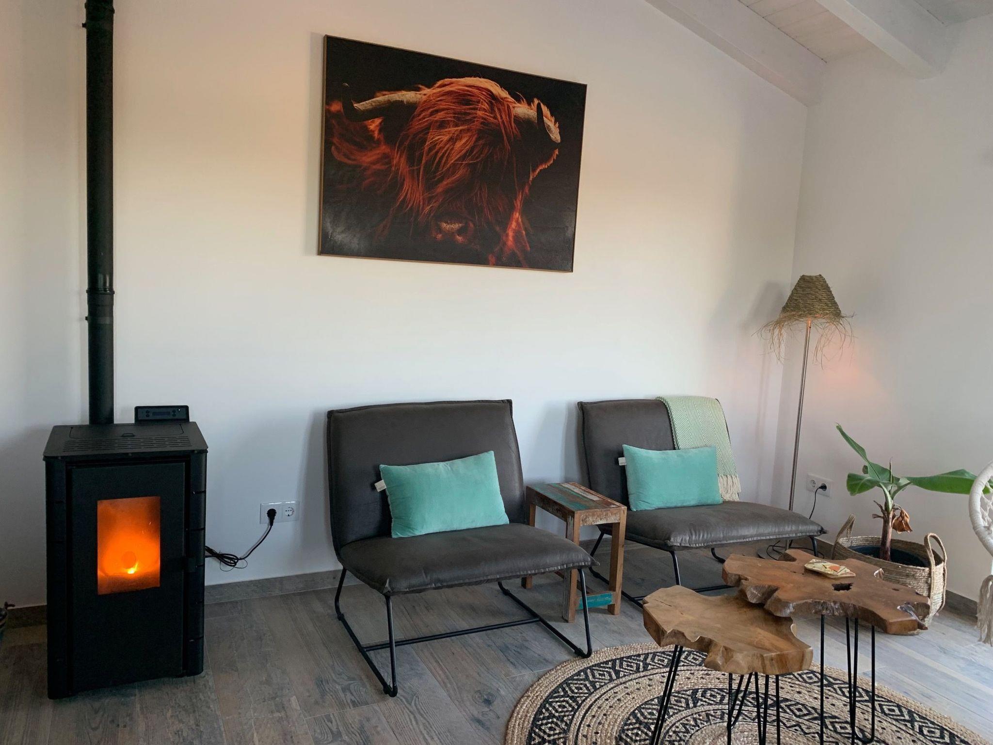 Thanks to the maritime climate, air conditioning is not needed. Casa Selva is also suitable for the winter months, there is a good wood stove (pellet). The house is well isolated and equipped with high-quality window frames with double glazing. Solar panels are used.