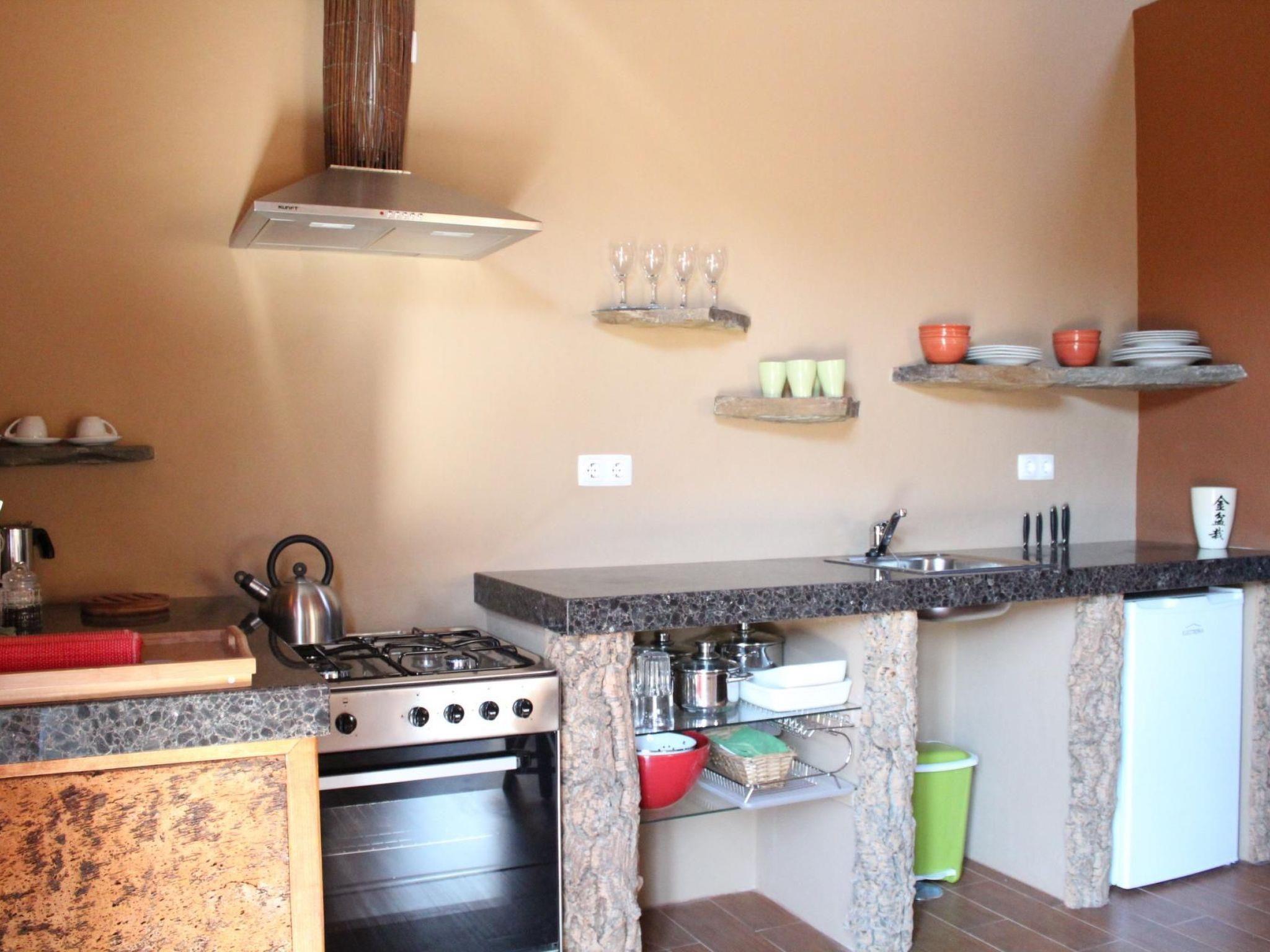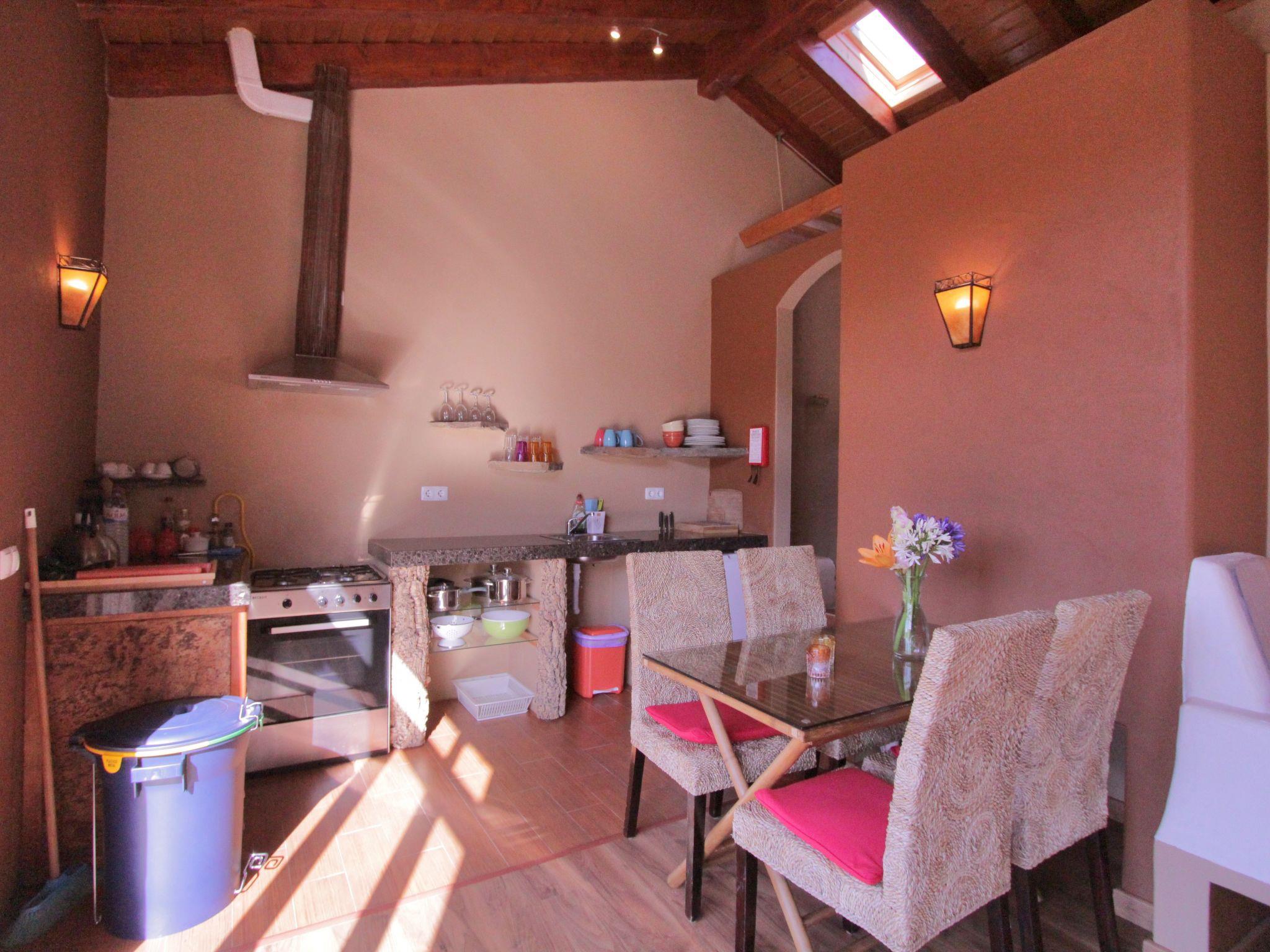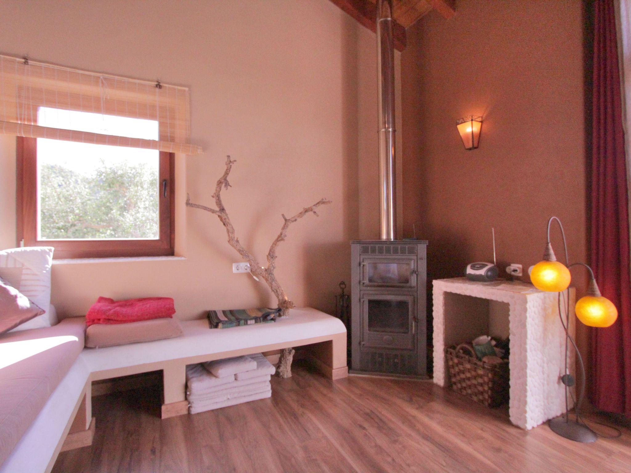 Inside, the apartment is equipped with all the necessities to ensure a comfortable stay. The presence of a gas cooker and a mini oven in the kitchenette allows for easy meal preparation, while the coffee machine is ready to kickstart your day with a fresh brew. A fan is available to keep the atmosphere cool and pleasant throughout your stay. For those cooler evenings, the fireplace adds a cozy touch, making it an ideal spot for intimate gatherings and relaxation.