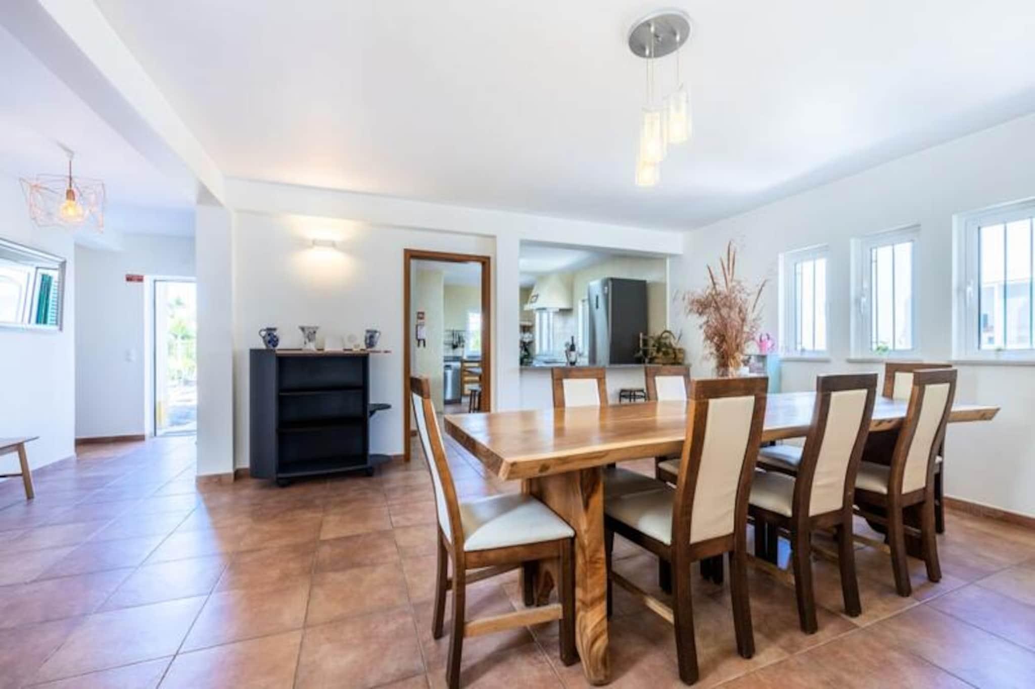 Forestil dig et fredfyldt tilflugtssted, hvor den gyldne sol kysser frodige haver, og den blide brise bærer duften af ??Atlanterhavet. Casa May, beliggende i hjertet af Vale da Telha, tilbyder den perfekte blanding af ro og luksus til din familieferie. Omgivet af den uberørte skønhed i Costa Vicentina naturreservat, er denne villa et paradis for naturelskere, surfere og dem, der søger en fredelig flugt. Med sin private pool og store have føles hvert øjeblik her som et skridt ind i paradis. Villaen kan prale af en rummelig planløsning designet til komfort og bekvemmelighed. Hovedhuset har fire smukt indrettede soveværelser, to badeværelser og et fuldt udstyret køkken, der inviterer til kulinarisk kreativitet. De åbne spise- og opholdsområder er ideelle til familiesammenkomster, mens det udendørs grillområde og loungen ved poolen giver uendelige muligheder for afslapning. Et tilhørende privat studie med egen indgang tilbyder en ekstra dobbeltseng, tekøkken og badeværelse, hvilket gør det perfekt til den udvidede familie eller venner. Moderne bekvemmeligheder som Wi-Fi, tv og frisk sengetøj sikrer et problemfrit ophold. Vale da Telhas charme ligger i dens nærhed til fantastiske strande som Arrifana og Monte Clérigo, begge kun en kort køretur væk. Udforsk den historiske by Aljezur, kendt for sine brostensbelagte gader og middelalderborg, eller begiv dig ud i den pulserende by Lagos for at få en smagsprøve på bylivet. Uanset om du vandrer langs kyststier, surfer på bølger i verdensklasse eller blot slapper af ved poolen, placerer Casa May dig i hjertet af det hele. Lad skønheden i Portugals Algarve-region fortrylle dig. Casa May er mere end bare et feriehus; det er en port til uforglemmelige minder. Book dit ophold i dag og oplev magien i Vale da Telha.
