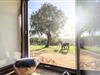 Midt i det fredfyldte Algarve-landskab, kun få minutter fra den charmerende by Aljezur, ligger en dejlig studiolejlighed i stueetagen, der lover et tilflugtssted fyldt med ro og naturlig skønhed. Her begynder morgenen med den blide raslen af ??blade og lejlighedsvis en hilsen fra gårdens venlige æsler, mens aftenerne er perfekte til at slappe af på den private veranda under en stjerneklar himmel. Dette er et sted, hvor naturens rytme sætter tonen for din ferie. \n\nStudiolejligheden er omhyggeligt designet til at rumme op til fire gæster og har en rummelig dobbeltseng og en mezzanin, der er ideel til to børn. Store vinduer oversvømmer opholdsstuen med lys og tilbyder en betagende udsigt over landskabet. Et fuldt udstyret køkken inviterer dig til at tilberede måltider med friske lokale råvarer, mens det private badeværelse sikrer komfort og bekvemmelighed. Sengelinned, håndklæder og Wi-Fi er inkluderet, hvilket gør dit ophold så problemfrit som muligt. \n\nBeliggende i nærheden af ??Aljezur, befinder du dig i hjertet af Costa Vicentina Naturpark, en region berømt for sine dramatiske klipper, uberørte strande og surfforhold i verdensklasse. Uanset om du udforsker Aljezurs brostensbelagte gader, prøver lokale delikatesser som Medronho eller honning, eller vandrer langs kyststier med lyden af ??Atlanterhavets bølger som dit lydspor, tilbyder dette område uendelige muligheder for eventyr og afslapning. \n\nQuinta da Paz er mere end bare et sted at bo; det er en invitation til at opleve Algarves autentiske charme. Med sine fredelige omgivelser, venlige husdyr og nærhed til både natur og kultur er dette studie perfekt til familier eller par, der søger en mindeværdig flugt. Lad Aljezurs skønhed og Quinta da Paz' varme skabe varige ferieminder.