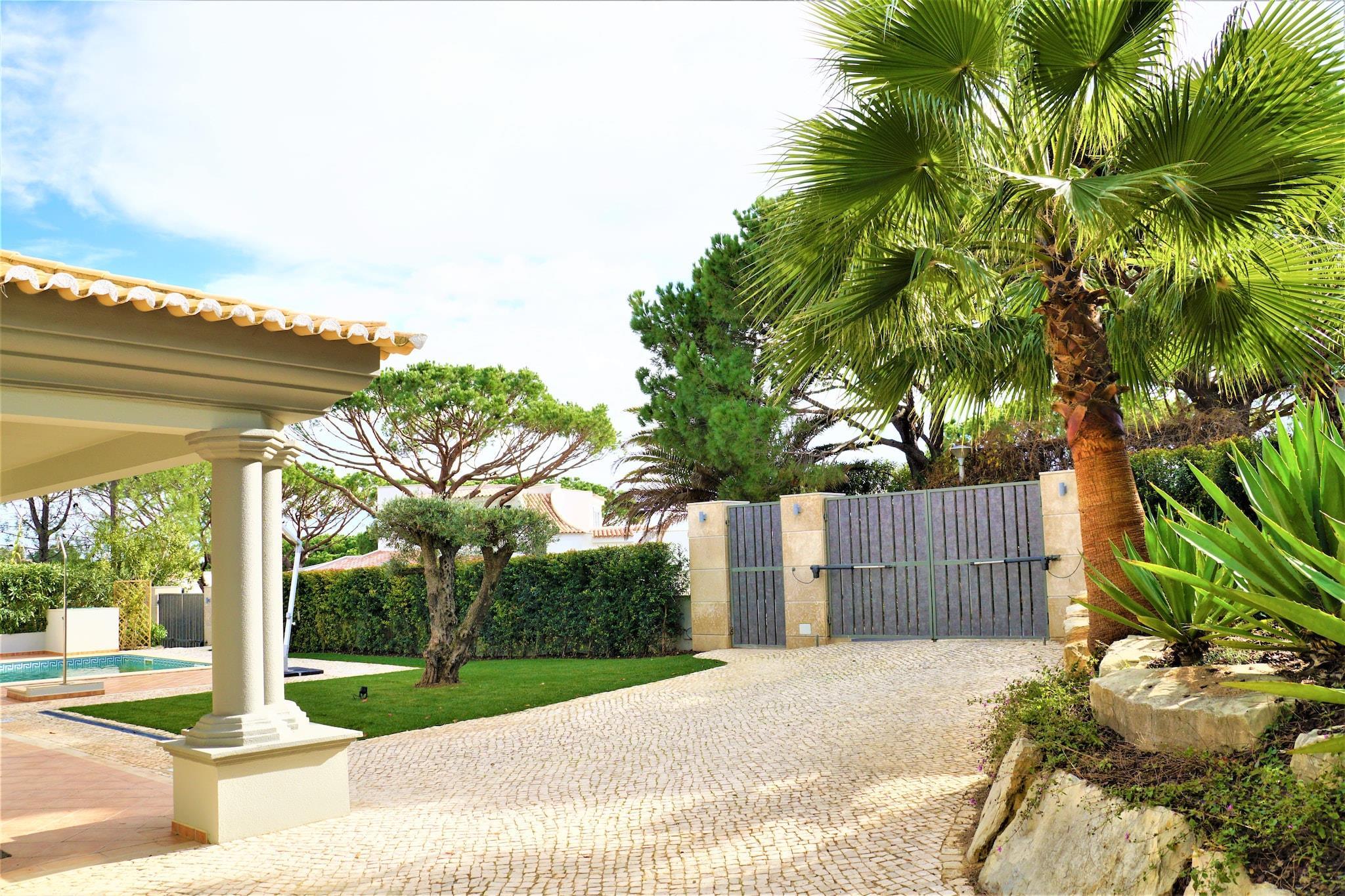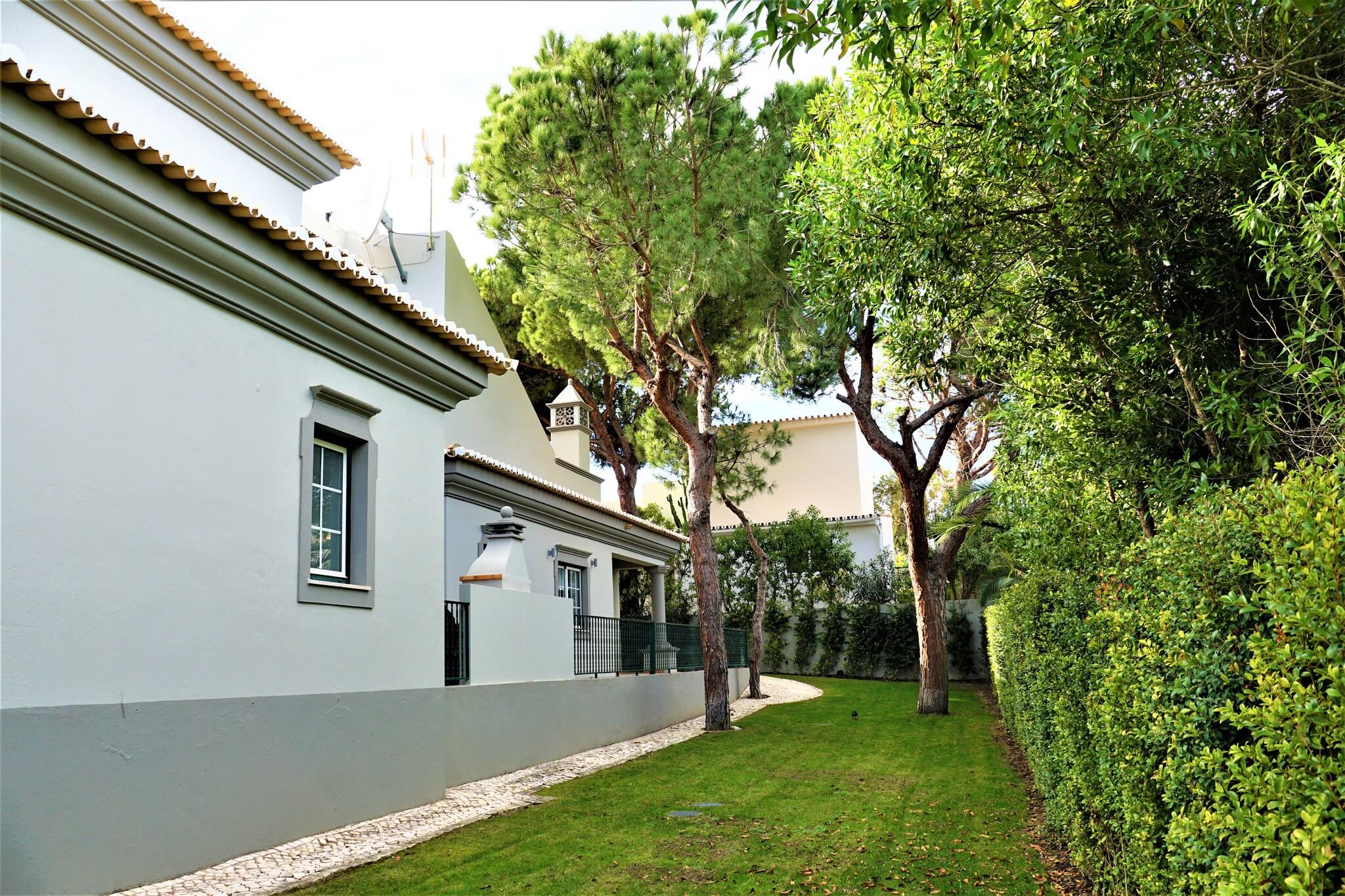 Oplev et udsnit af Algarve-paradiset i denne nyrenoverede villa, perfekt beliggende mellem Quinta do Lago og Vale do Lobo. Kun fem minutters gang fra det gyldne sand kombinerer dette elegante tilflugtssted luksus og komfort med en indbydende, hjemlig følelse. Omgivet af golfbaner i verdensklasse, naturlig skønhed og familievenlige attraktioner er det et sted, hvor afslapning og eventyr går hånd i hånd. Villaen har fire smukt indrettede soveværelser, hver med eget walk-in closet, privat badeværelse med massagebadekar og aircondition for ultimativ komfort. Træd gennem franske døre fra værelserne i stueetagen ud på den solbeskinnede terrasse, hvor liggestole og parasoller inviterer til lange eftermiddage ved poolen. Ovenpå tilbyder private balkoner fredelige hjørner til at læse, nippe til kaffe eller blot nyde den friske havbrise. Master-suiten tilføjer ekstra detaljer som et tv og en værdiboks for nemheds skyld. Indenfor åbner en lys og luftig stue med pejs gennem brede skydedøre ud til poolterrassen, hvilket skaber en problemfri strøm mellem indendørs komfort og udendørsliv. Det fuldt udstyrede køkken gør det nemt at tilberede familiemåltider eller afslappede middage, mens grillområdet bag villaen med udsigt over haven er perfekt til aftener under stjernerne. Fra tagterrassen strækker udsigten sig over fyrreskovene, stranden og ud til det glitrende hav – et idyllisk sted at se solen smelte ned i horisonten. Med højhastigheds-Wi-Fi, aircondition overalt og nærliggende perler som Ria Formosa naturpark, Quinta Shopping og fitnessfaciliteter er denne villa mere end blot et feriehus – det er et fristed for familier og venner, hvor de kan skabe uforglemmelige minder.