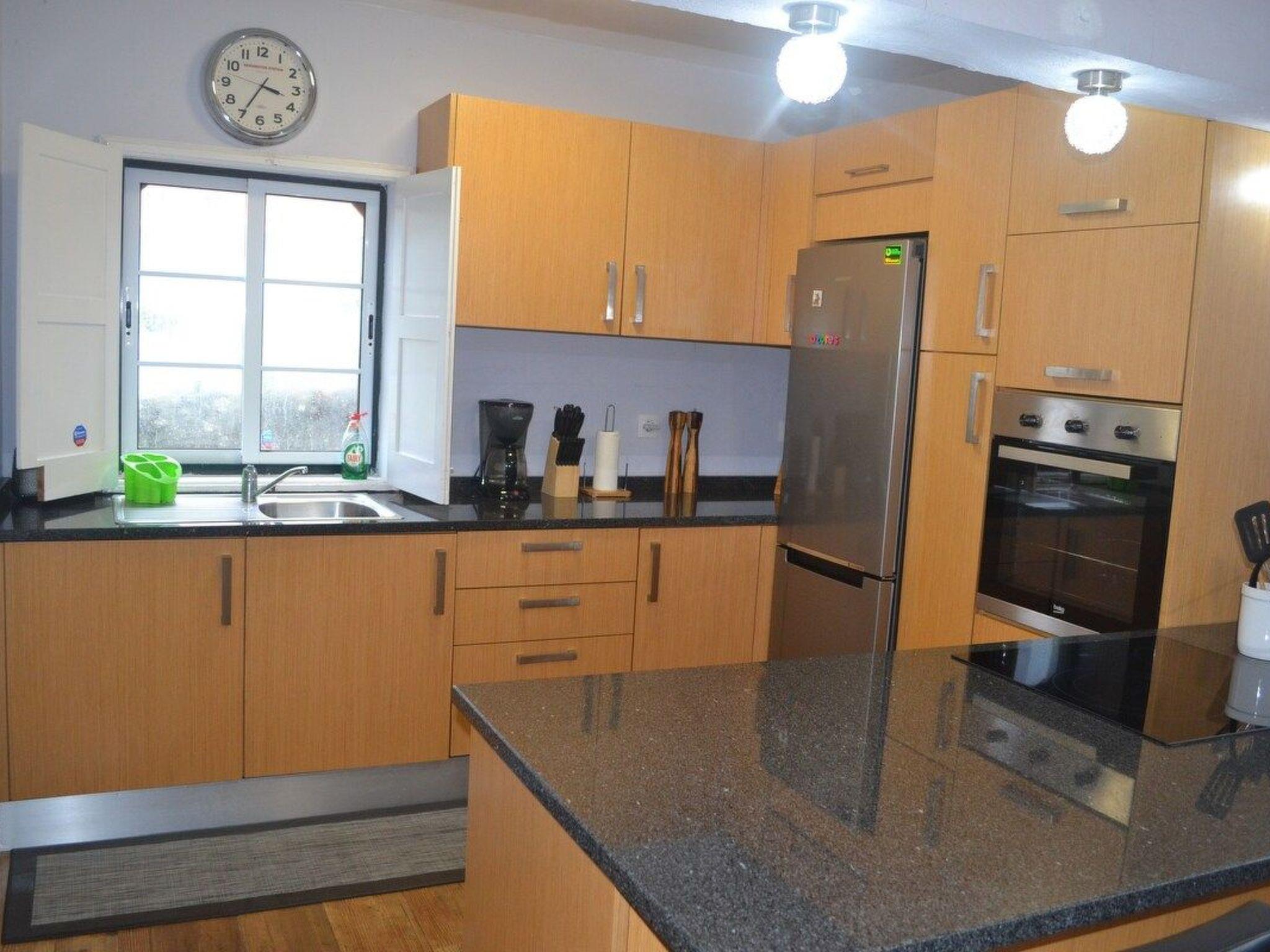 This rustic house is a T3 and has a living room with plasma TV, as well as a kitchen complete with fridge, microwave, toaster, coffee and tea machine and other kitchen utensils. There is a washing and drying machine room.