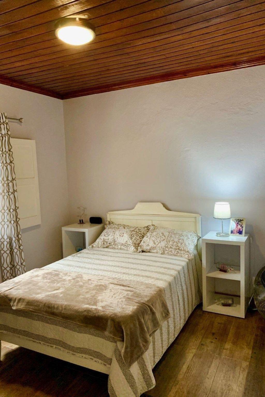 Three bedrooms: two bedrooms and a single bedroom with bedside table and furniture suited to a typical rustic house.