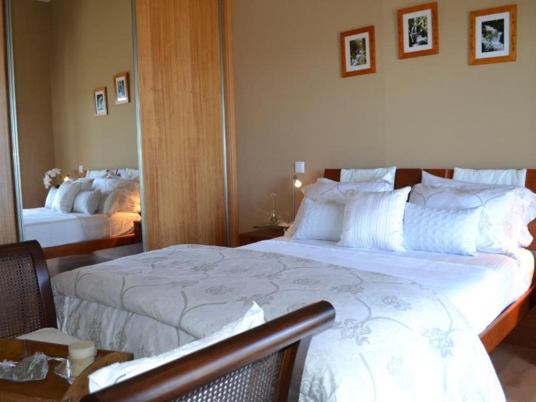Three bedrooms with double beds. It has two complete bathrooms.