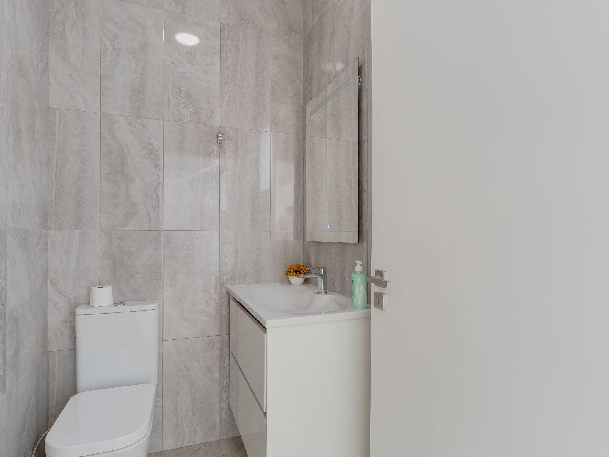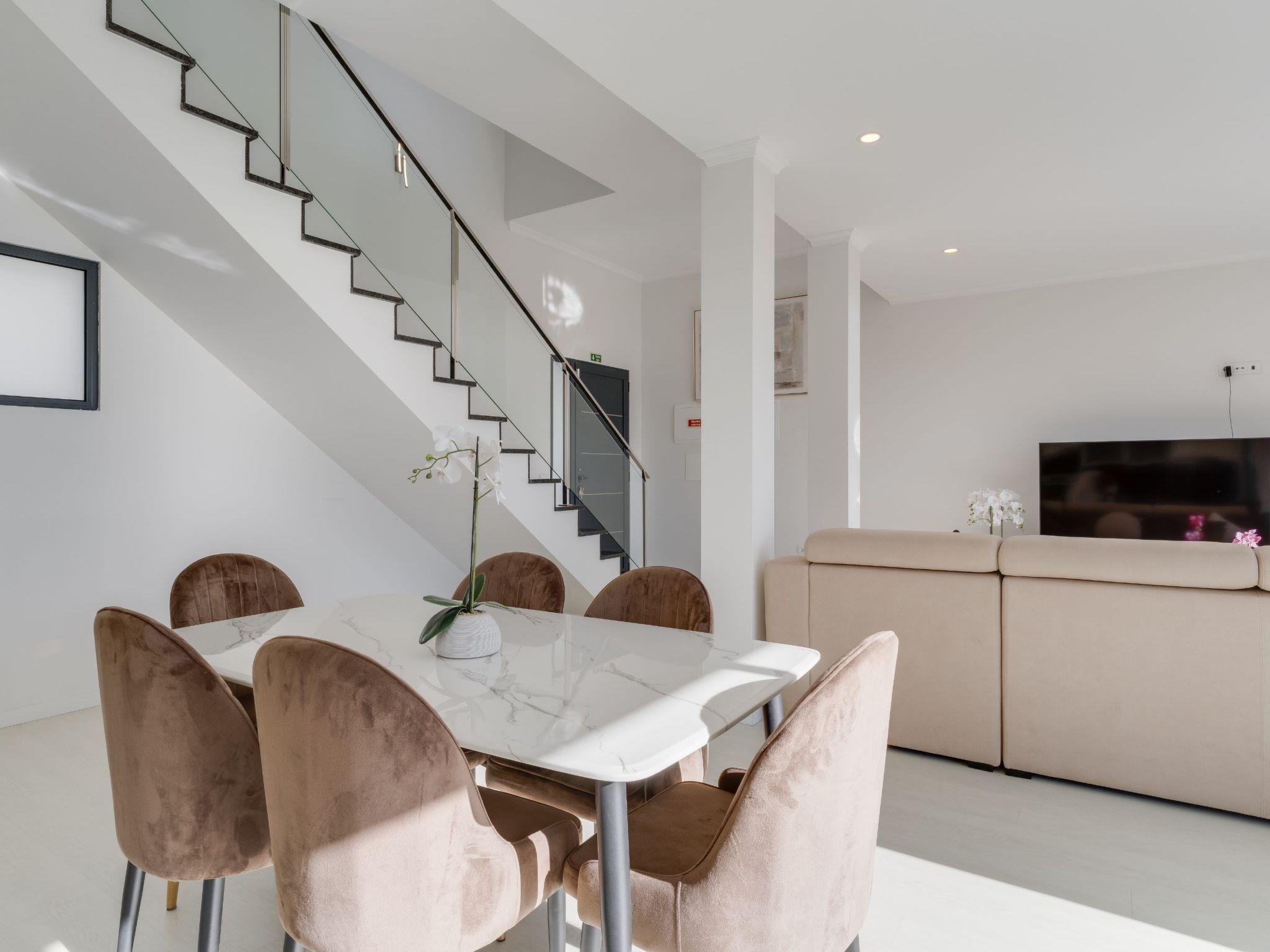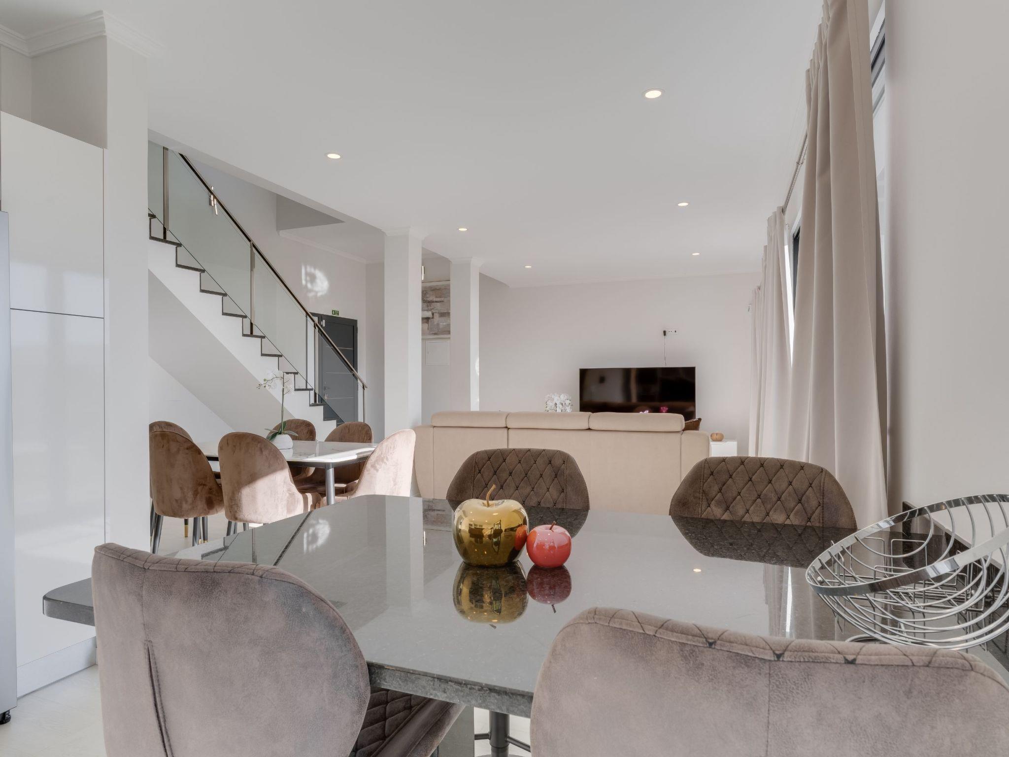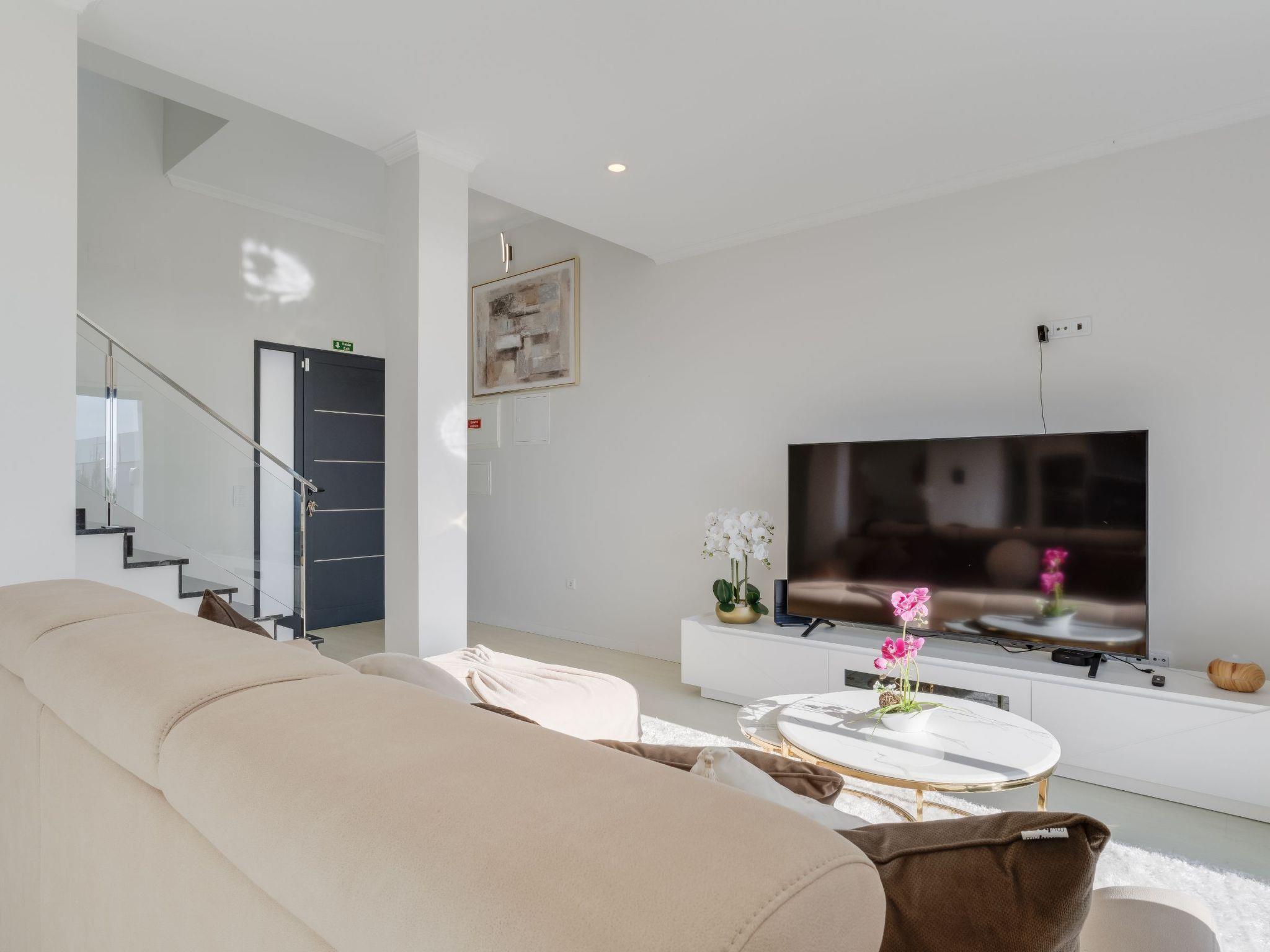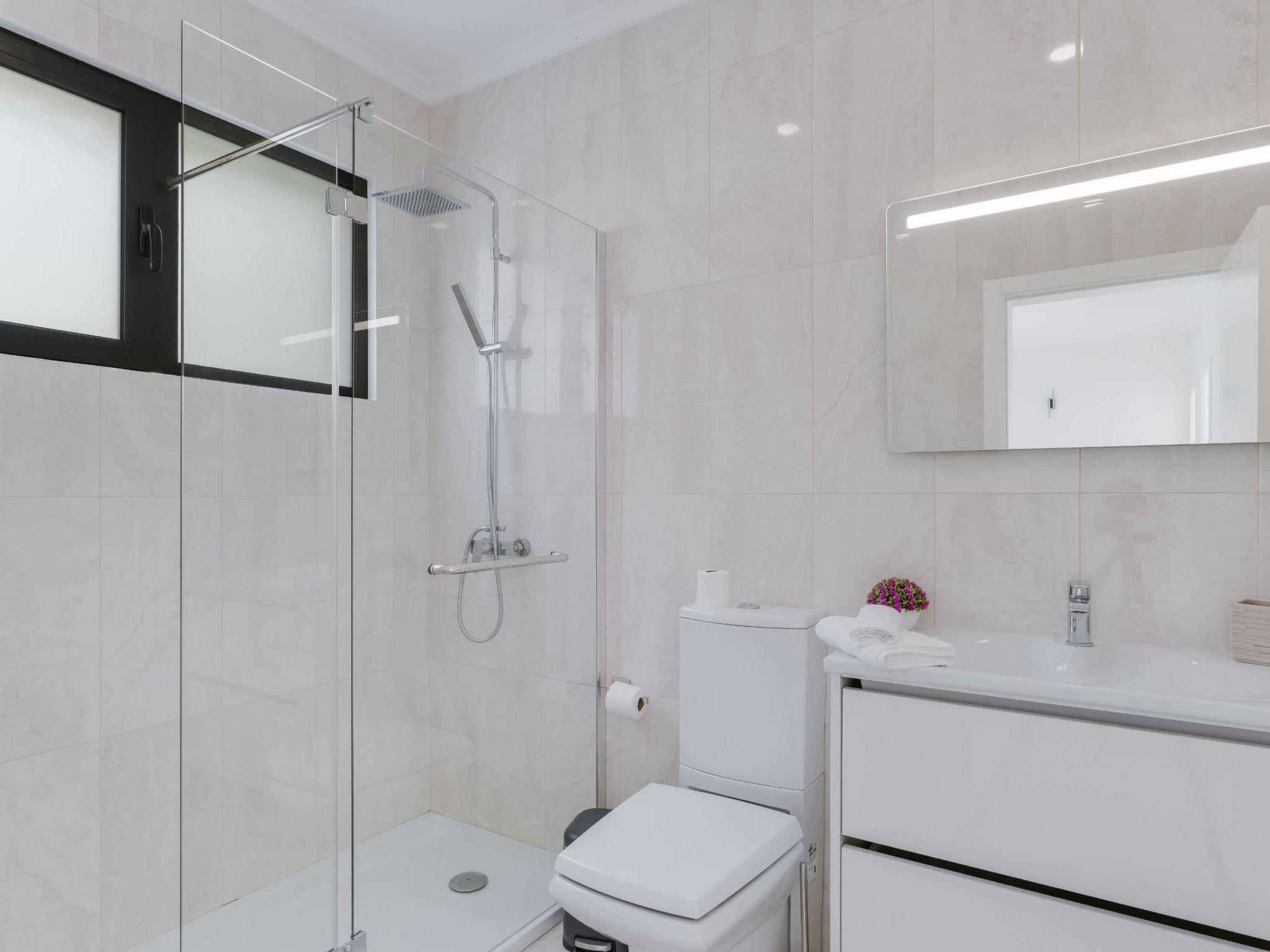 This beautiful kouse air-conditioned 3-bedrooms Villa has all the features to make it the perfect holiday villa, wirth an inside/out living area that with the solarium, pool and barbecue creates a wonderful social area with loads of natural light and an extremely high quality.The living area is totally open plan and comprises a seating area with flat-screen cable TV, dining table and a fully equipped kitchen. An adjoining shower room can be found off the living area, as can a laundry room.Upstairs, there are two bedrooms with king-sized double beds and en-suite shower rooms and sea-view, with the front balcony. The third bedroom have two single beds and share the family shower room.