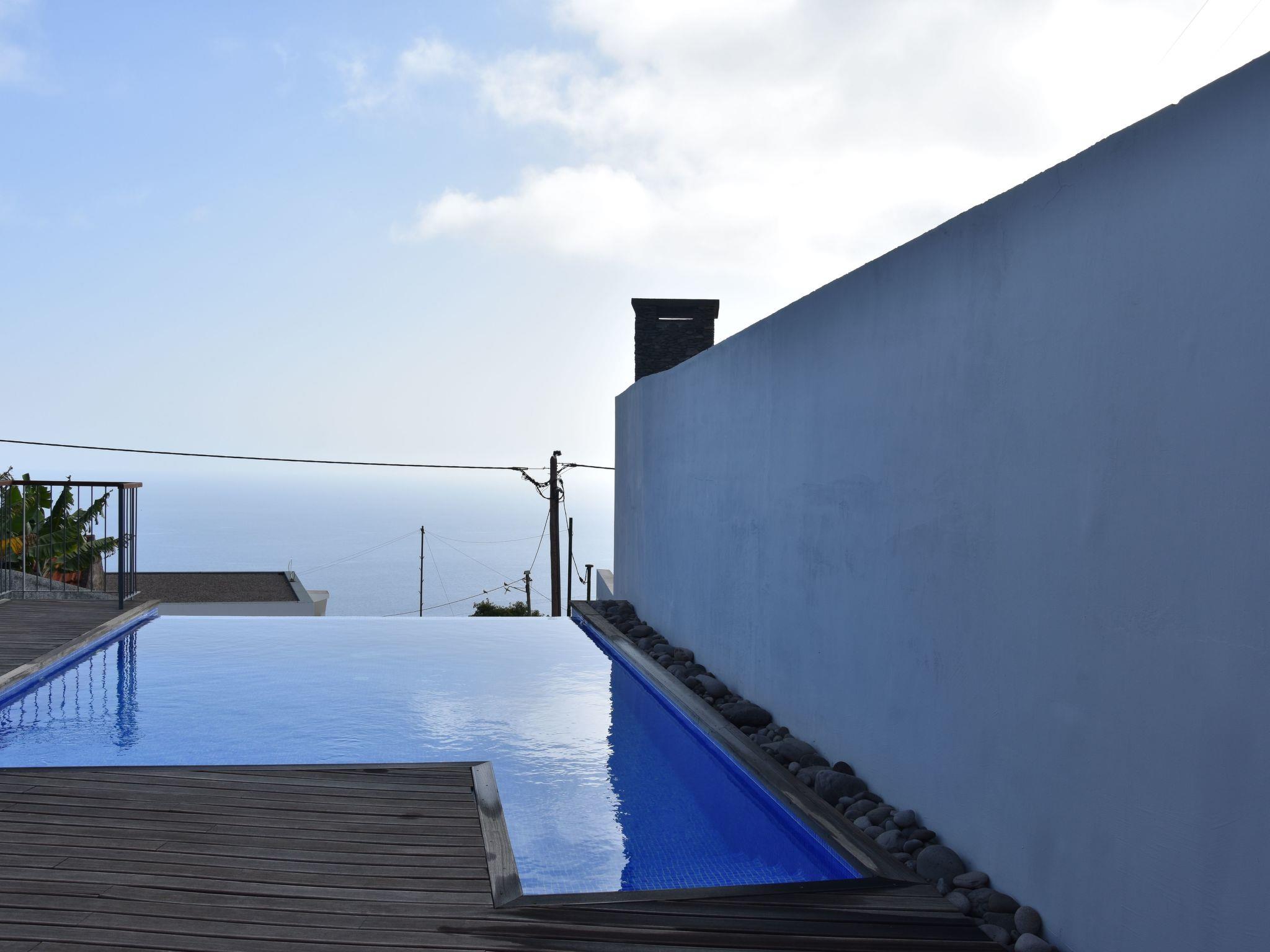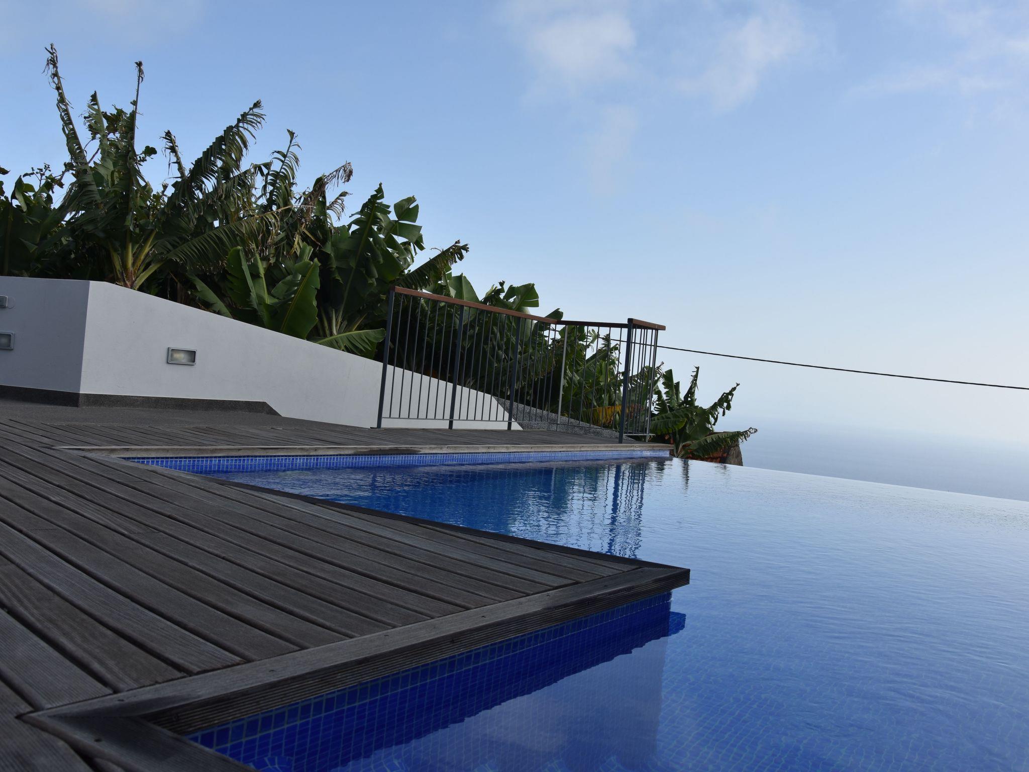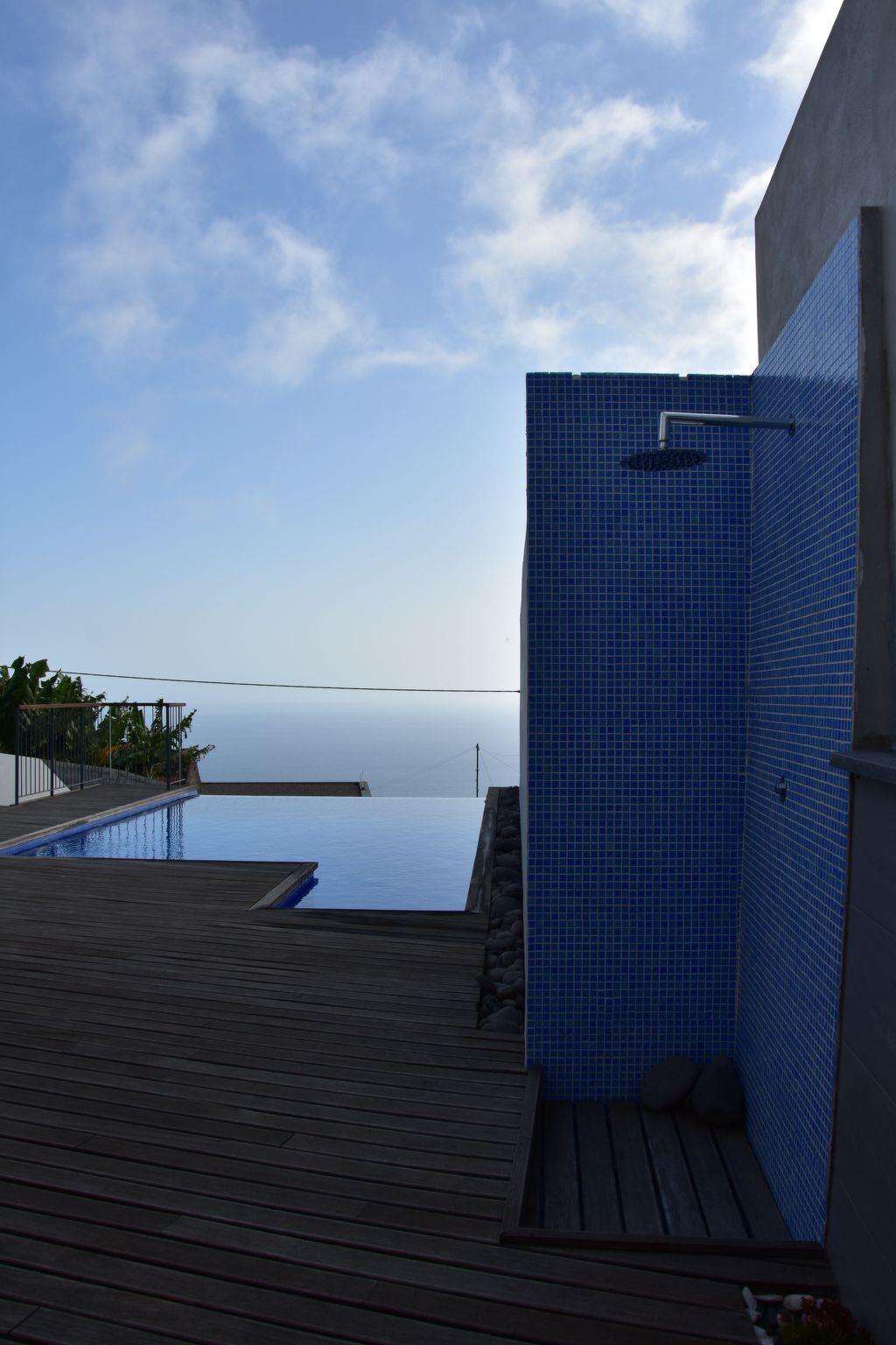 This exclusive holiday villa with modern decor is located in the enchanting parish of Estreito da Calheta, on the southwest coast of the sunny Portuguese island of Madeira. It stands out for its minimalist style, relaxing environment and green spaces, where silence and rest predominate.