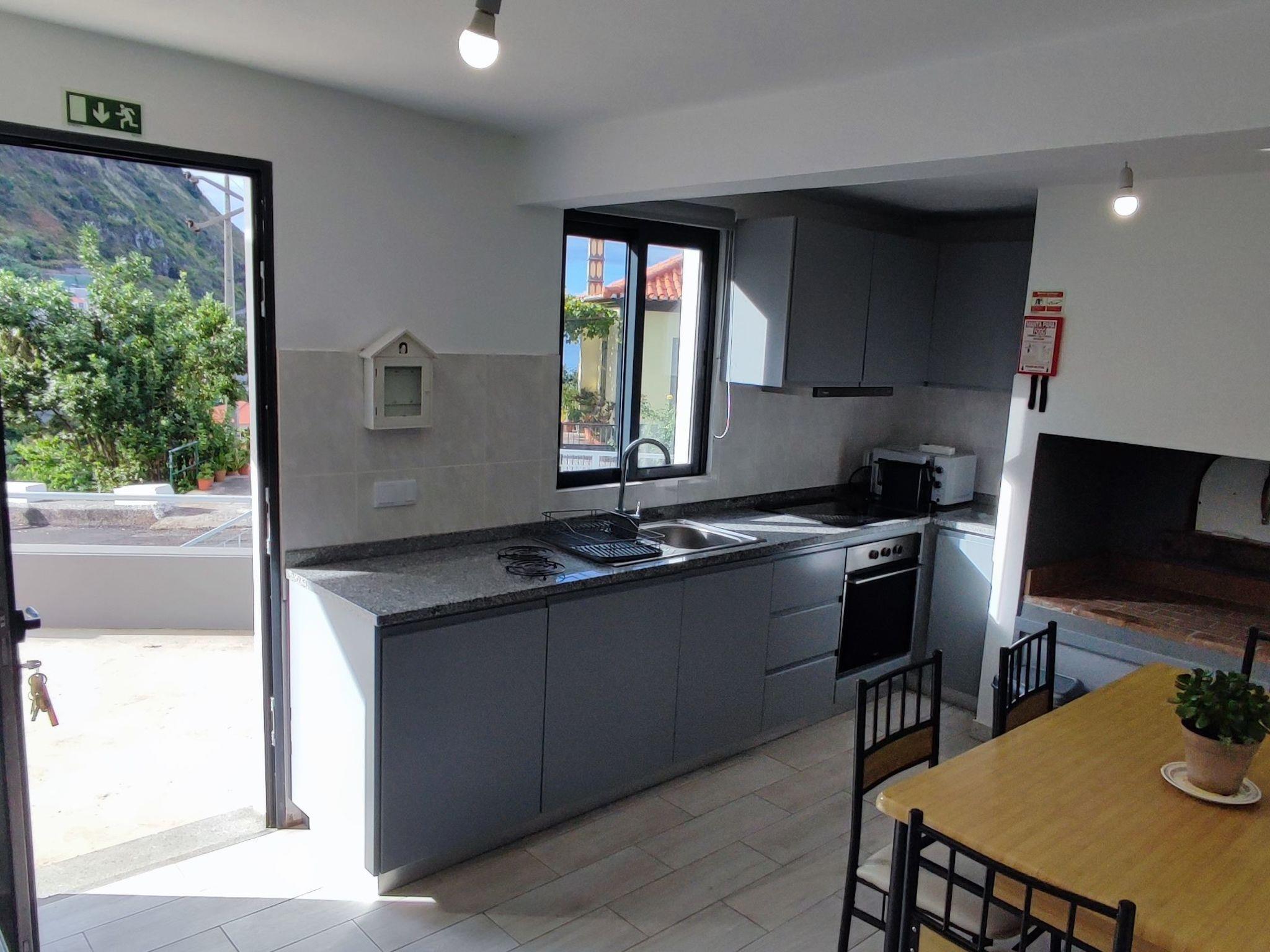 Step outside and immerse yourself in the property’s charming exterior. The area reveals a stunning landscape shaped by its semi-circular valley, affectionately named Arco da Calheta due to its arch-like array of settlements. This unique geographical feature offers views of an amphitheater-shaped valley and escarpments that overlook the community, seamlessly blending with the natural beauty of the surrounding laurisilva forests and barren mountain vegetation.