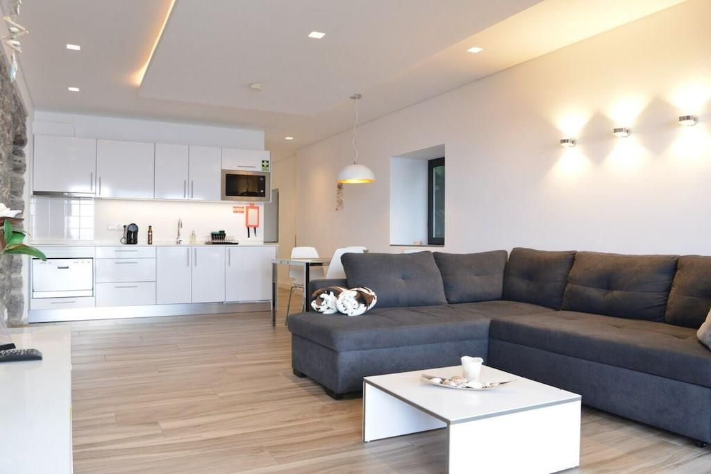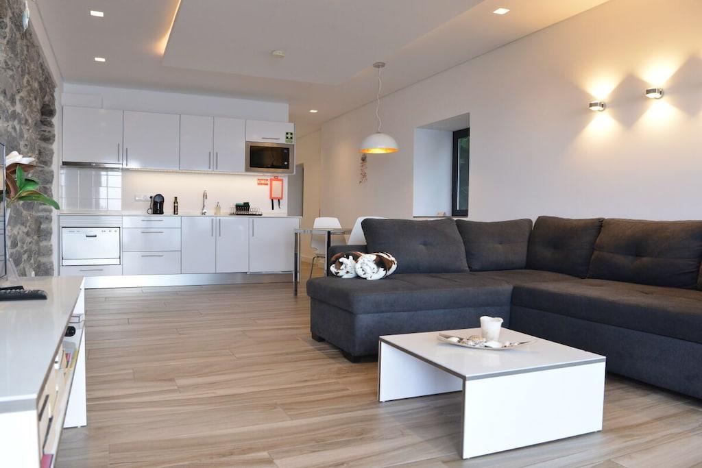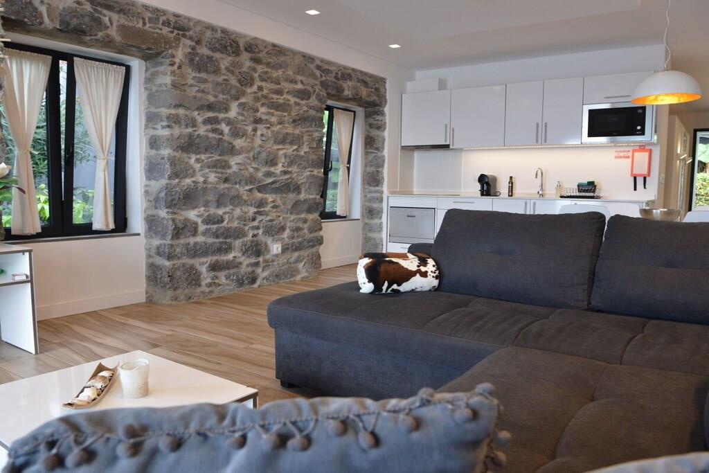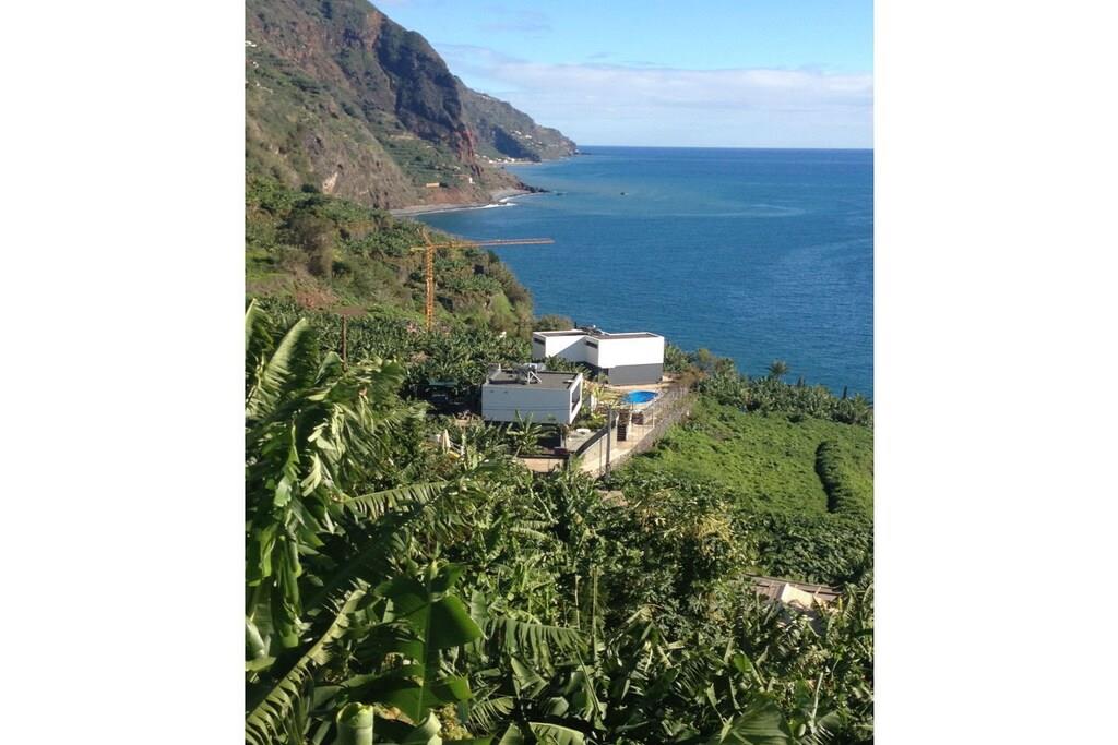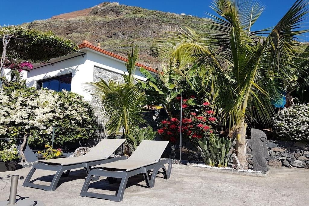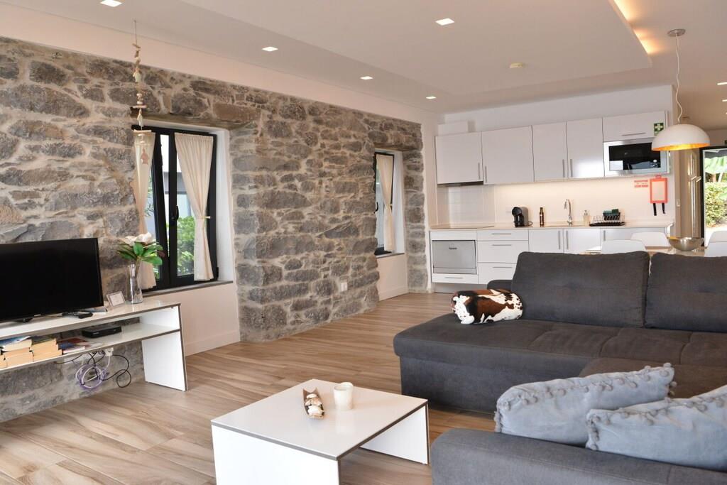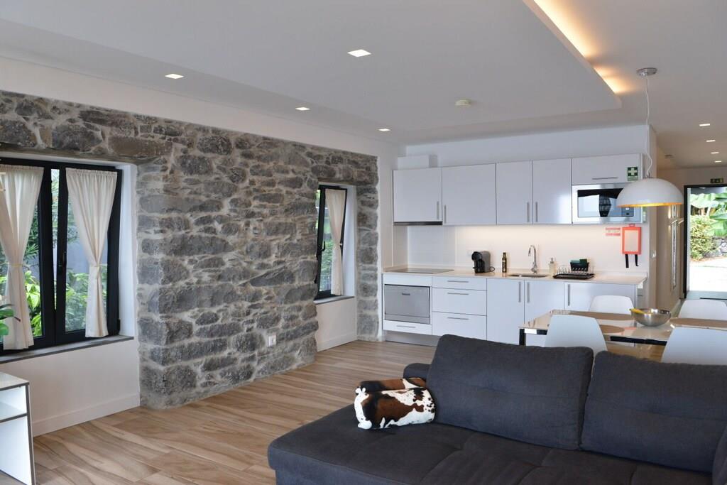 Lejlighed Villa Palmeira: Oprindeligt lå der et gammelt herregårdshus fra Madeira med tykke basaltmure på dette sted. Bygningens tilstand, såvel som vores høje standarder for arkitektur og kvalitet, udelukkede en simpel renovering. I stedet valgte vi en symbiose af moderne arkitektur og bevarelsen af de karakteristiske basaltstenmure. Projektet blev afsluttet i april 2016. Villa Palmeira tilbyder den ideelle planløsning til to personer og har en spektakulær terrasse med udsigt over poolområdet og havet.