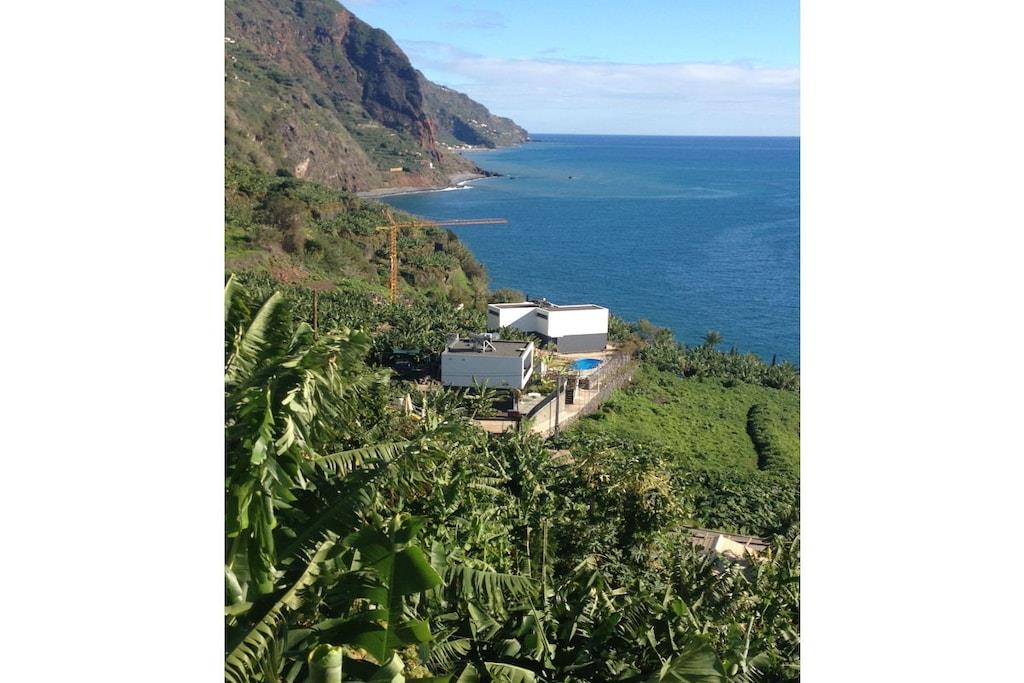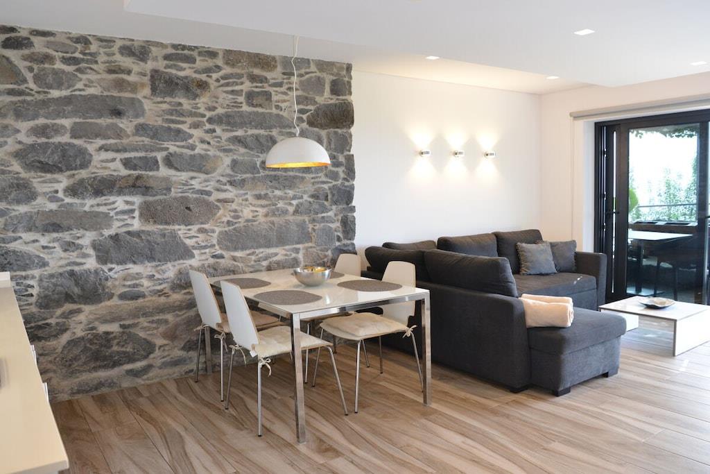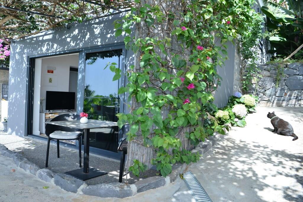 Lejlighed Villa Rosa: Oprindeligt lå der et gammelt herregårdshus fra Madeira med tykke basaltmure på dette sted. Bygningens tilstand, såvel som vores høje standarder for arkitektur og kvalitet, udelukkede en simpel renovering. I stedet valgte vi en symbiose af moderne arkitektur og bevarelsen af de karakteristiske basaltstenmure. Projektet blev afsluttet i april 2016. Villa Rosa, der ligger i stueetagen, er den eneste lejlighed i komplekset med to soveværelser og to badeværelser. En rummelig, traditionel gårdhave foran huset inviterer dig til at slappe af. Ideel til familier med børn eller to par.