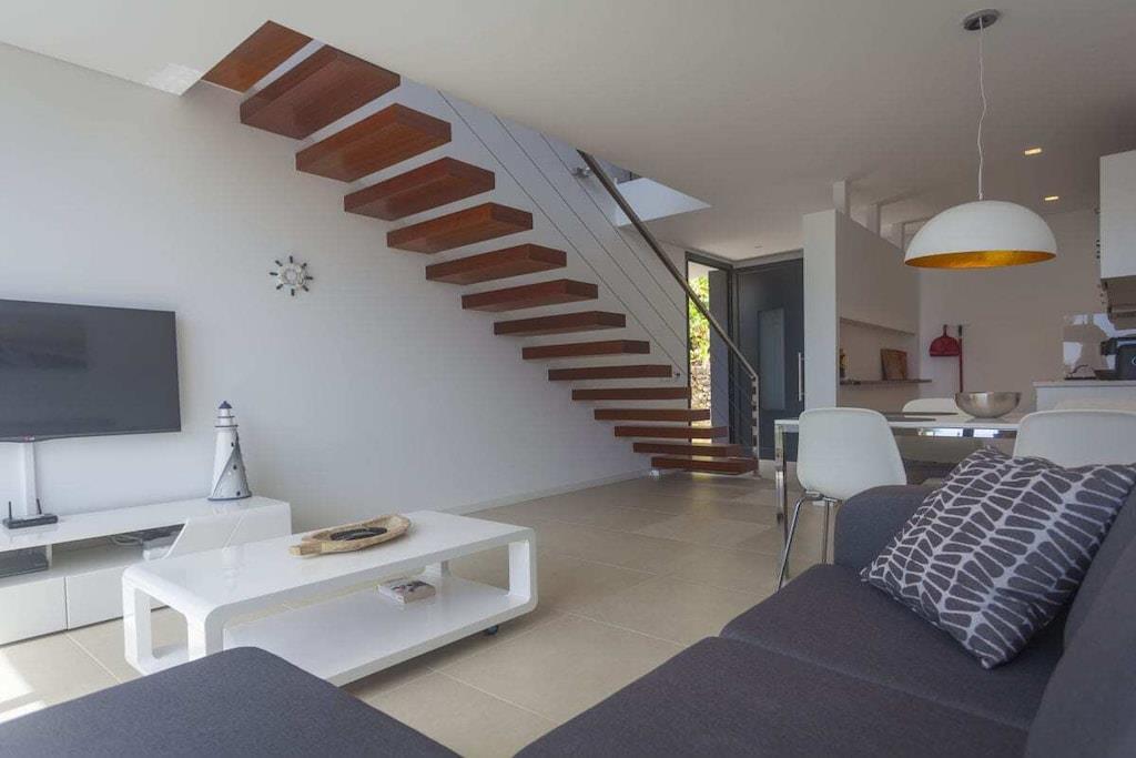 Slap af med stil, nyd livet og nyd det. Casa Nenufar blev bygget specielt til dette formål i 2013. Lejligheden har to etager forbundet af en fritstående trappe. Hele strandpromenaden er udstyret med store skydevinduer. Når opholdsstuen er åben, flyder den problemfrit ud til terrassen, der ligger omgivet af den smukt anlagte grund. Stilen er ren og moderne, men alligevel indbydende. Smagfulde møbler af høj kvalitet lader intet tilbage at ønske. Den intelligente arkitektur giver mulighed for en perfekt planløsning med maksimal privatliv.