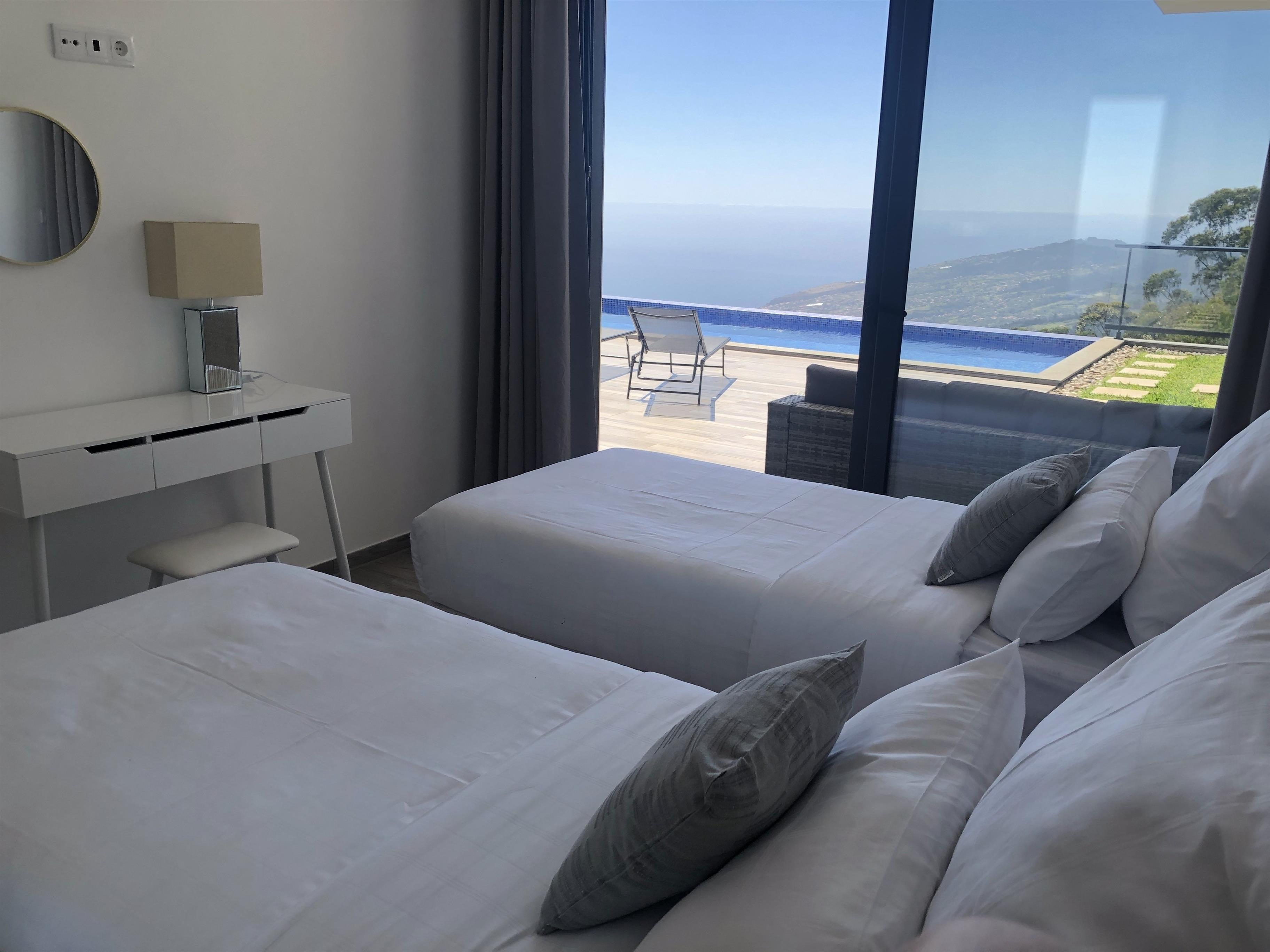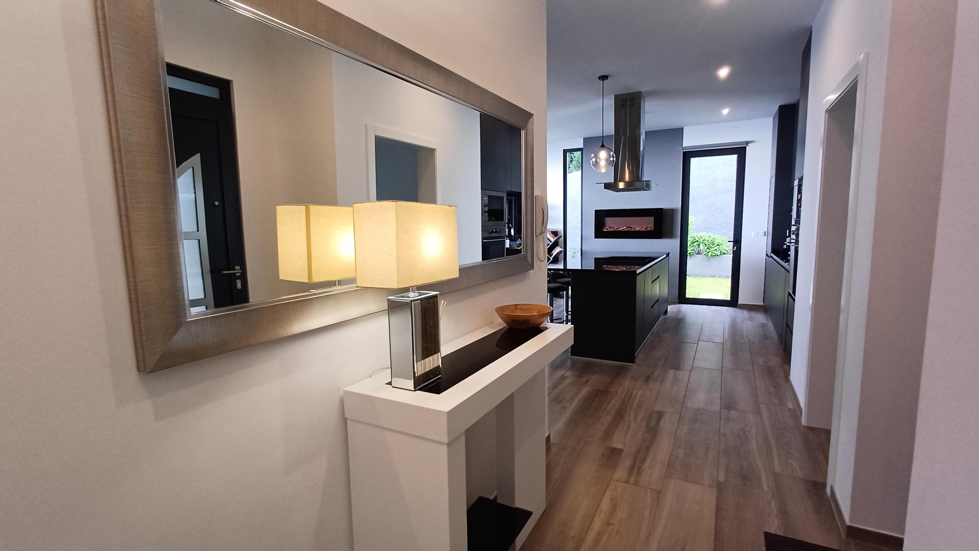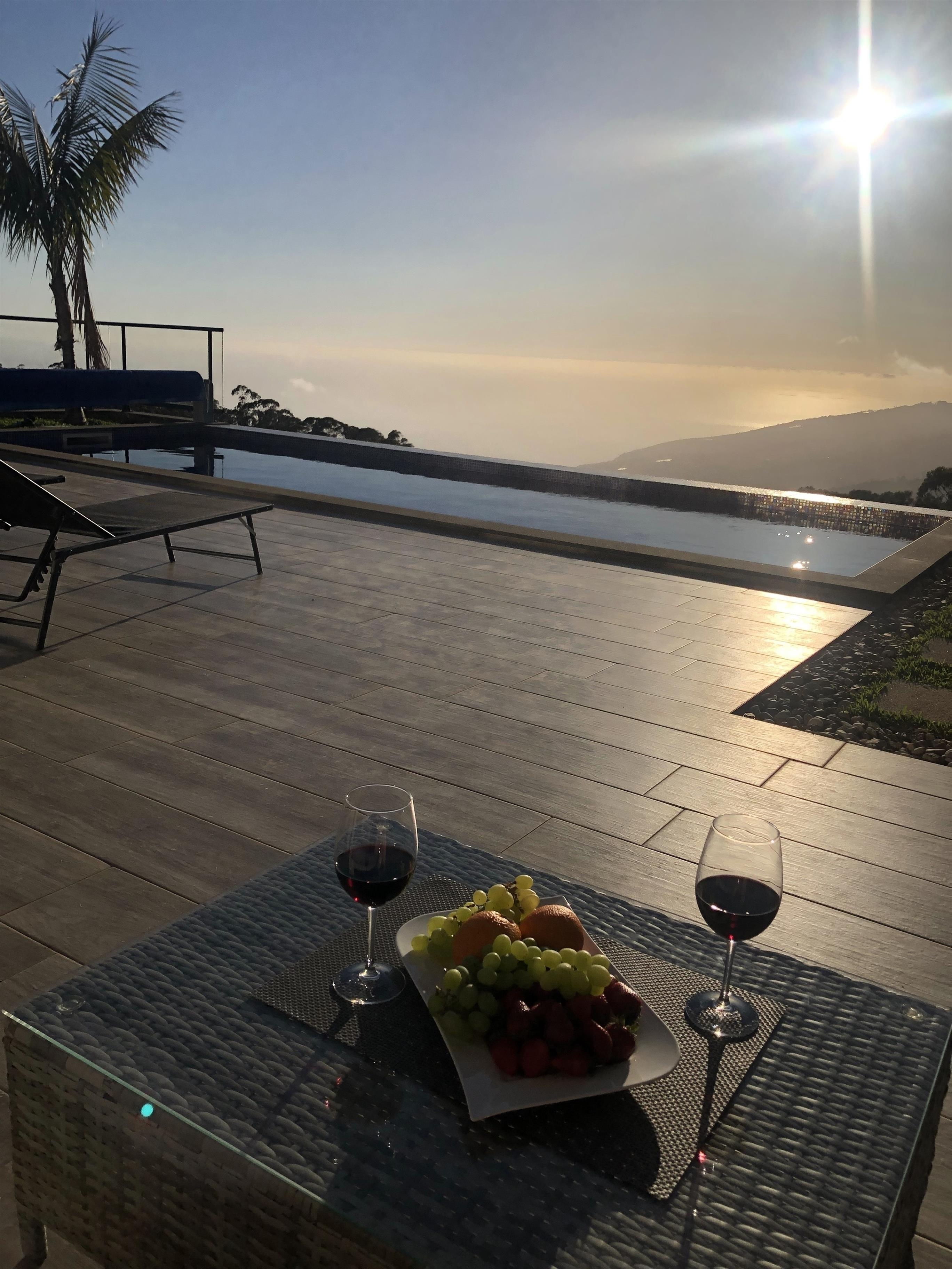 Neubau über den Dächern von Calheta in Mitten des örtlichen Eukalyptuswaldes. Genießen Sie die traumhafte Aussicht, egal ob im beheizbaren Pool, an der Feuerstelle oder beim Grillen. Die Außenanlagen und großzügige Terrasse lässt keine Wünsche offen.