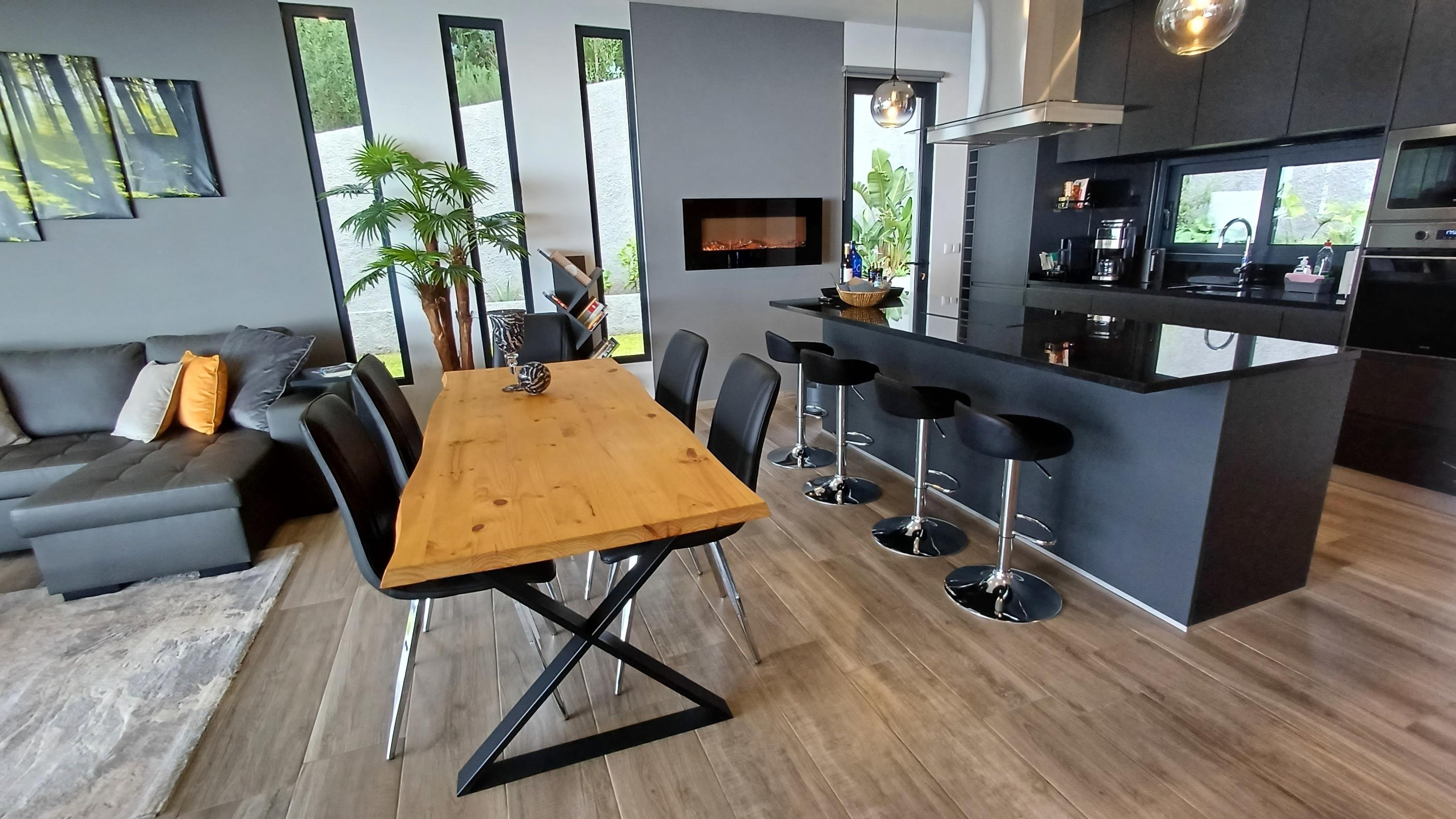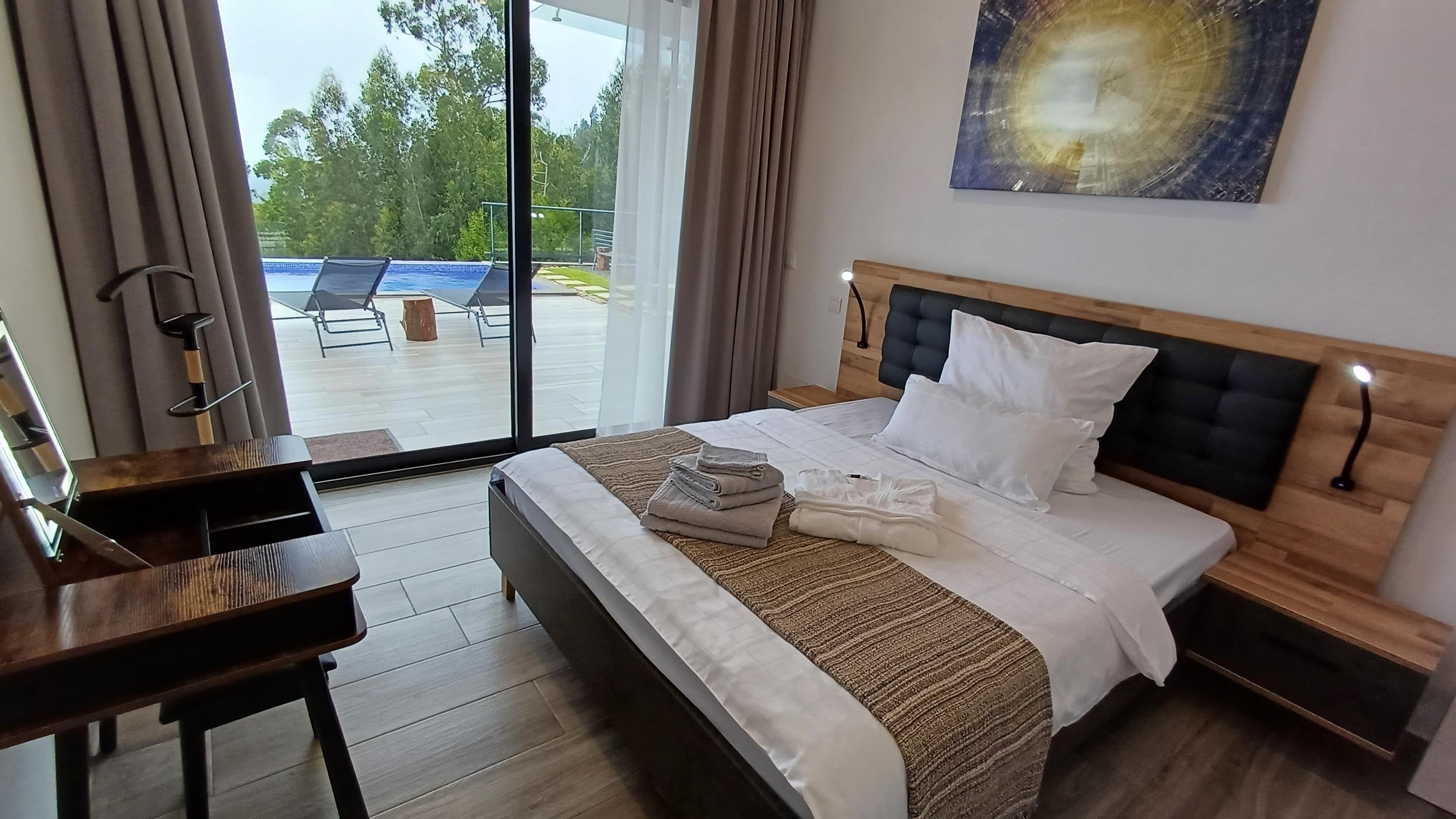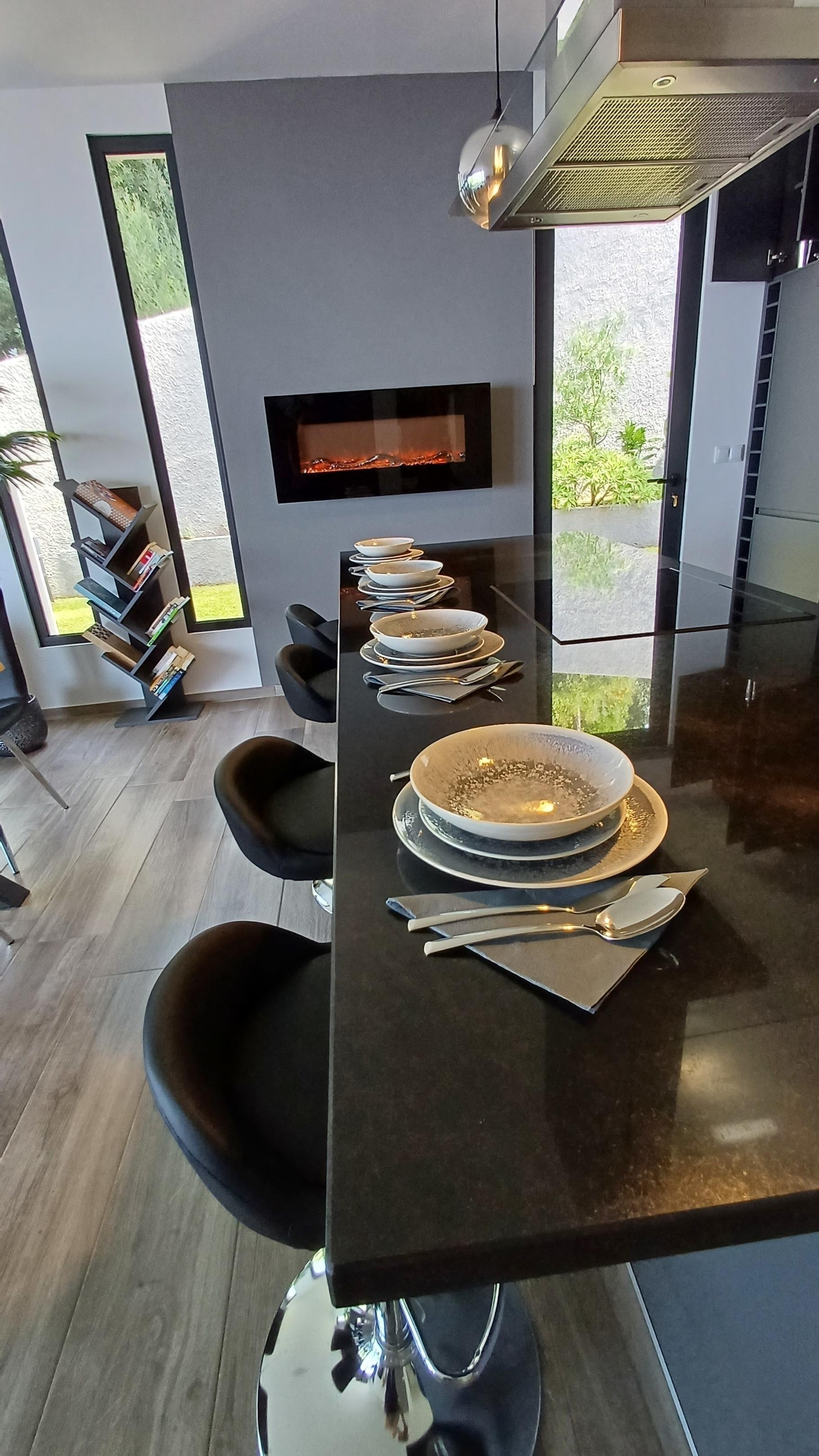 Neubau über den Dächern von Calheta in Mitten des örtlichen Eukalyptuswaldes. Genießen Sie die traumhafte Aussicht, egal ob im beheizbaren Pool, an der Feuerstelle oder beim Grillen. Die Außenanlagen und großzügige Terrasse lässt keine Wünsche offen.