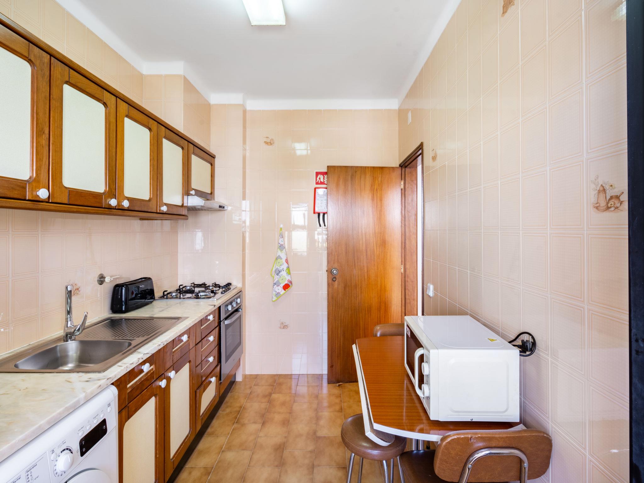 "Quinta do Torrejão", 3-room apartment 67 m2 on 1st floor. Practical and beautiful furnishings: living/dining room with open-hearth fireplace (only for decoration), dining table, TV, electric heating and air conditioning. Exit to the balcony. 1 room with 1 bed (140 cm, length 185 cm). 1 room with 2 beds (90 cm, length 190 cm). Kitchen (oven, 4 gas rings, toaster, kettle, microwave, freezer, electric coffee machine) with dining table. Exit to the balcony. Shower/WC. Heating not available in all rooms. Balcony, terrace 21 m2. Balcony furniture, barbecue. Distant view of the sea. Facilities: washing machine, iron, children's high chair, baby cot. Internet (WiFi, free). Please note: non-smokers only. Fire extinguisher. 66053/AL