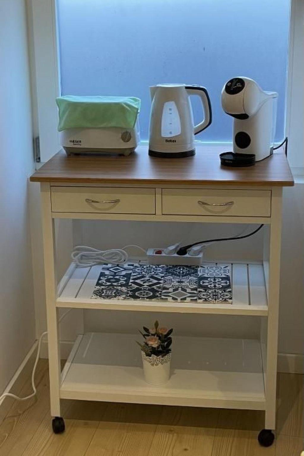 The kitchen is equipped with everything you need: microwave, coffee maker, toaster and kettle.