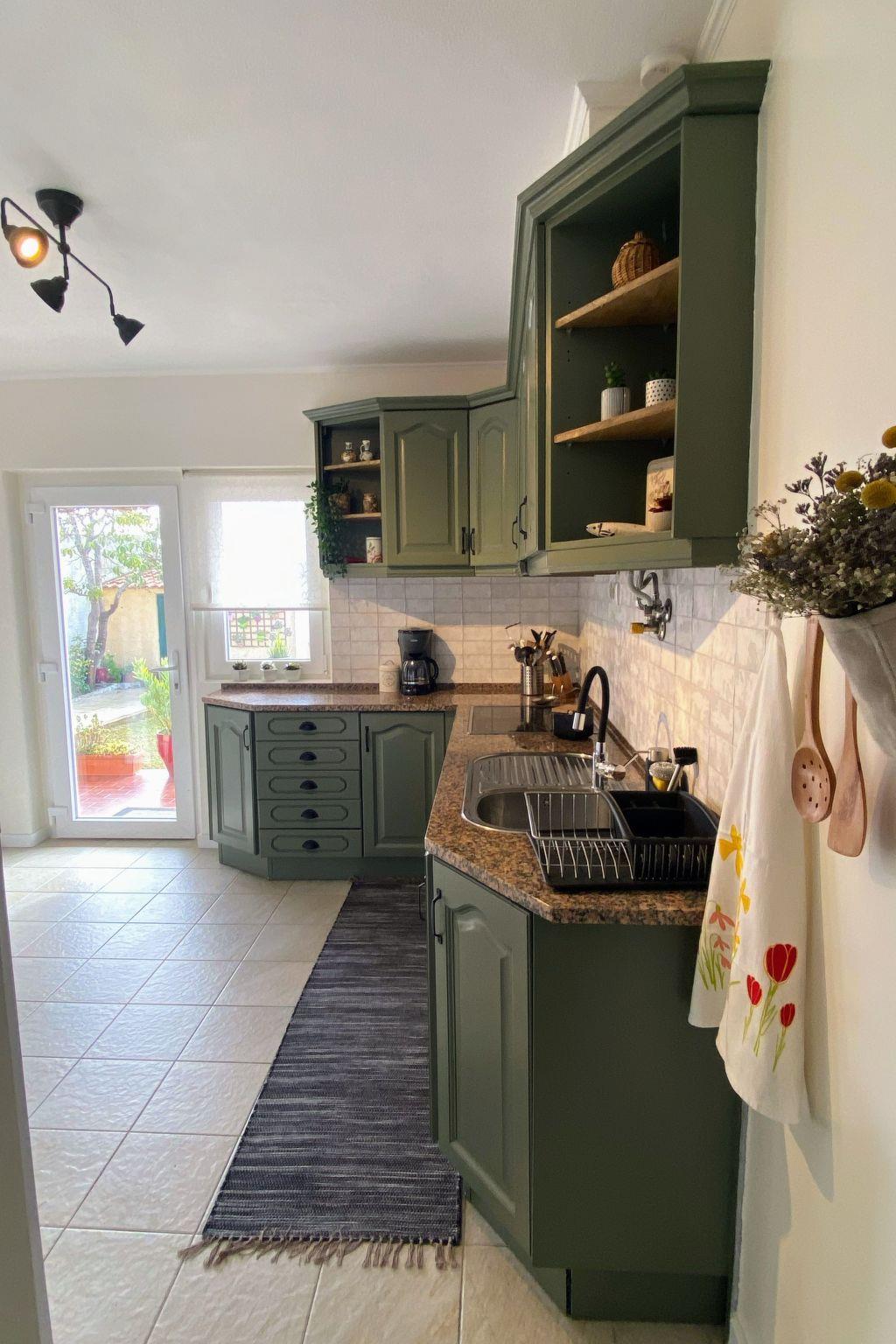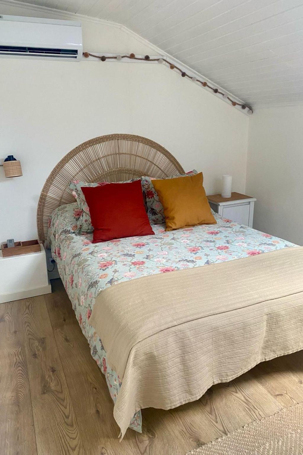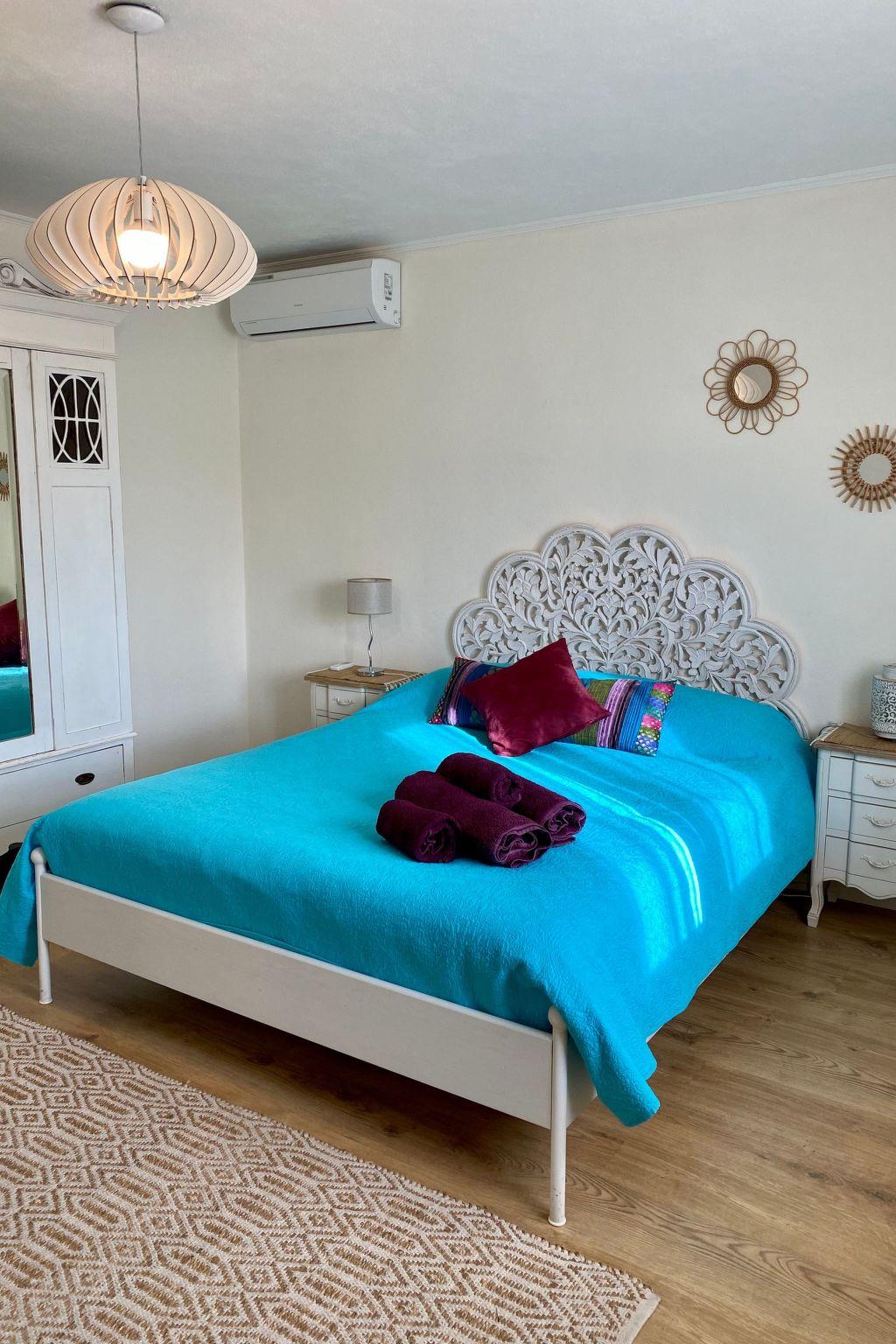 The detached house was built 30 years ago and was recently restored, in order to bring it up to the requisite holiday house standards. Here you can enjoy the amazing weather, the peacefulness of the surroundings and the lovely beaches and breathtaking landscape. The 140m² two-storey villa has five bedrooms, of which four have a double bed and one has a single bed. Two of the five bedrooms are on the ground floor, while the other three are on the upper floor. All of them are tastefully decorated and are light and inviting. The ground floor has a bathroom with a bath and WC. On the upper floor there is the second bathroom with a shower and WC. There is also a single bed in the upstairs hallway. The centrepiece of the house is the living room with an open fireplace, a comfortable sofa, a TV and a dining area, with an adjoining kitchen equipped with all the basics, as well as a dishwasher. There is another kitchen in the garage.