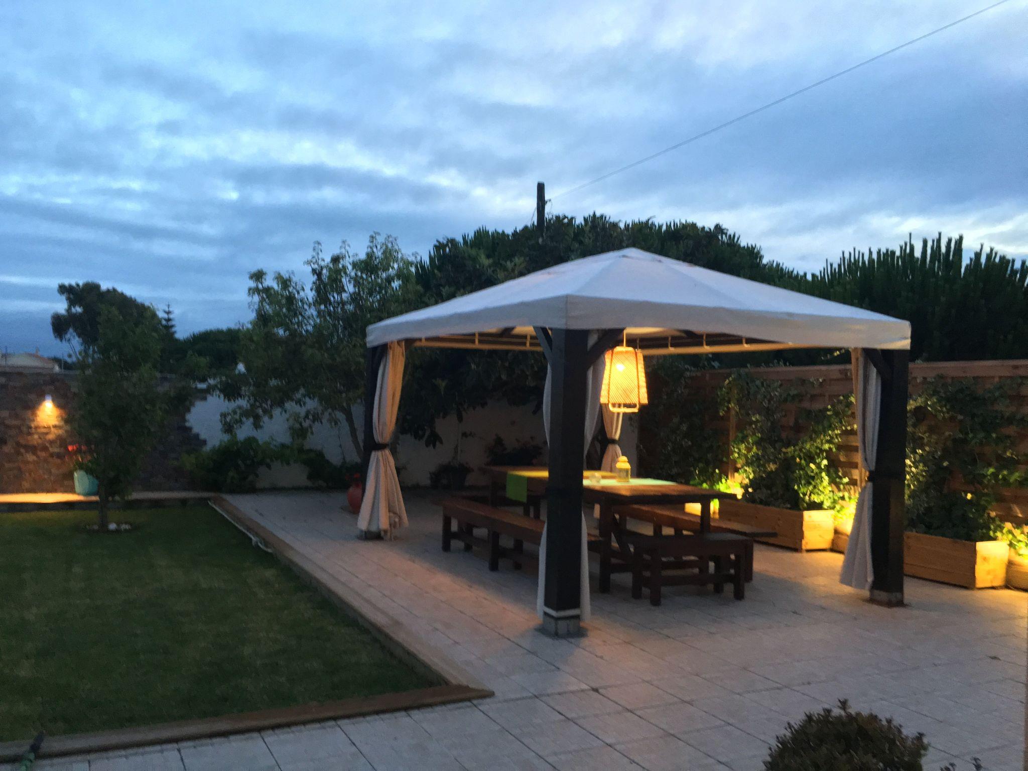 The veranda provides access to the garden, where you can relax on the big lawn, children can play in the paddling pool and there are plenty of deckchairs. You can sit comfortably under a gazebo. Five bicycles are available for use. Two car parking spaces are provided.