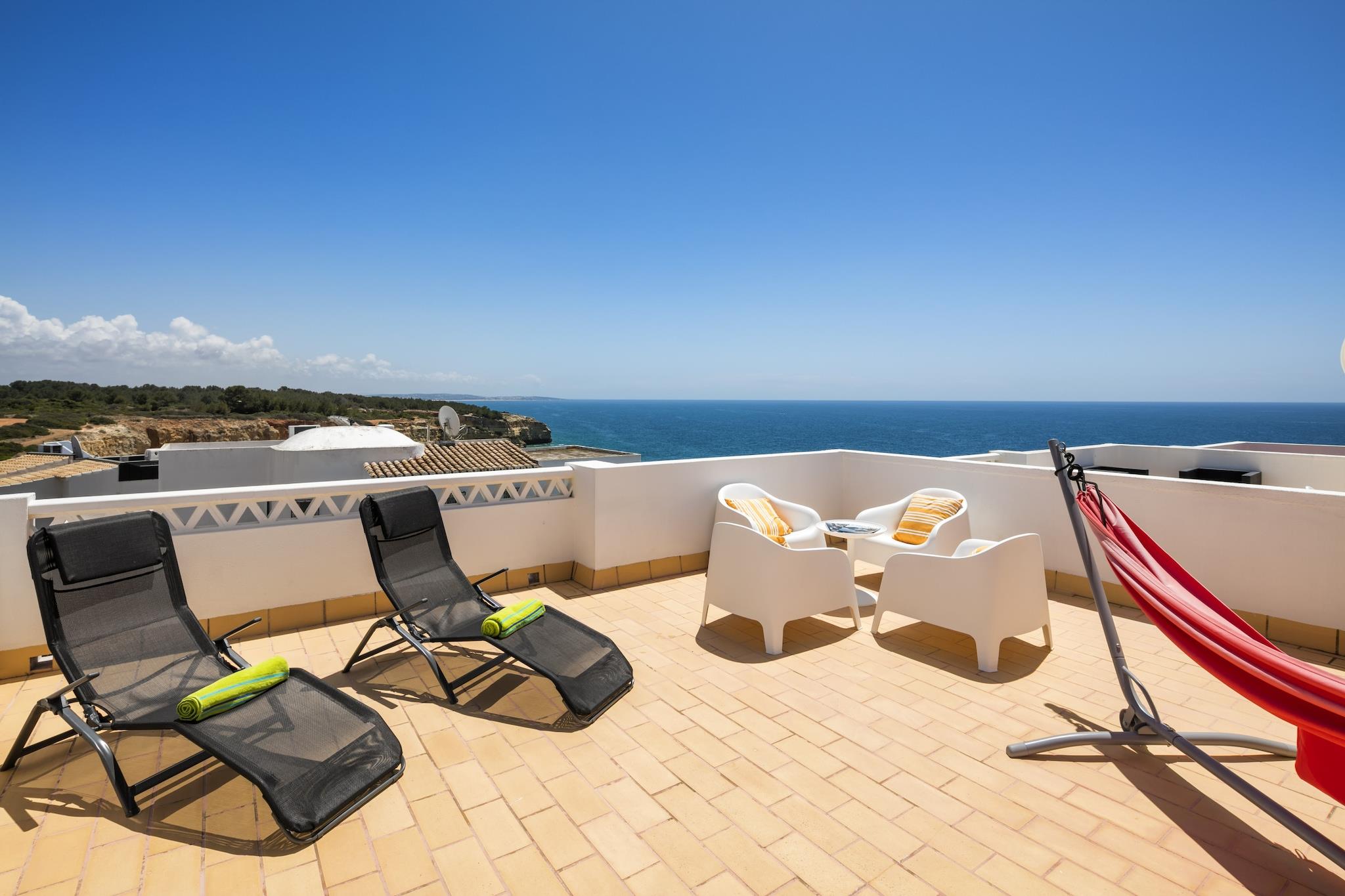 Flygt til den charmerende kystby Benagil, hvor du kan fordybe dig i den fredfyldte skønhed i dette fantastiske feriehus. Kun få skridt fra den betagende Praia de Benagil-strand tilbyder denne moderne og komfortable indkvartering et ideelt fristed for familier, par og vennegrupper, der søger en uforglemmelig kystoplevelse. Med sin indbydende atmosfære og førsteklasses beliggenhed venter din drømmeferie. Indenfor har ejendommen to smukt indrettede soveværelser, der komfortabelt kan rumme op til fire gæster. Det luksuriøse hovedsoveværelse har en kingsize seng, mens det andet soveværelse er indrettet med to individuelle senge, hvilket sikrer afslappende nætter for alle. Med tre badeværelser - inklusive et med et afslappende badekar - kan gæsterne nyde en spa-lignende oplevelse, når de ønsker det, hvilket tilføjer et ekstra strejf af bekvemmelighed til dit ophold. De pulserende omgivelser inviterer til udforskning og eventyr, med en række attraktioner, der bare venter på at blive opdaget. Tag en kort køretur til den charmerende by Praia de Carvoeiro, hvor hyggelige butikker og dejlige spisesteder langs de maleriske gader. For golfentusiaster er der flere fantastiske baner i nærheden, som giver maleriske udsigter og udfordrende leg. Naturelskere vil sætte pris på de vidtstrakte vandrestier langs den betagende kystlinje og den fængslende skønhed i Algarves naturparker. Gå ikke glip af muligheden for at besøge de ikoniske Benagil-huler, kendt for deres spektakulære klippeformationer og krystalklare vand. Uanset om du leder efter en afslappende familieferie, en romantisk flugt eller en mindeværdig tur med venner, fungerer denne enestående Benagil-indkvartering som den perfekte base for at udforske Algarves vidundere.