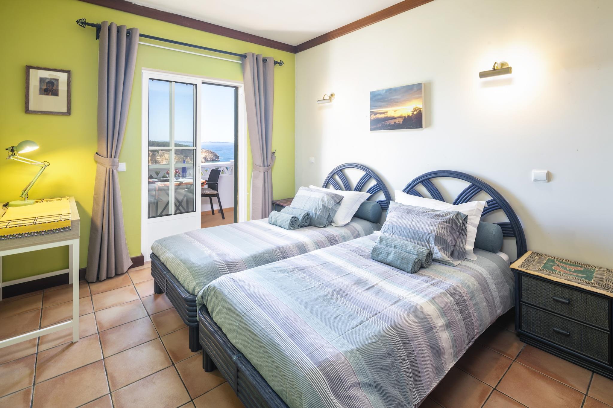 Beliggende i den charmerende kystby Benagil, er dette indbydende feriehus et fristed for familier, par og grupper af venner, der søger en mindeværdig flugt. Med en betagende havudsigt, der byder dig velkommen hver morgen, og sandstrande kun en afslappet gåtur væk, fungerer denne ejendom som en dejlig base for at udforske den maleriske Algarve-region. Den fredfyldte atmosfære og fantastiske landskaber gør det til en ideel ramme for at skabe varige minder. Med nærliggende attraktioner såsom den fantastiske Praia de Benagil og den berømte Vale do Milho Golf, er der noget for enhver smag i denne dejlige oase. Uanset om du søger afslapning eller eventyr, lover dette feriehus i Benagil en uforglemmelig oplevelse i hjertet af Algarve. Indvendigt har hjemmet to rummelige soveværelser designet til at give komfort og afslapning for op til fire gæster. Hovedsuiten, der er udsmykket med en overdådig kingsize seng, tilbyder en rolig flugt, mens det andet soveværelse er udstyret med to individuelle senge - perfekt til venner eller børn. Nyd bekvemmeligheden ved et moderne køkken, fuldt udstyret med alt hvad du behøver for at lave lækre familiemåltider, som kan nydes i spiseområdet eller udendørs på den møblerede terrasse med udsigt over det glitrende hav. For ekstra komfort har hvert værelse individuelt styret aircondition, og den hyggelige stue har et fladskærms-tv med satellitkanaler til din underholdning. Hold forbindelsen med gratis højhastigheds-Wi-Fi, og tilbring dine dage i solskin ved den fælles udendørs pool.
