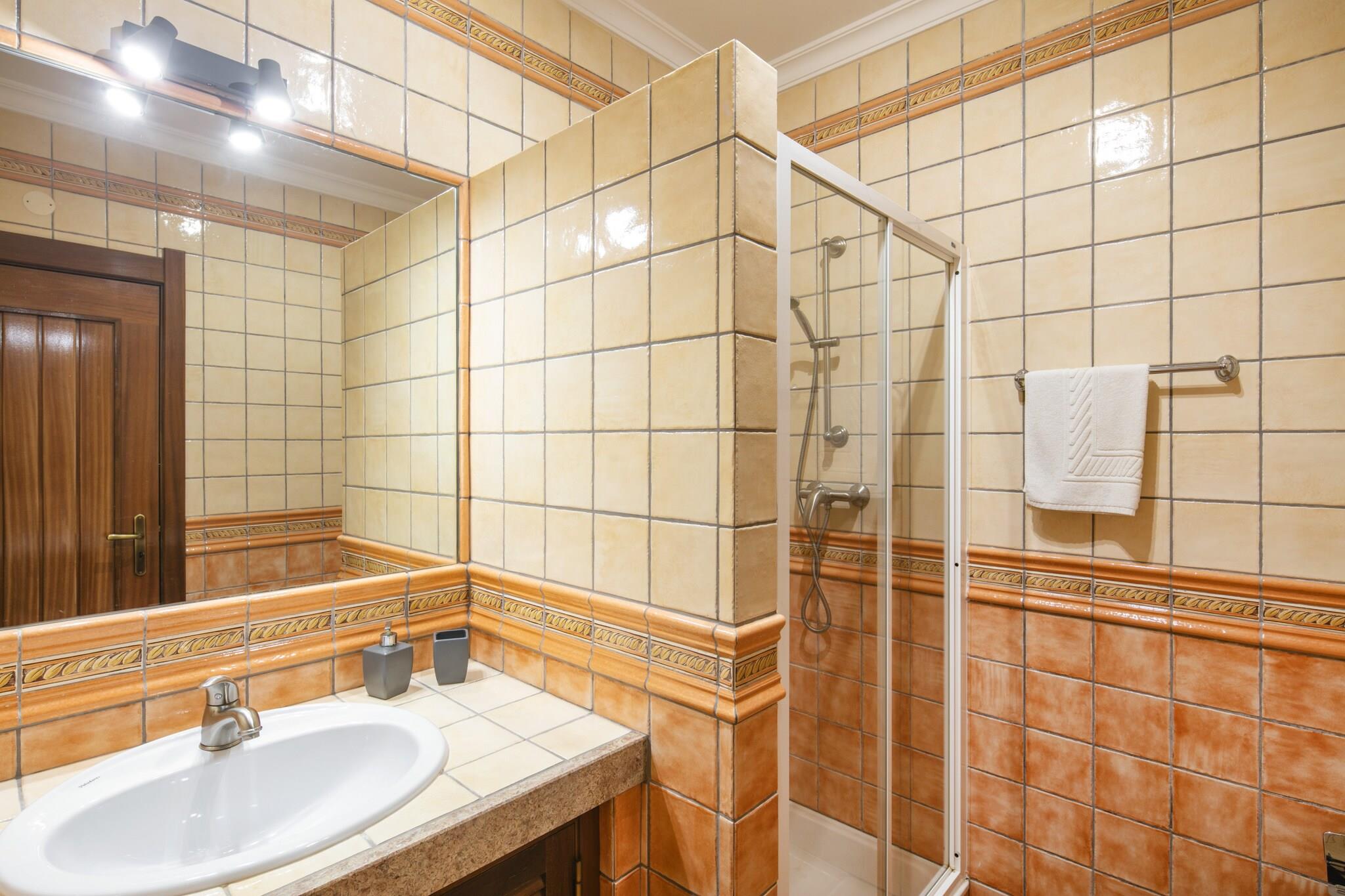 Beliggende i den fortryllende by Benagil er denne moderne og komfortable indkvartering det perfekte tilflugtssted for familier, par og vennegrupper. Med en fantastisk havudsigt og kun en kort gåtur til nærliggende strande, tilbyder det fredfyldte omgivelser for dem, der søger en afslappende og foryngende ferie i Algarve. Ejendommen kan rumme op til fire gæster og har to velindrettede soveværelser. Hovedsoveværelset er indrettet med en luksuriøs king-size seng, mens det andet soveværelse indeholder to individuelle senge, hvilket sikrer en god nattesøvn for alle. Indkvarteringen kan også prale af tre badeværelser, herunder et med et afslappende badekar, der imødekommer alle dine behov med et strejf af luksus og bekvemmelighed. Det fuldt udstyrede køkken, komplet med moderne apparater, gør madlavning til en dejlig oplevelse. Nyd dine kulinariske kreationer i den rummelige spiseplads eller gå udenfor til den møblerede terrasse eller balkon, hvor den betagende havudsigt forbedrer din madoplevelse. Slap af i den hyggelige stue, der er udstyret med et fladskærms-tv og komfortable siddepladser, eller tag en forfriskende dukkert i den fælles udendørs pool. Ejendommen har også en velholdt have og grillfaciliteter, perfekt til udendørs spisning og socialt samvær med sine kære. Med nem adgang til forskellige attraktioner, herunder golfbaner og vandlande, plus charmen ved Benagils butikker og restauranter, tilbyder denne indkvartering en perfekt blanding af komfort og eventyr. Book dit ophold i dag for at opleve det bedste fra Algarve!