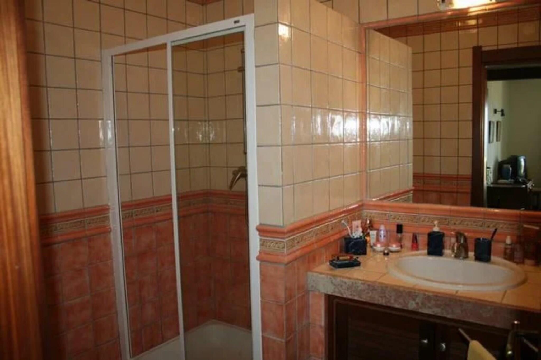 Stue(enkeltsovesofa, Fjernsyn(fladskærm, parabol, Smart-TV), spisebord, sofahjørne, radio), åbent køkken(elkedel, brødrister, kaffemaskine, ovn, mikrobølgeovn, opvaskemaskine , køle-fryseskab, Saftpresser, , Wine glasses), soveværelse(dobbeltseng), soveværelse(enkeltseng, enkeltseng), badeværelse(bruser, toilet, føntørrer, ), badeværelse(bruser, håndvask, toilet), badeværelse(badekar, håndvask, toilet), Havemøbler, grill, vaskemaskine, balkon, klimaanlæg, terrasse, have(indhegnet), parkering, swimmingpool(deles med andre gæster, udendørs), strygebræt, strygejern,